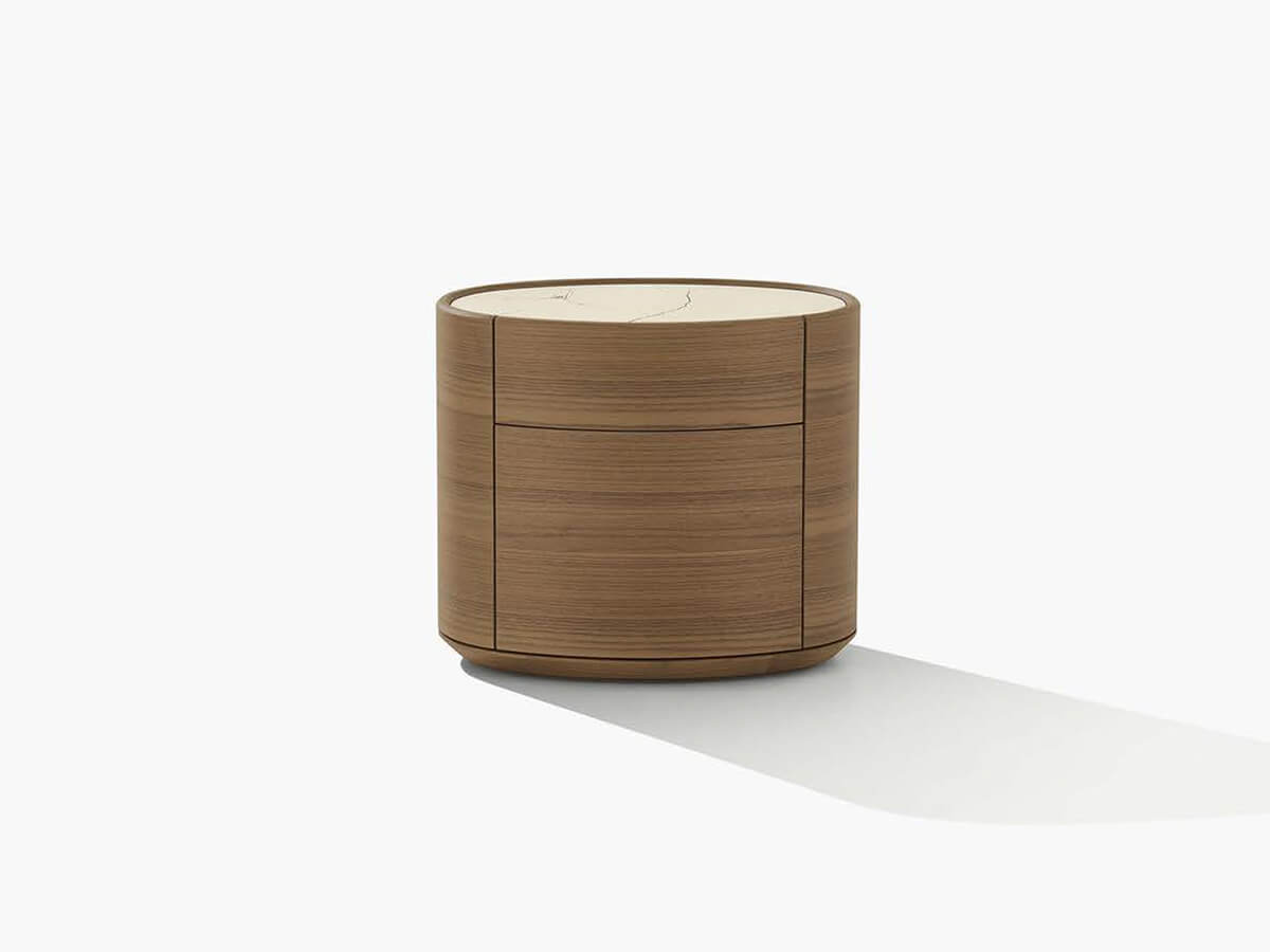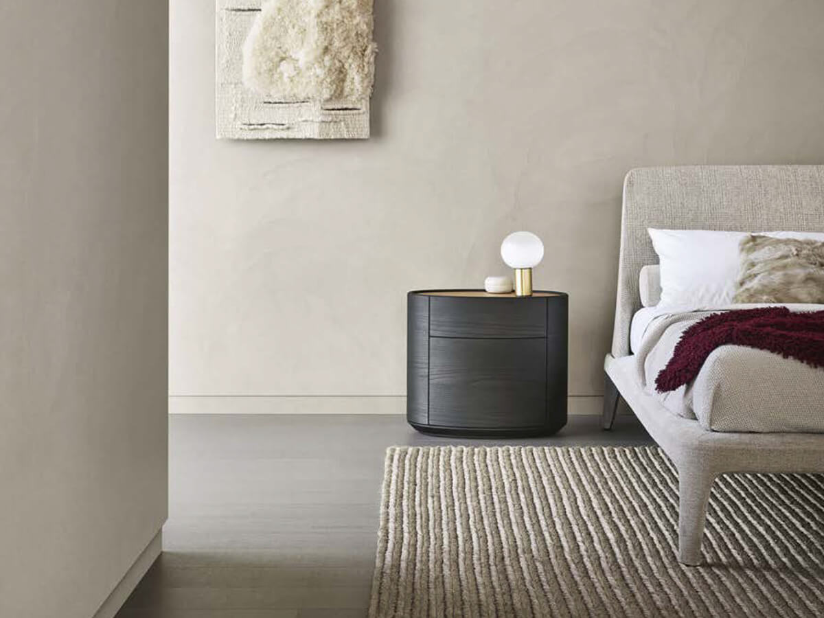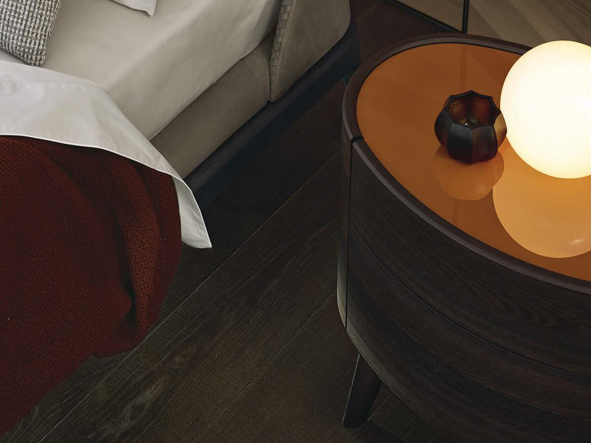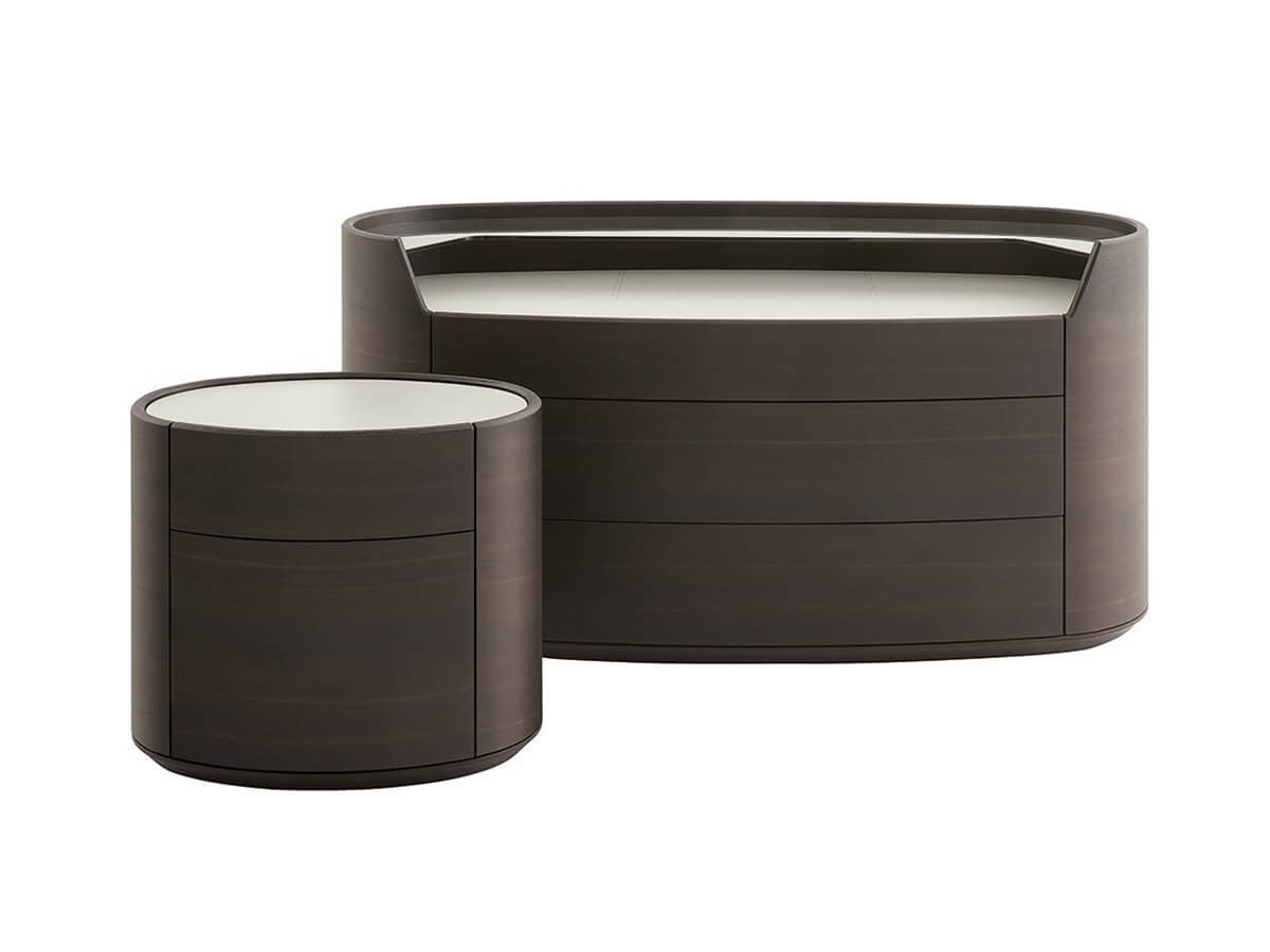 Emmanuel Gallina designs an assorted number of storage units for the night area, ranging from different sizes, shapes, finishes and surfaces of extreme taste. Experimentation and craftsmanship come together here as a whole, giving life to works capable of responding to the most diverse living needs. The Kelly collection includes numerous bedside tables, dressers, chests of drawers and types of storage units characterized by solid structures in intertwined veneered wood particles panels and precious tops in leather, marble and more. Nothing is left to chance to ensure practicality and durability over time, net of a contemporary everyday life. In the numerous variants available, Poliform guarantees the customization of each proposal.* Technical features: the chest of drawers is also available in a version with an upper shelf in smoked glass