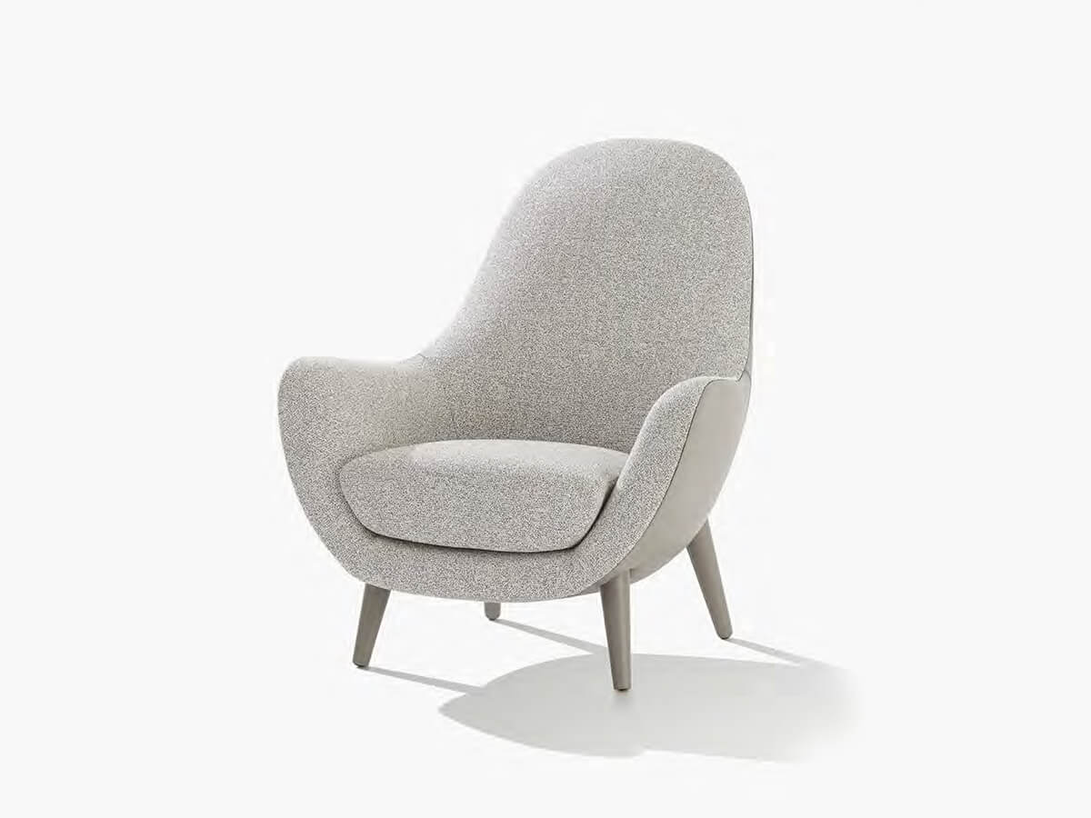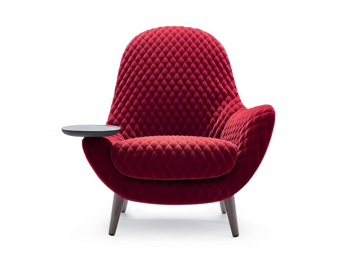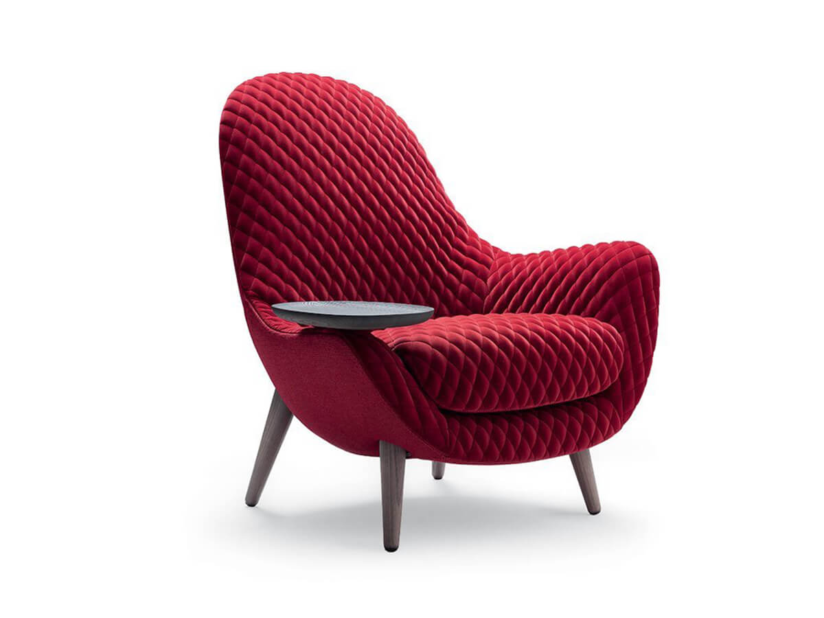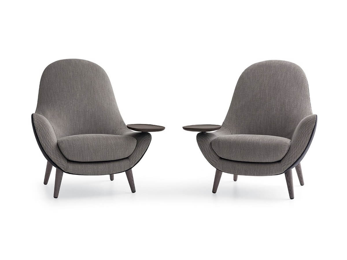 The Mad collection by Poliform includes numerous furnishing elements for the home, ranging from the living area to the night area in a complete assortment of proposals. We mention here tables, coffee tables, sideboards, ottomans and chairs. Each of these works differs for a distinctly eclectic taste, capable of satisfying the most heterogeneous requests. Mad Queen and Mad King are, as the name suggests, two armchairs linked together by a subtle game of roles that sees for the first a lower back and for the second a higher one, as was used in the royal high chairs. However, both retain an elegant and symmetrical appearance, enriched for the Mad King by a precious wooden tray that can be used for storing small objects. The Mad Queen, on the other hand, is more contained, has a protective covering of the legs covered by fabric or leather depending on the taste.