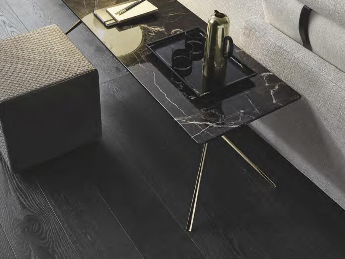The Mondrian collection includes an assorted series of tables and coffee tables for the living area and relax area. Mondrian's strength lies precisely in its design, simple and linear, where each element finds the right agreement with the other in an almost perfect synthesis. The Mondrian coffee table is characterized by the perfect union of the legs in polished gold bronze or painted cast aluminum and the very thin top in wood and other finishes. The contrast is as clear as it is balanced, ideal for expressing an artfully designed way of furnishing. Among the many sizes available, Poliform offers rectangular, oval and round shapes to offer a more than complete assortment to any space in the house.