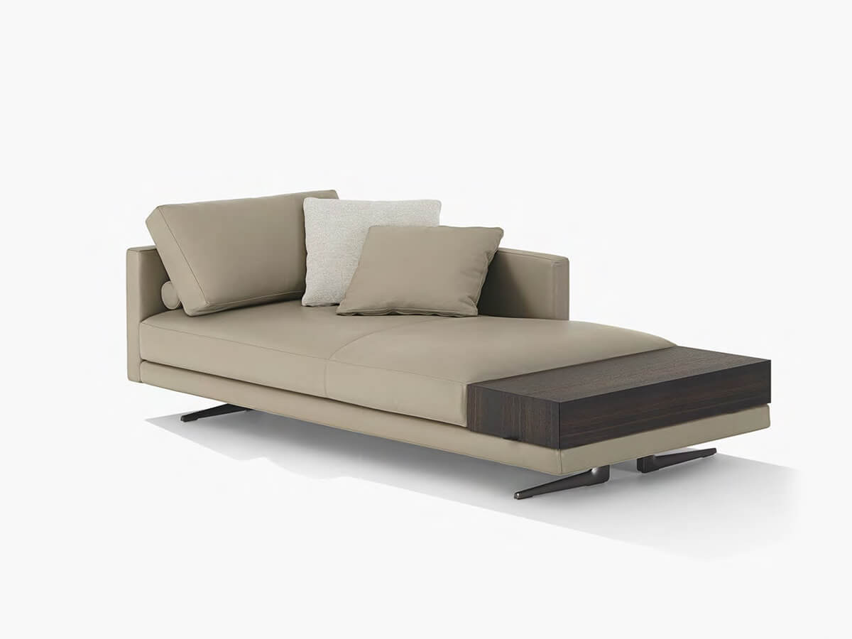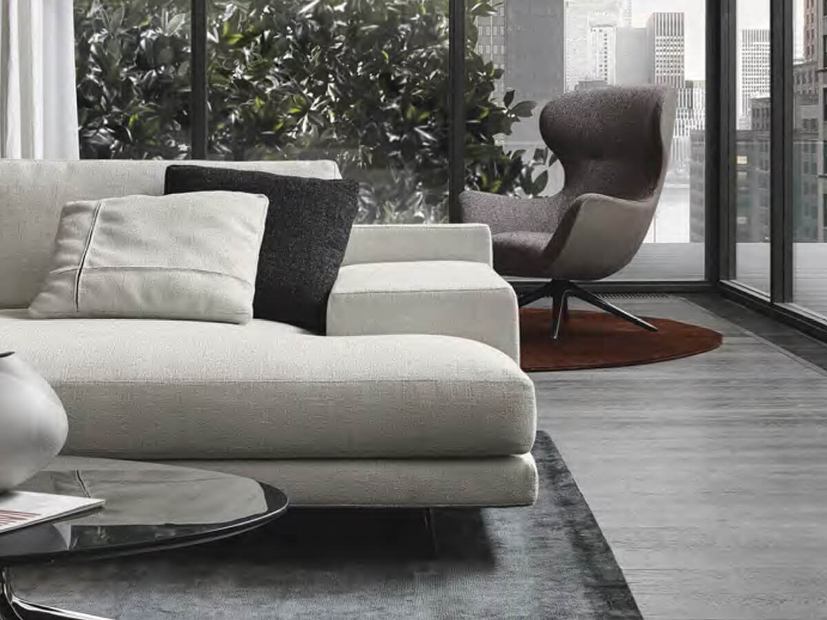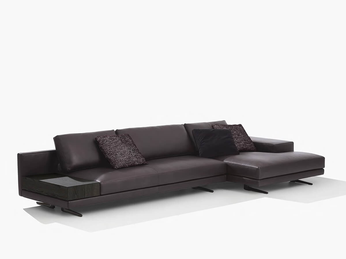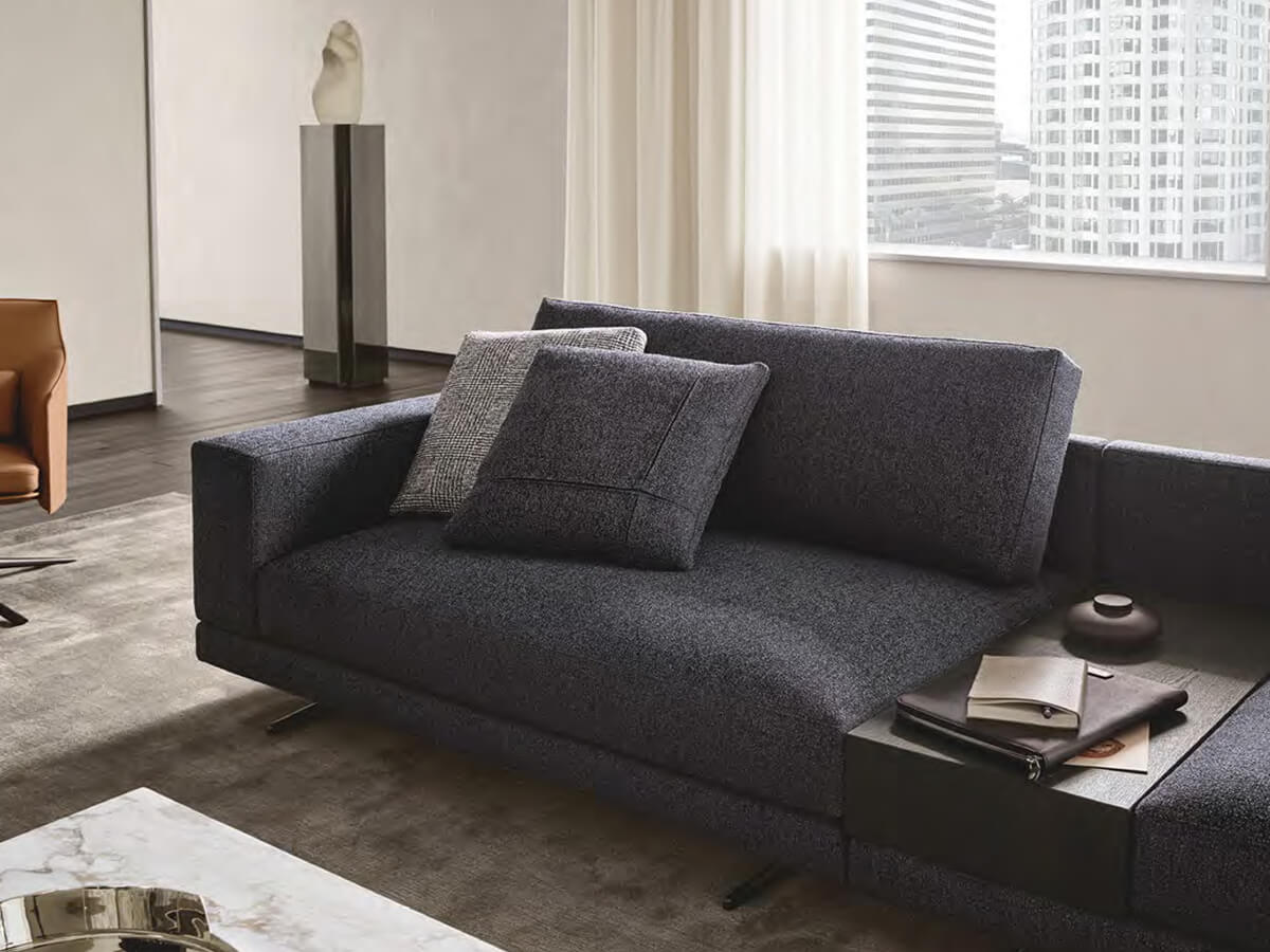 Mondrian fully expresses the concept of compositional freedom, lending itself to a thousand possibilities and combinations according to taste, as well as the needs of those who will use it. An extremely minimal suspended structure is combined with numerous accessory elements, from cushions of various sizes to armrests and backrests also available in wood and equipped with shelves. Poliform proposes it as the definitive solution for the contemporary living area, expressing a light and sophisticated way of furnishing that does not neglect attention to everyday life. Numerous leather and fabric upholstery guarantees a further range of choice. Among the numerous combinations, Mondrian allows you to create linear, corner sofas, with peninsula, chaise longue and more.