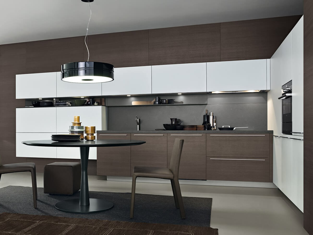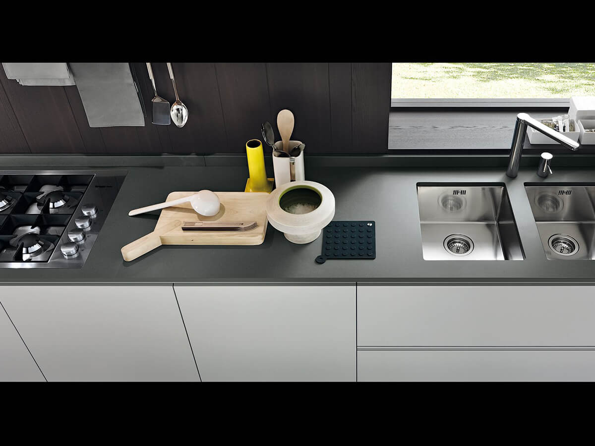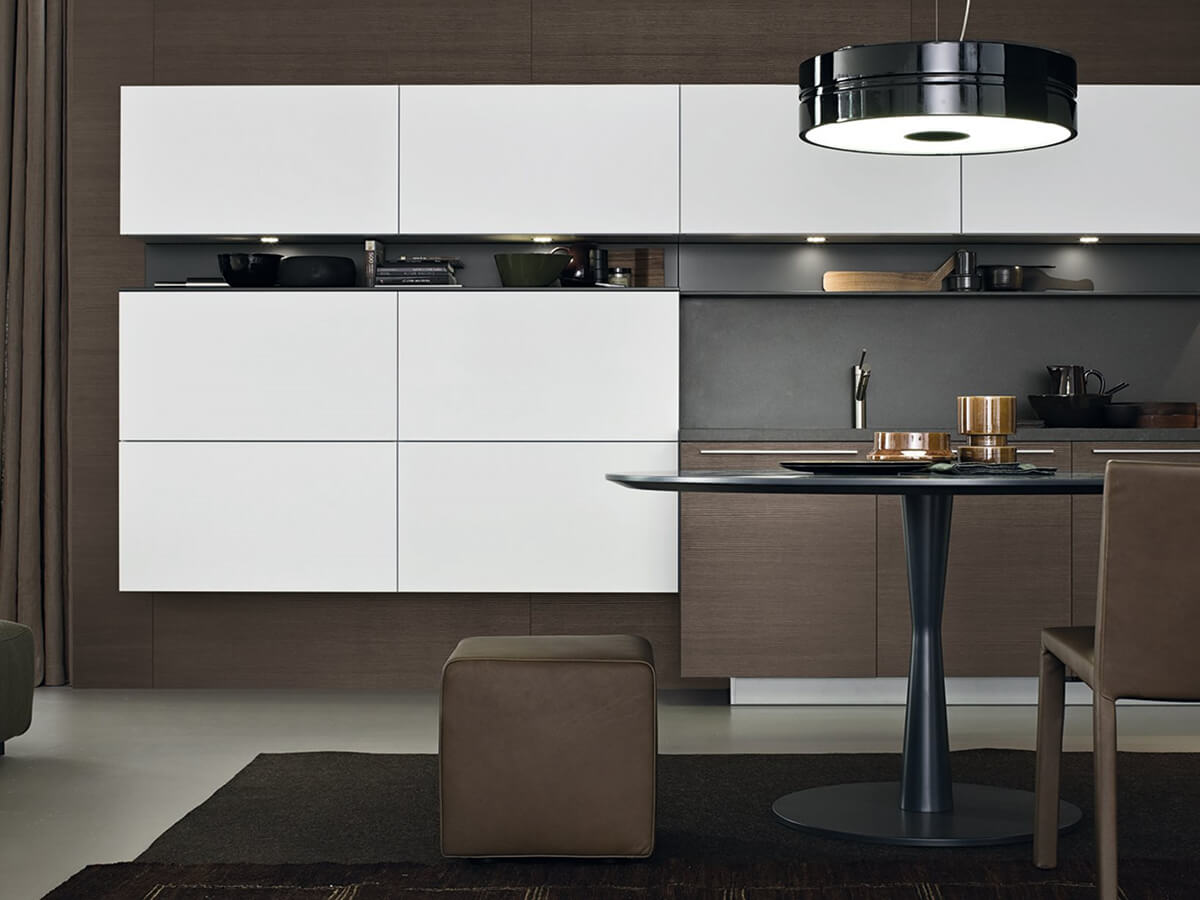 The My Planet kitchen is the only model in the Poliform catalog that allows the use of external handles, available as a choice in the selection of Poliform handles. For some finishes it is also available in a more essential version, with a handle integrated into the door. It allows the use of tops of various thicknesses and a great variety of compositions and, like all Poliform kitchens, it is proposed as a modern and essential kitchen, intended for design purists.My Planet is designed to perform at its best even in small compositions, making it perfect also for use in contract projects.