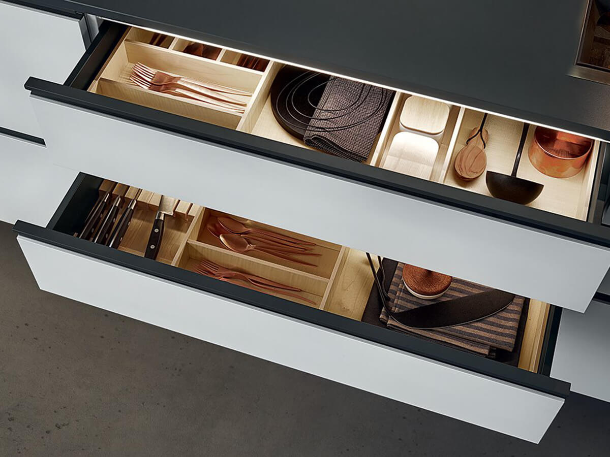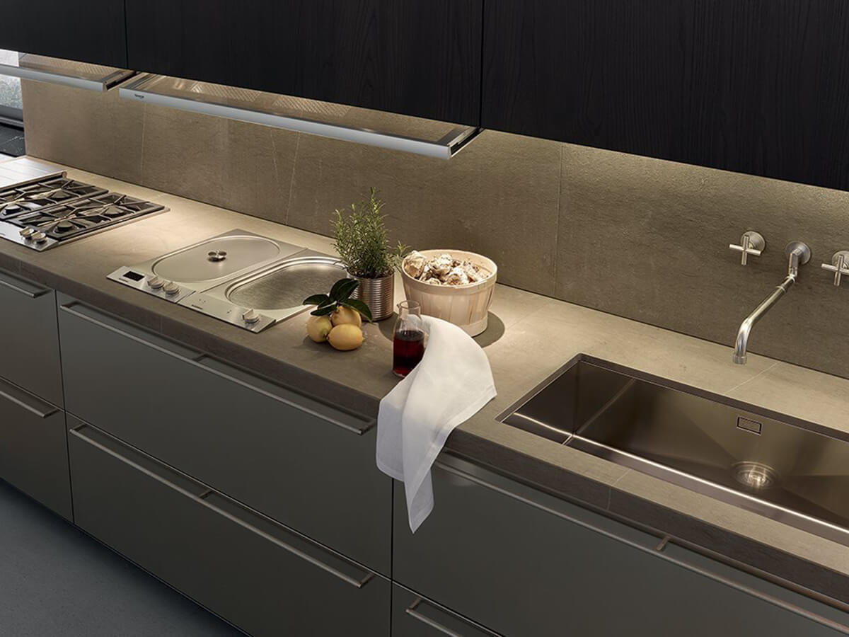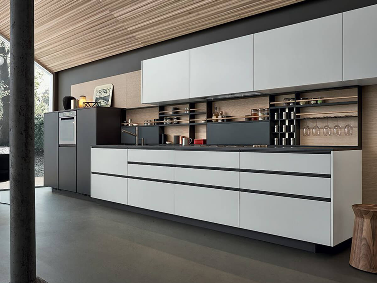 The My Planet kitchen is the only model in the Poliform catalog that allows the use of external handles, available as a choice in the selection of Poliform handles. For some finishes it is also available in a more essential version, with a handle integrated into the door. It allows the use of tops of various thicknesses and a great variety of compositions and, like all Poliform kitchens, it is proposed as a modern and essential kitchen, intended for design purists.My Planet is designed to perform at its best even in small compositions, making it perfect also for use in contract projects.