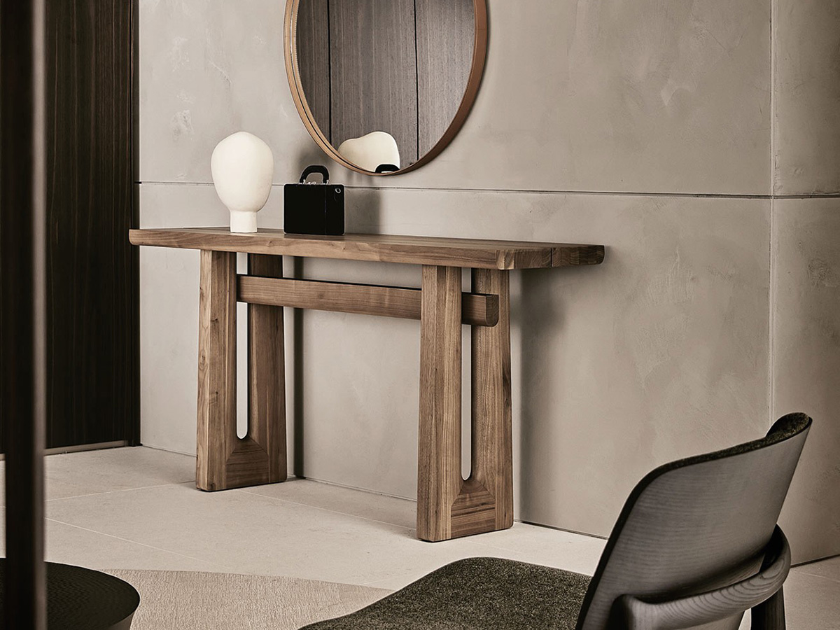 The Nara collection is already known among the numerous proposals in the Poliform catalog for coffee tables with a characteristic and original design where wood finds its richest representation in any room of the house you decide to place them. No less interesting is the new Poliform proposal which sees this console as an important new furnishing element for the living area, corridors and any other place in the house where you decide to place it. Made of solid wood, Nara can also be positioned in the sleeping area, standing out for its geometric rigor as well as its extremely high-level balancing choices. As beautiful as it is graceful, it adapts to the taste of those who want to offer a touch of style to their home, creating tailor-made spaces in any environment.