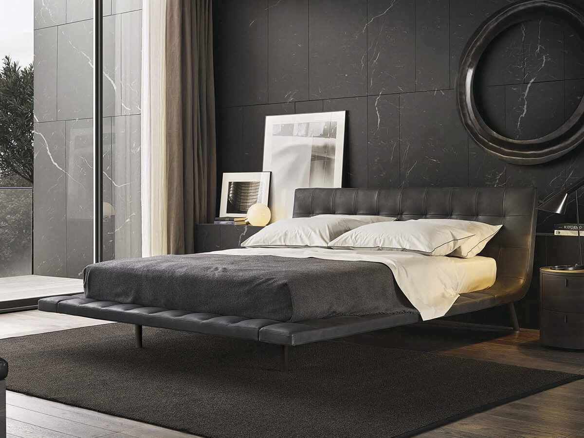 The fruitful collaboration between Poliform and the architect Paolo Piva gave rise to Onda, a bed whose shape distinguishes it from other catalog offers. Modern and with a great personality, Onda stands on a capitonné base which also extends to the soft headboard. This quilting, which can be customized both in terms of material and color, already characterizes the structure in turn highlighted by the thin chromed or painted metal feet on which it stands. The metal structure of the bed gives solidity to the whole, ensuring maximum comfort during the hours of rest and relaxation.* Technical features: feet in matt brown nickel metal