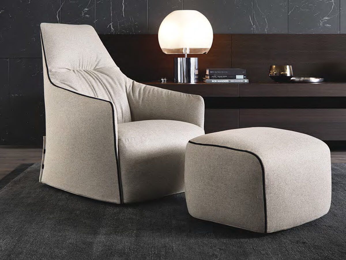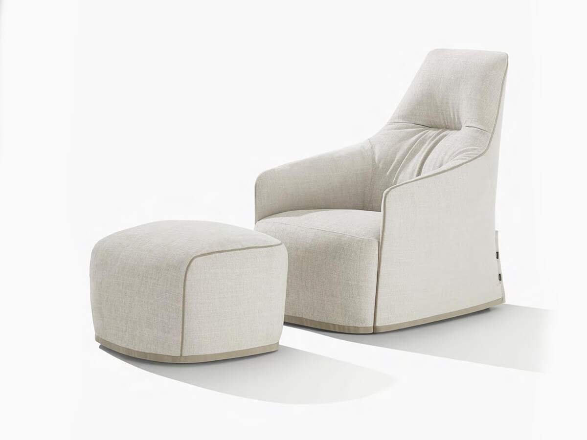 Santa Monica is an armchair with soft and enveloping shapes, born from a perfect union of seat, legs and backrest where it is almost impossible to distinguish separate parts, identifying instead an organic whole in their place. The originality of this aesthetic desired by Jean-Marie Massaud leads to the recognition of Santa Monica as a casual seat, suitable for different environments and situations according to taste. The structure in flexible polyurethane molded in double density supports the padding of the seat in the same material combined with feet consisting of slides in plastic material or a swivel base. The removable cover, in fabric or leather, has an assorted range of choices to adapt to any type of more or less formal context. Among the versions of this armchair we mention the Santa Monica Home and the Santa Monica Lounge, versions with a higher back and enveloping the head.