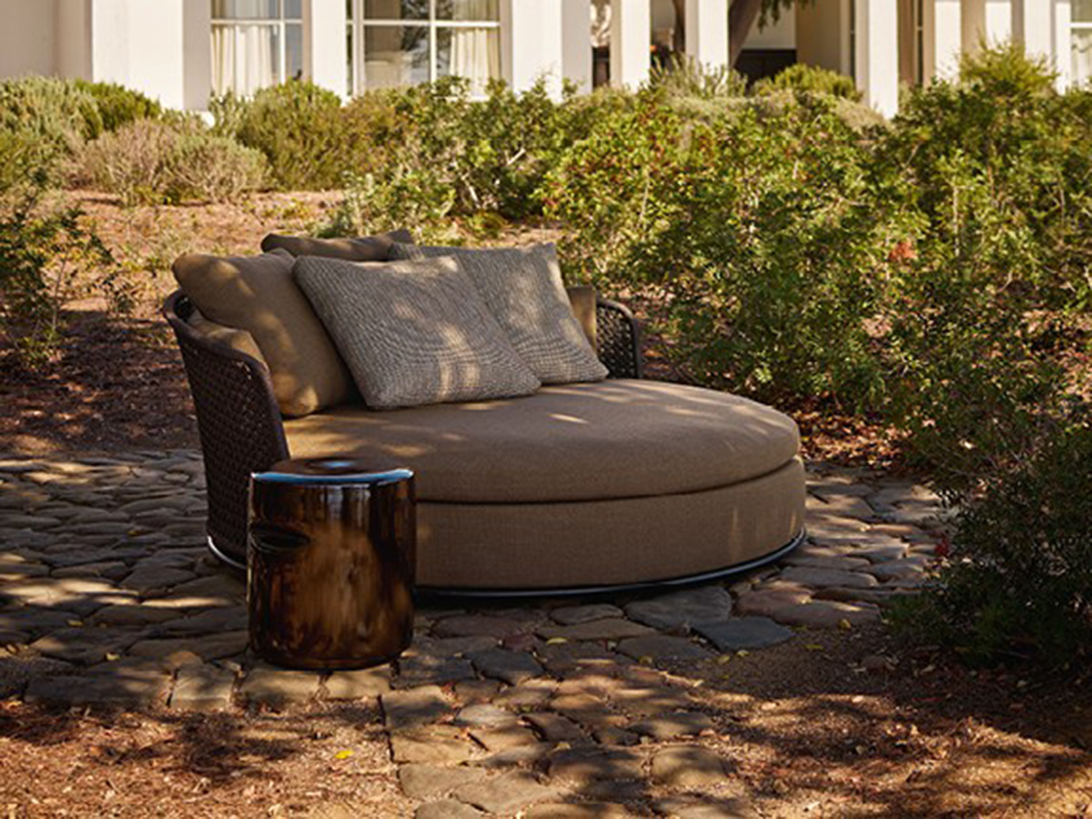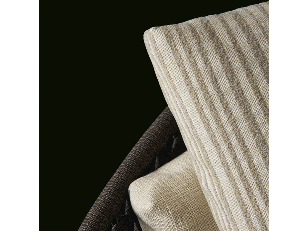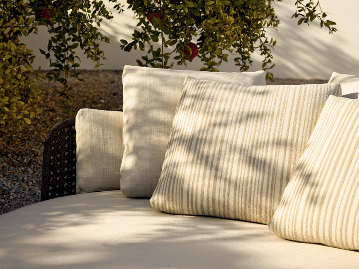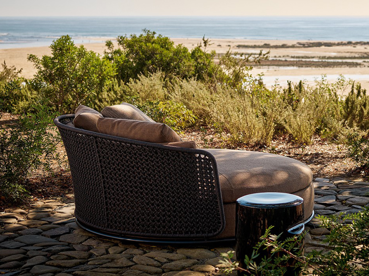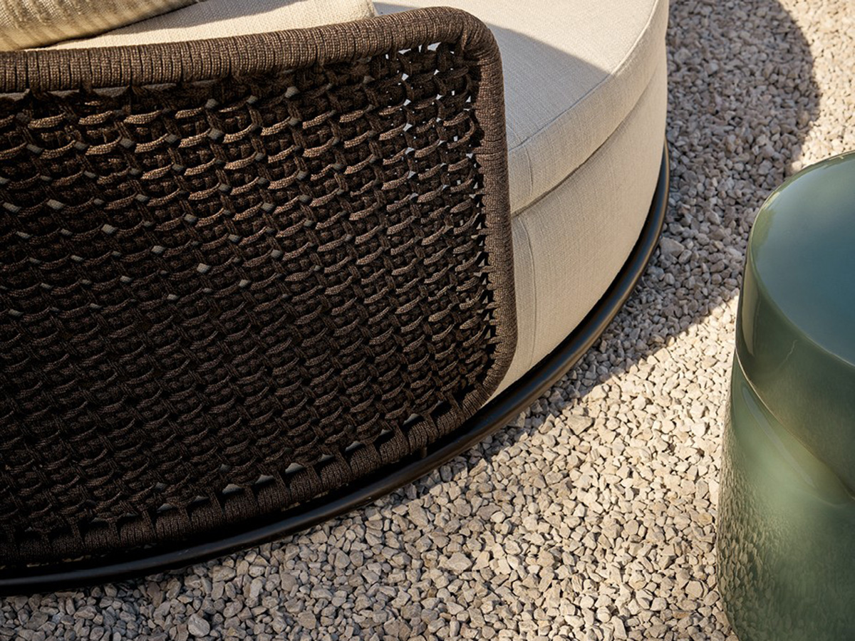 From Poliform's multifaceted ability to create original and highly distinctive indoor and outdoor furnishing elements, the Soori Day Lounge sofa was born, a real island of comfort that proposes the concept of relaxation in the open air as a real experience high-end, made of extremely beautiful materials, shapes and designs. It is a day bed with a round shape and enveloping design, structured to offer the body numerous configurations whether you want to rest, read, converse or simply sunbathe. The backrest is hand-woven while the fabrics are rigorously selected for the outdoor environment, offering elegant shades and great visual value.