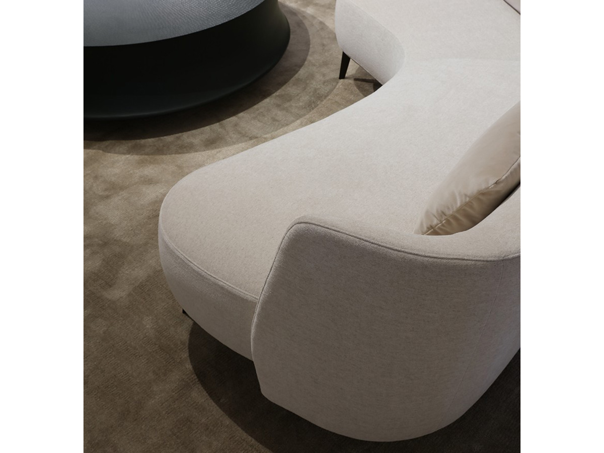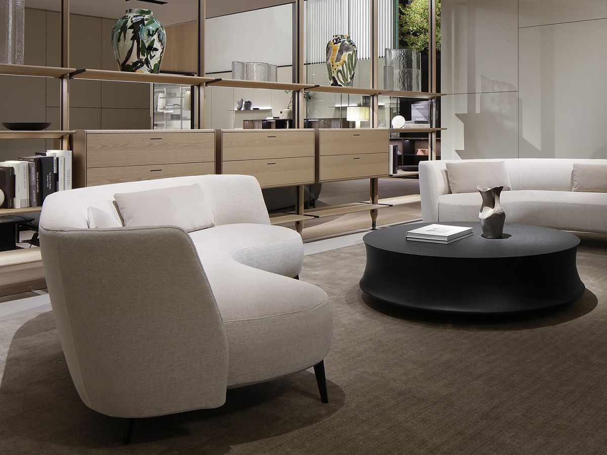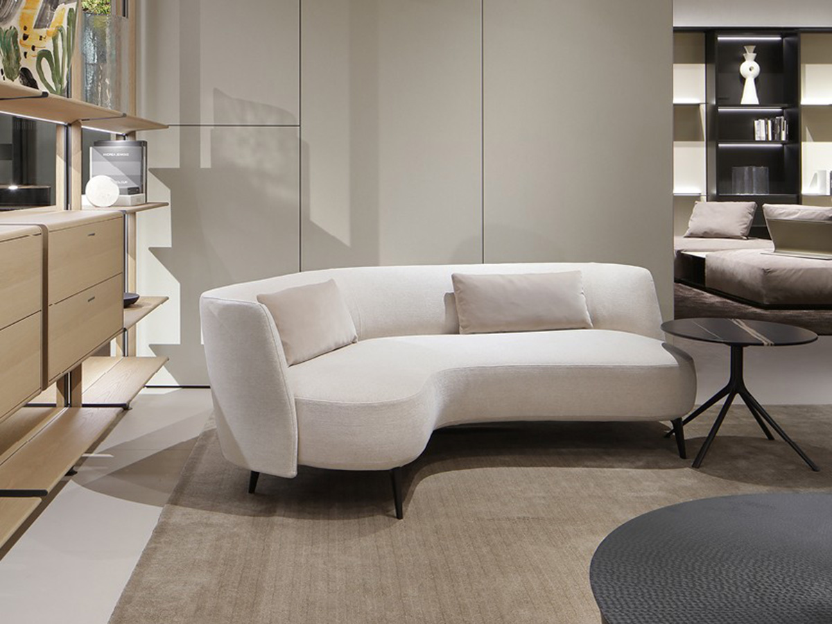 Sunday is a unique piece of furniture, where the desire to create something new is strongly felt without forgetting the solid tradition that has brought Poliform to the top of high-end real estate production. This sofa has a compact and enveloping appearance, designed for those who love to relax, read or spend afternoons of conviviality in front of a steaming cup of tea. The curved lines of the seat and backrest are accompanied by generous padding, capable of welcoming the body and enveloping it. Poliform offers leather or fabric finishes plus numerous colors designed to adapt to the numerous other proposals for the living area and sleeping area. However, Sunday also lives well in larger spaces such as receptions, waiting rooms and hotel lobbies.