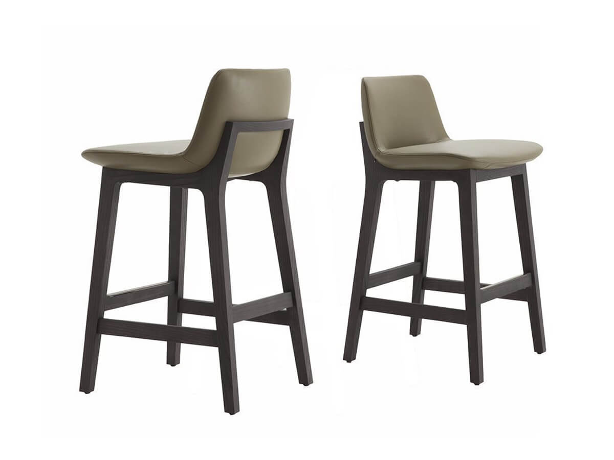 Ventura is a stool with fluid and enveloping lines, modeled in solid wood with a refinement that only the historic craftsmanship of Poliform can guarantee. The thin line, available in wood or lacquered, best enhances a slender design, perfectly in tune with the most contemporary requests. The minimal seat and back are in molded flexible polyurethane, covered in non-removable fabric or leather. The peculiarity of this stool is the stitching, normal double or drawstring. Practical and functional, as well as reserved for the space in the house that is more subject to the wear and tear of everyday life, Ventura has a footrest in coated stainless steel.