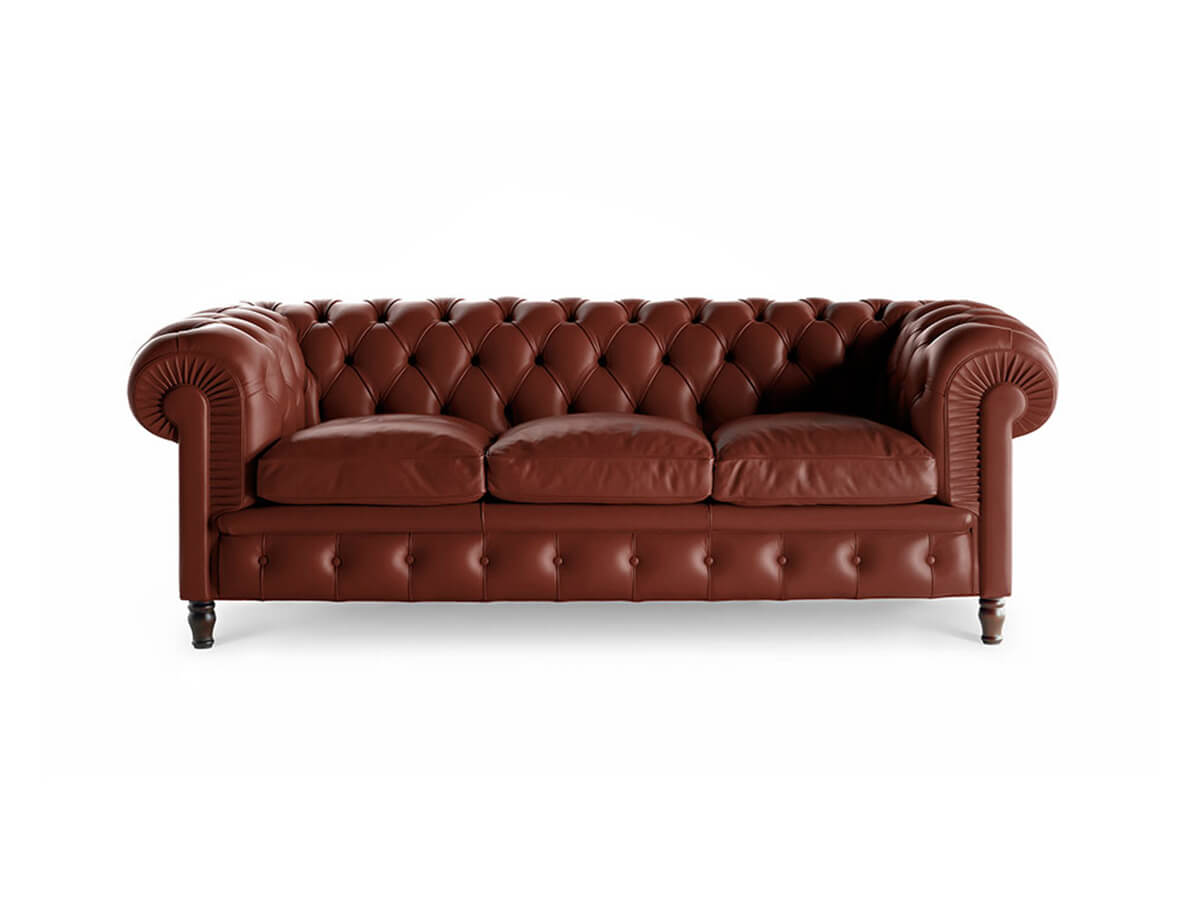 The Chester sofa collection by Poltrona Frau includes numerous proposals for the living and sleeping space, with elements of extreme taste that refer to the classic model of Edwardian England, later taken up by Renzo Frau in the first catalog. Today this upholstery has not lost its touch, and lends itself well to furnishings with a heterogeneous style. It is distinguished by the plissé of the armrests that close the rich capitonné workmanship of the mantle, done entirely by hand for each model. Inside Chester has a suspension obtained with biconical steel springs, positioned by hand and fixed to jute straps on a beech structure. Pelle Frau® plays a fundamental role in embellishing each element, giving it a touch of extreme value.*Technical features:Classic version: also available in L.208 cm with 2 seat cushionsChester One version feet: Spherical H.6 cm or high H.12 cm