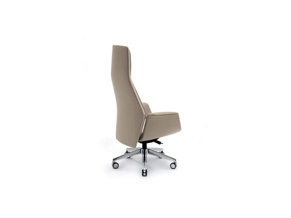 Timeless elegance characterizes the beauty of Downtown, an office chair dedicated to demanding "decision-makers" who seek comfort and refinement at the highest levels. This technical seat reveals a particular silhouette, originating from studies and planning aimed at combining aesthetics and functionality into one. The quality of Poltrona Frau production is inserted as a guarantee of a product that is difficult to replicate and destined to last over time. Available in different models including Executive, Managerial, Meeting and Visitor. The upholstery is embellished with tone-on-tone or contrasting stitching, as well as making use of the numerous excellent proposals of Pelle Frau®.
