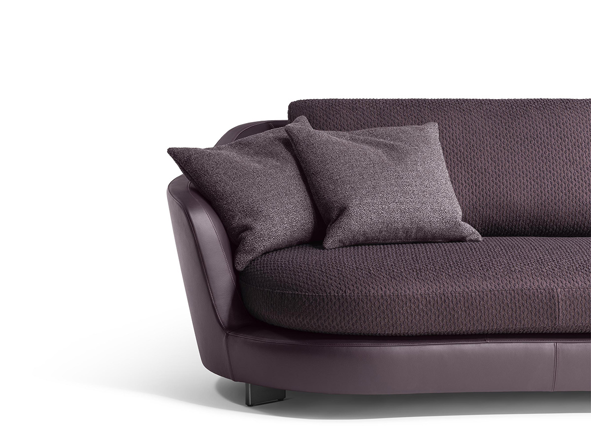 A sofa with a generous and welcoming design, where naturally curved shapes welcome the body, guaranteeing optimal comfort when sitting. Duo is available in different versions: two- and three-seater, as well as modular, nowadays an increasingly important variant for creating elements perfectly designed depending on the environment. The Duo sofa can be combined with a coordinated chaise longue, which can be positioned as a terminal on one of the two sides or more independently, so as to create an even more organic space. The coverings can be freely chosen from the Frau leather or fabric collections, to better adapt to the context. The stitching is tone on tone. The cylindrical feet are in black anodized aluminium, with plastic tips or in blade version.
