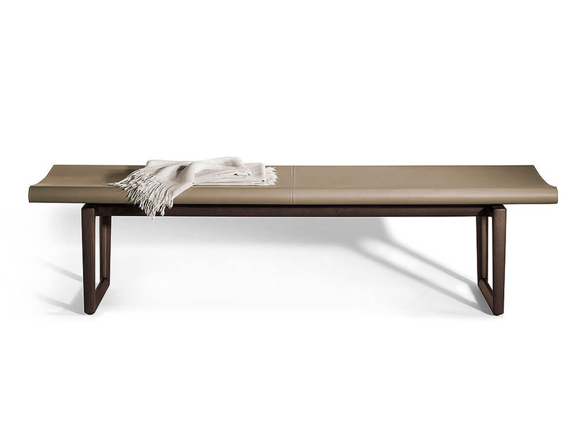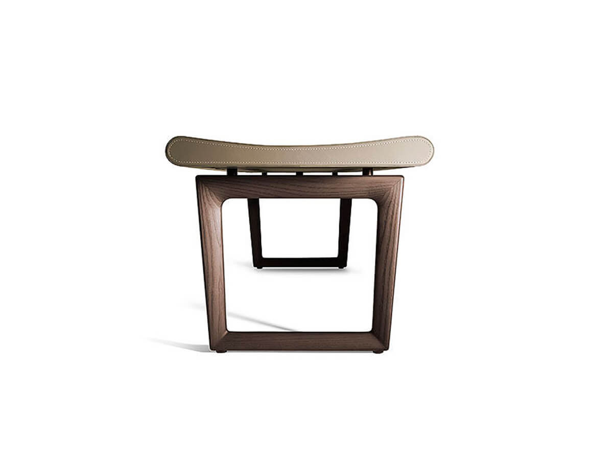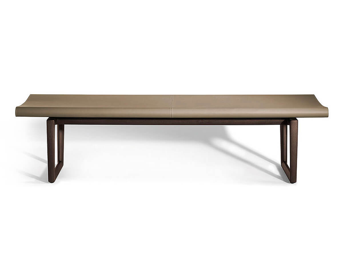 The Fidelio Bench enriches a collection that is already vast in itself, by inserting a seat of great formal purity that lets the intrinsic beauty of the materials speak, exploited to give luster to the innate grace of the environments of the domestic space. Not only that: Fidelio can also be placed very well in public contexts. The warm intensity of leather is combined with the richness of solid wood. The elegant folds and visible stitching of the surface contrast with the essential lines of the base, obtained by modeling the wood with skill and attention. The Fidelio seat communicates great ease and comfort during parking, while maintaining the rigor that characterizes the entire collection.