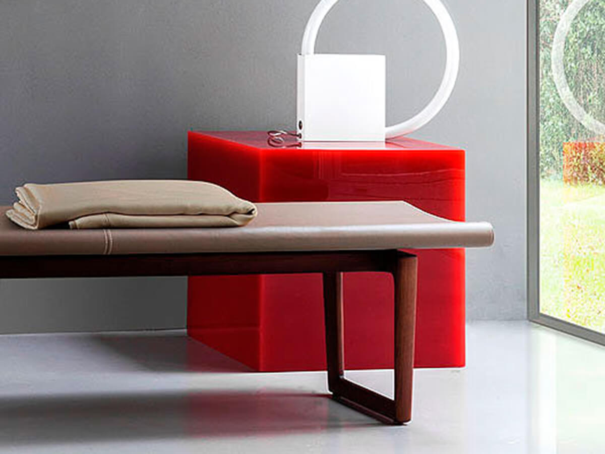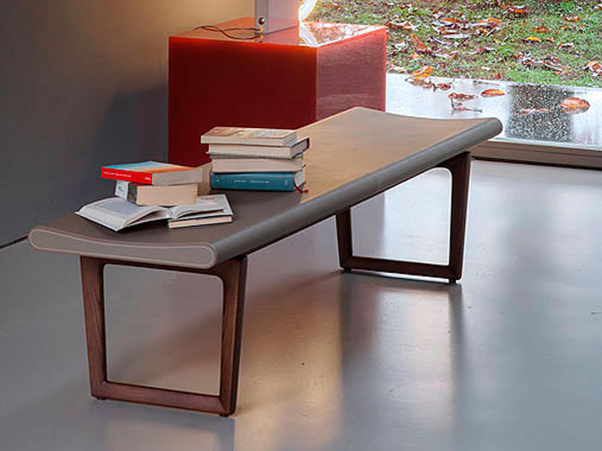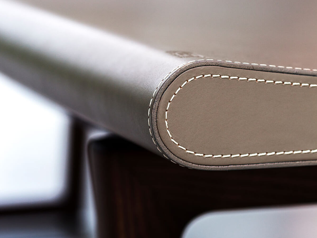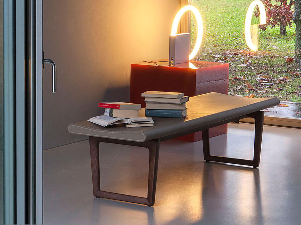 The Fidelio Bench enriches a collection that is already vast in itself, by inserting a seat of great formal purity that lets the intrinsic beauty of the materials speak, exploited to give luster to the innate grace of the environments of the domestic space. Not only that: Fidelio can also be placed very well in public contexts. The warm intensity of leather is combined with the richness of solid wood. The elegant folds and visible stitching of the surface contrast with the essential lines of the base, obtained by modeling the wood with skill and attention. The Fidelio seat communicates great ease and comfort during parking, while maintaining the rigor that characterizes the entire collection.