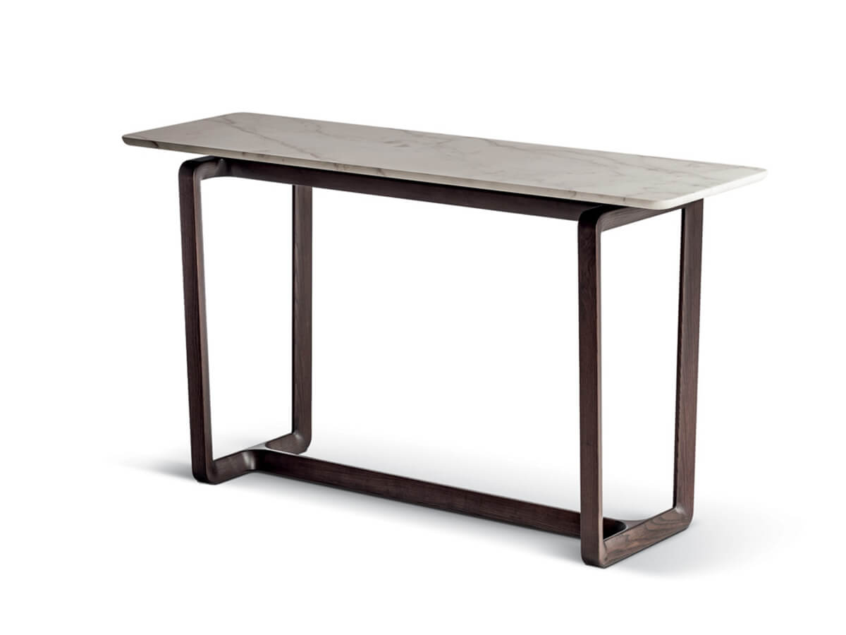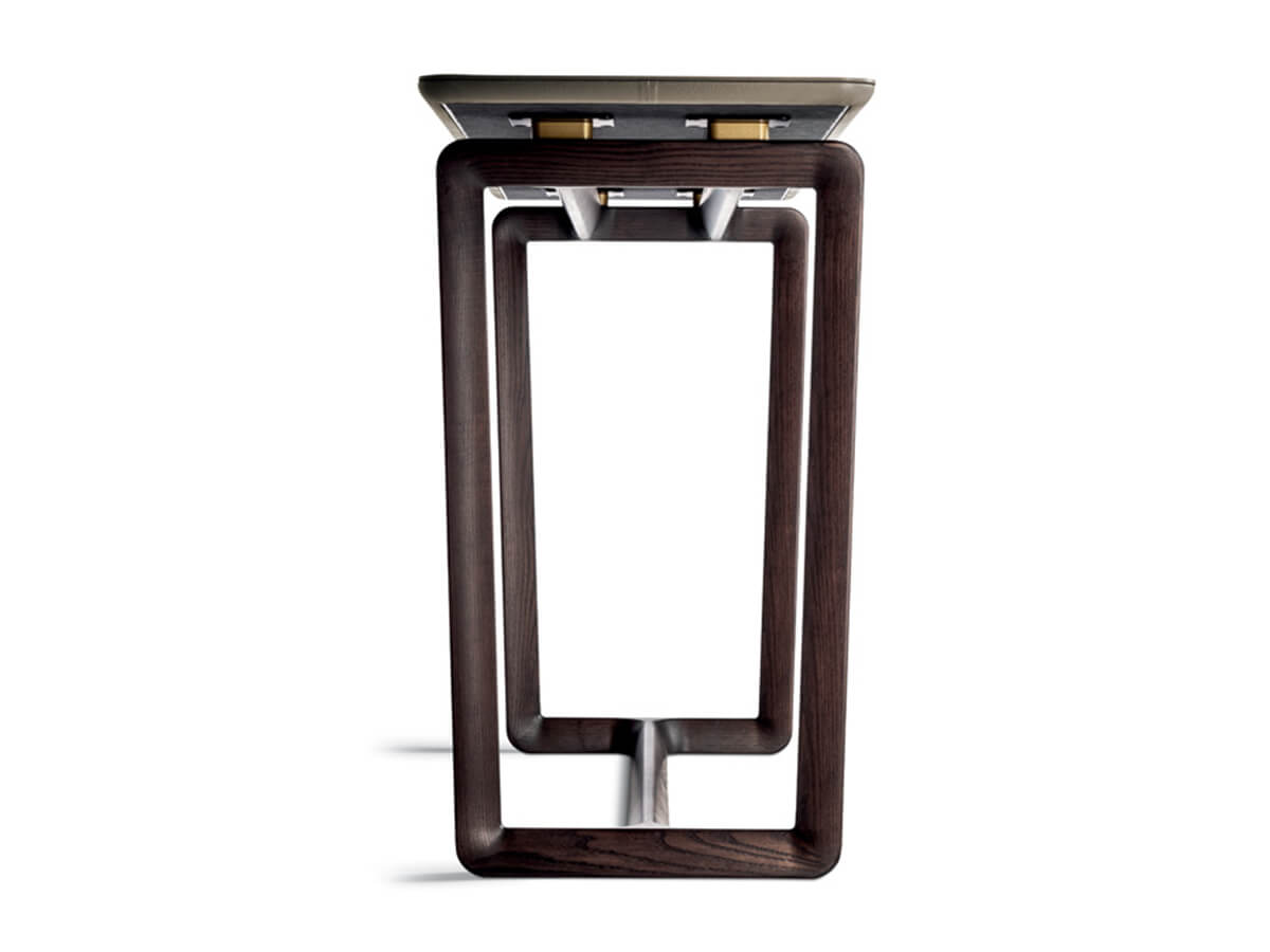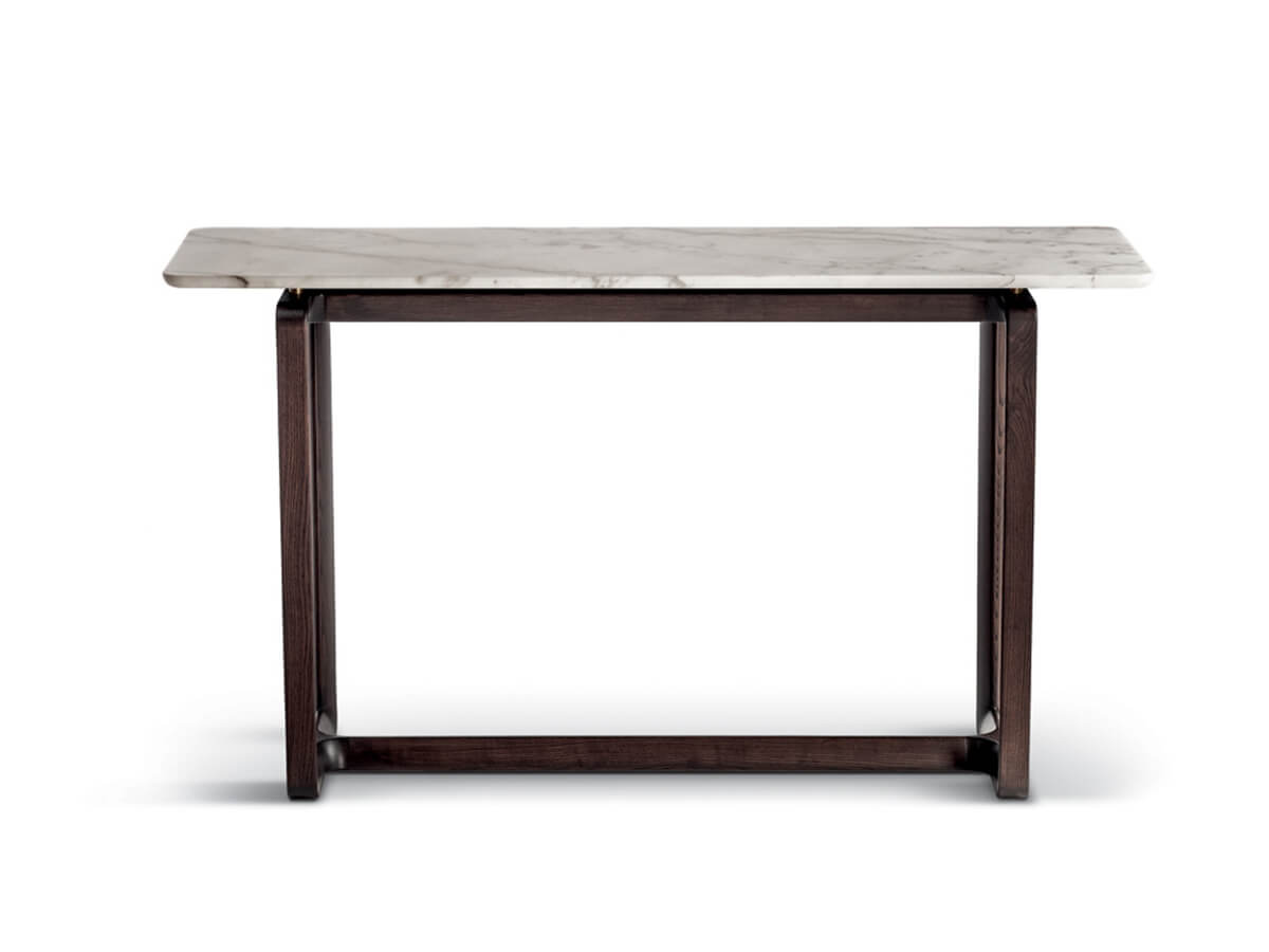 From the design of Roberto Lazzeroni comes Fidelio, a console with a strong contrast between visual lightness and richness in material combinations, a combination that makes it an ideal element for furnishing the contemporary living room. The essentiality of Fidelio stands out in any environment, offering an intelligent solution to the most diverse needs. The solid ash wood base supports the double uprights with a characteristic triangular section. The plates for anchoring the top are made of steel and painted in matt black. Fidelio also lends itself well to use in common areas, celebrating a timeless taste destined to last over time.* Technical features: the calacatta gold marble top is available in a semibrilliant or brilliant finish