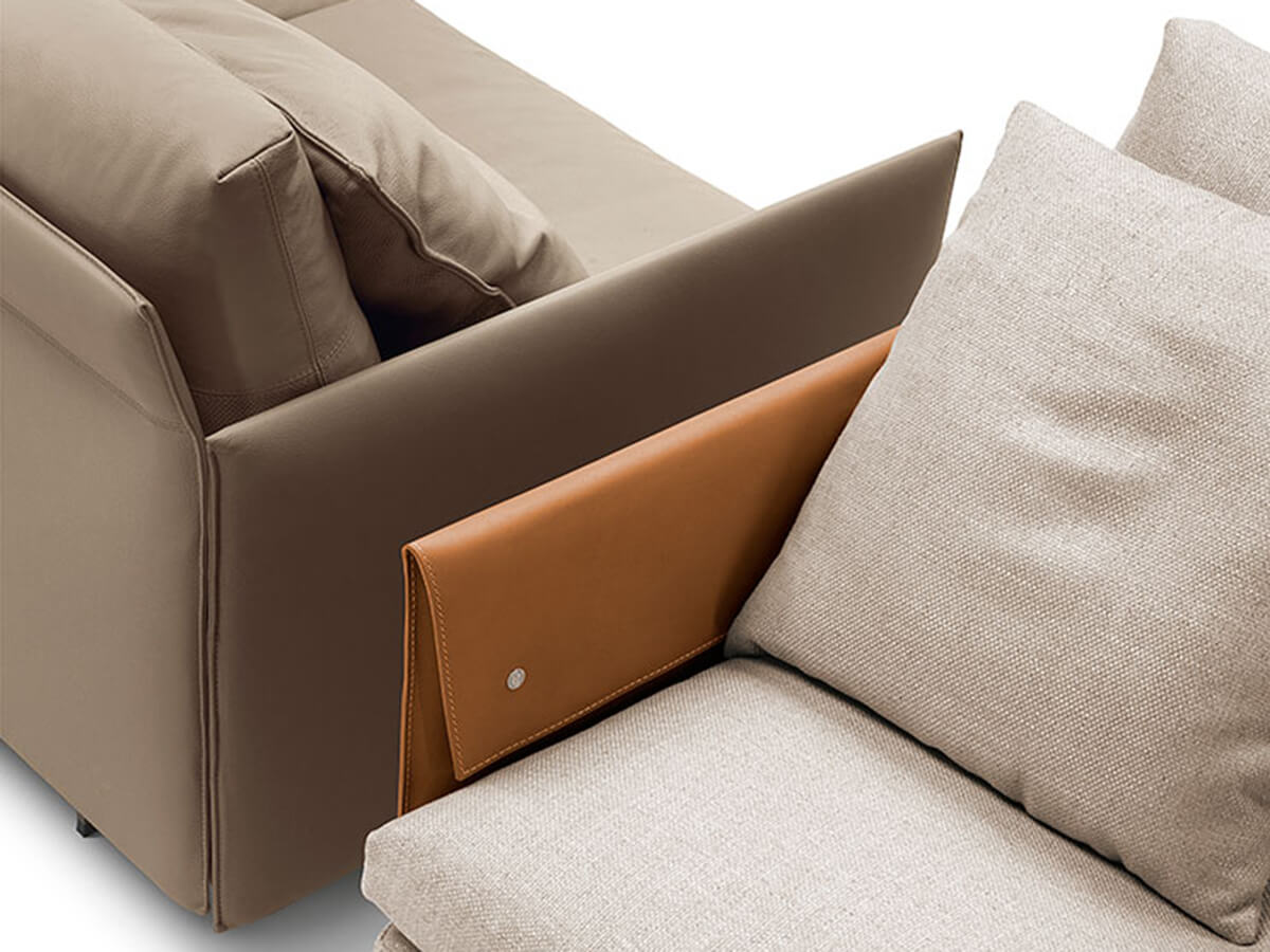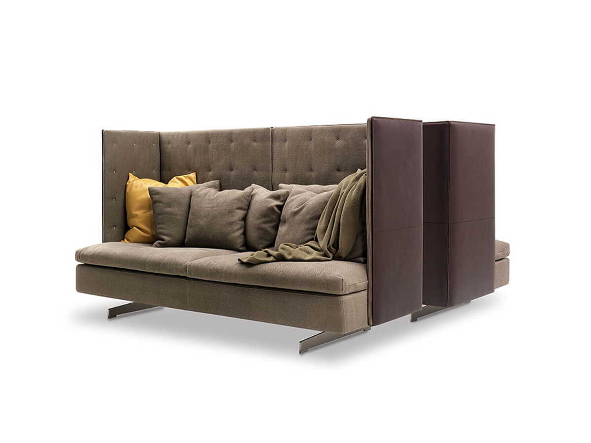 Timeless craftsmanship and taste come together in the GranTorino sofa, Jean-Marie Massaud's inspiration in creating a modular upholstery which, in its most original and precious version, combines leather with Pelle Frau® or fabric. The geometric and well-modulated lines of the structure are enhanced by the use of these noble materials, worked so as to create games of incredible aesthetic refinement. GranTorino combines compact and well-calibrated volumes to reduce the overall dimensions of the welcoming and very soft seats to a minimum. The backrests and armrests are in birch plywood panel, accompanied by padding in differentiated density polyurethane foam. The painted aluminum feet lift the figure and give it a refined tone, ideal for adapting to heterogeneous environments.