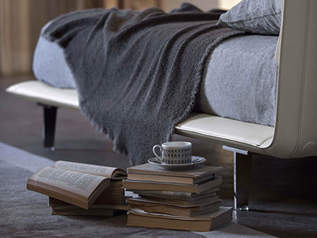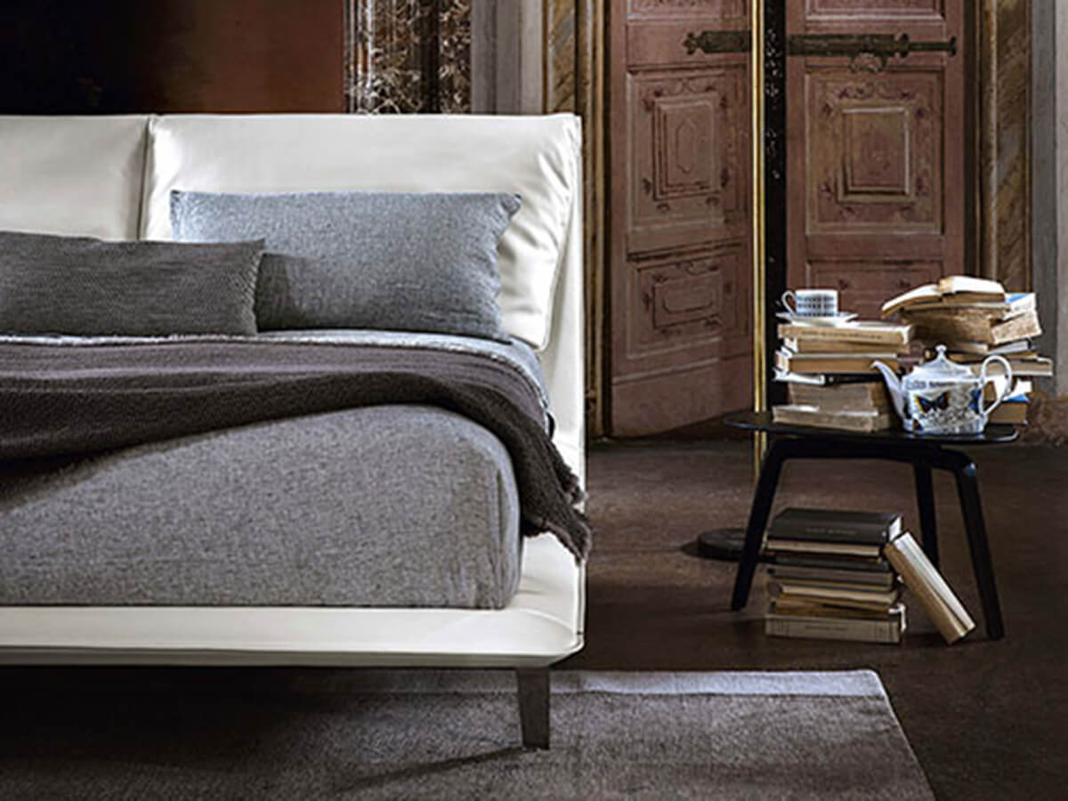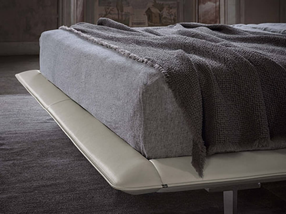 *Price valid for the version for mattress 160x200 cm (not included) – upholstered in leather SC – rear part of the headboard in fabric – feet in ruthenium finishing – including rigid wooden slats kit (cod. 5553270 - 5PF0055306781 + 5050892 - 5PF0005010644).