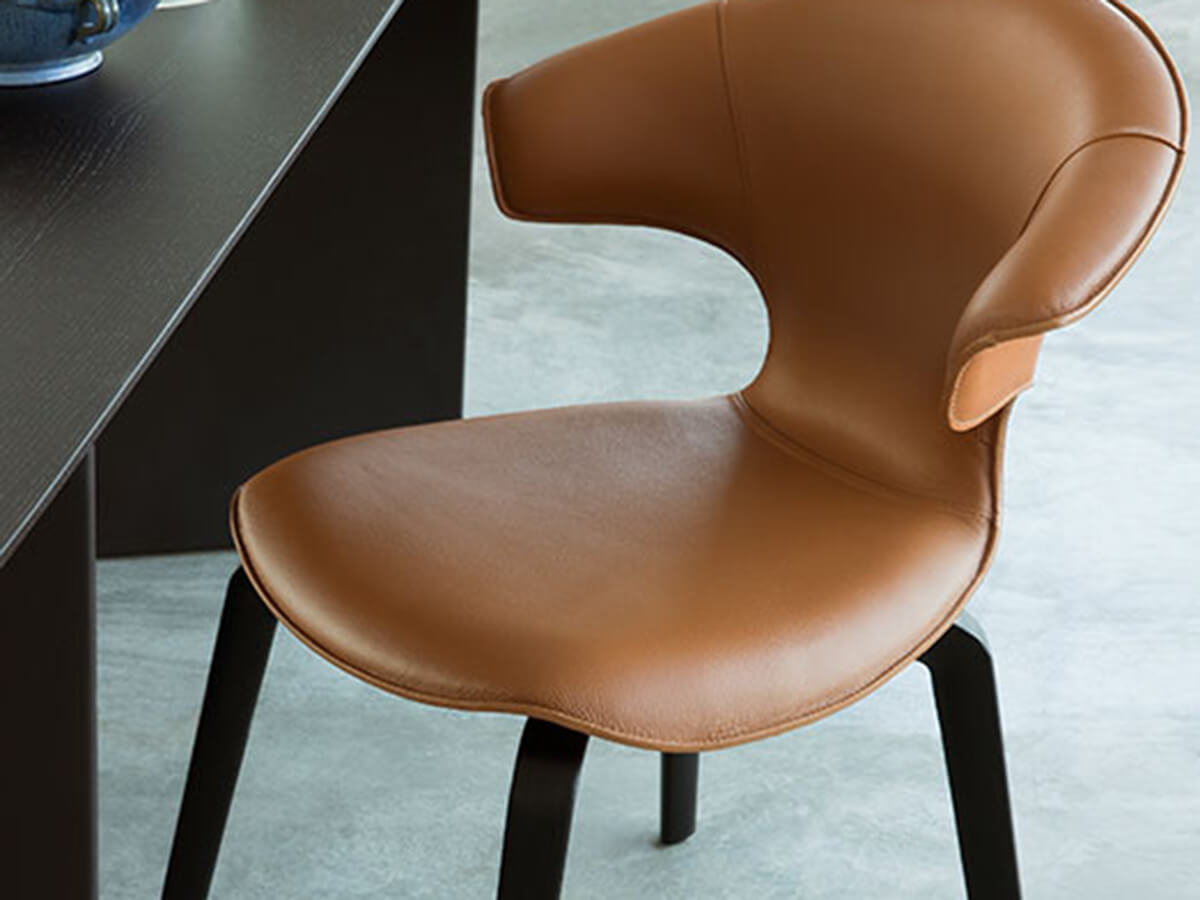 A chair with a strong and strongly connoted character, capable of expressing formal lightness and sensorial charm in a single solution. Montera's workmanship is raw cut and enhances the tactility of leather and leather that compose it. Their combination creates sensations of extreme value, both tactile and visual, creating a seat that can be well adapted to different contexts without ever disfiguring. The Montera line includes a chair, an armchair, a stool with seat in two heights, a column stool and much more, so as to offer a range of possibilities for the home, especially the living space and the dining area. The original shell upholstery, made of Pelle Frau® leather and leather on the outside, expresses an out of the ordinary taste, attentive to modern needs.* Technical features: legs also available in sample-dyed ash or Ral lacquered at an extra cost
