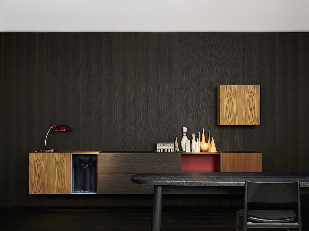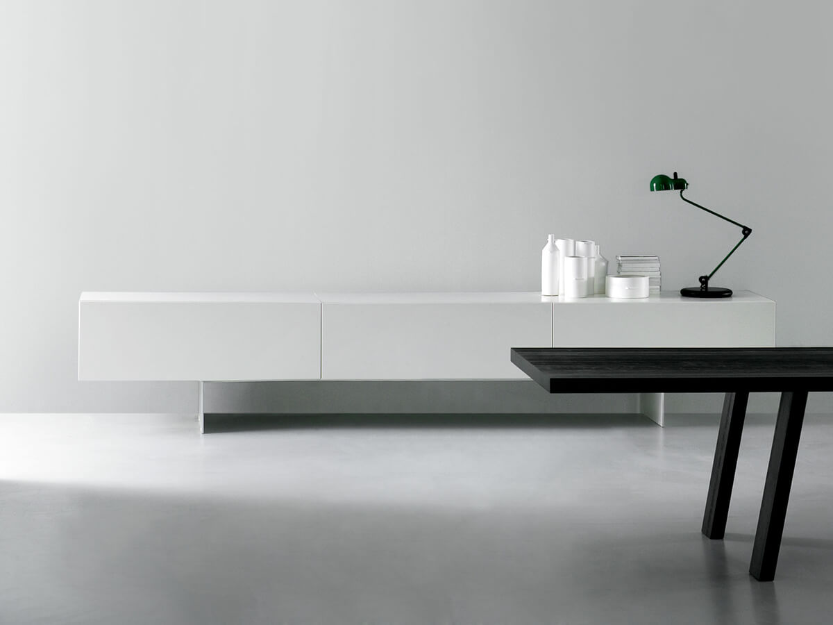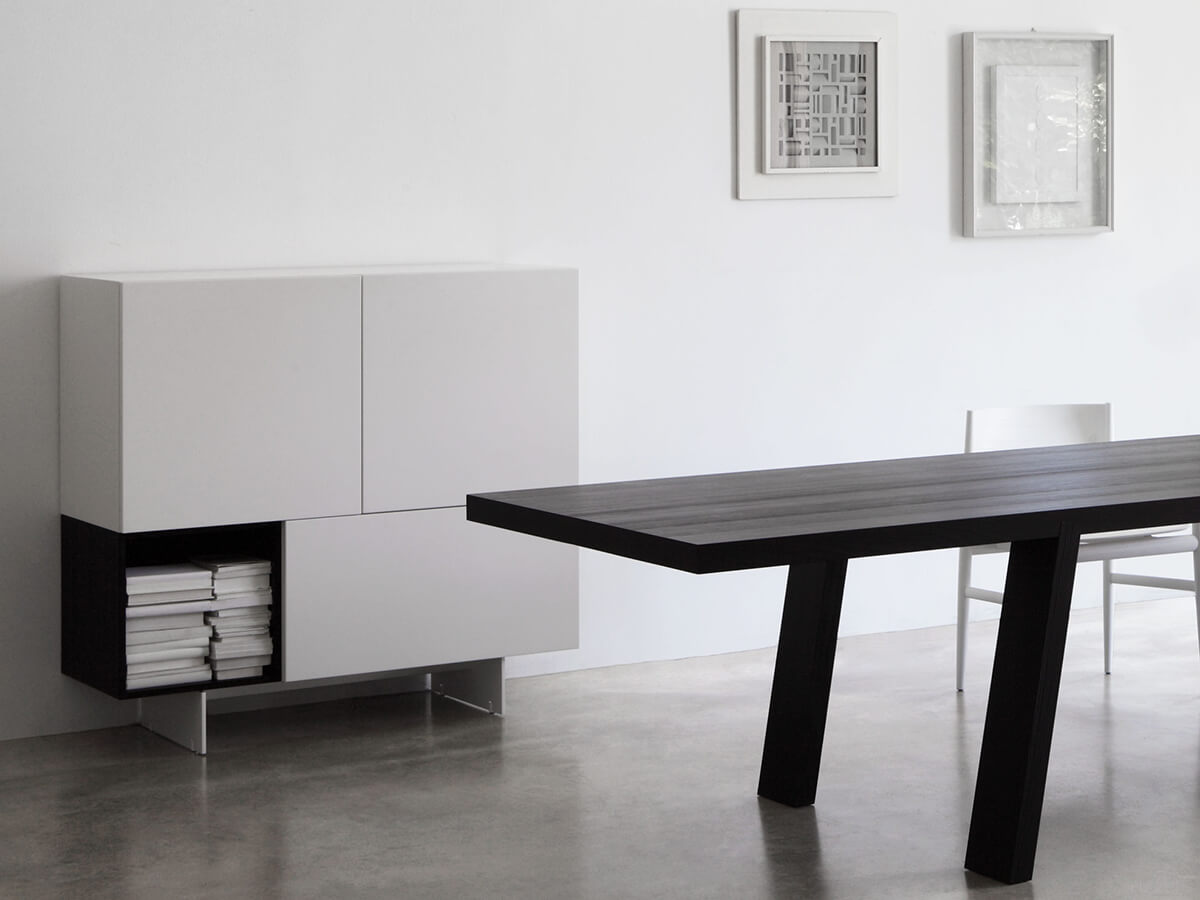 Modern is an innovative system of modular containers which is characterized by its extreme flexibility. The Modern sideboard, in particular, was designed by orro company to design spaces through clear and essential signs where the rigor of the shapes and the value of the choice applied to the finishes are clearly evident, synonyms of an extreme design quality. Modern was born from a particularly simple idea: the movement in space of a module with a pure geometric shape. This module measures 400 mm both vertically and horizontally. By connecting to itself and other parts, it manages to create unique compositions, perfect for any room in the house, from the more to the less formal.