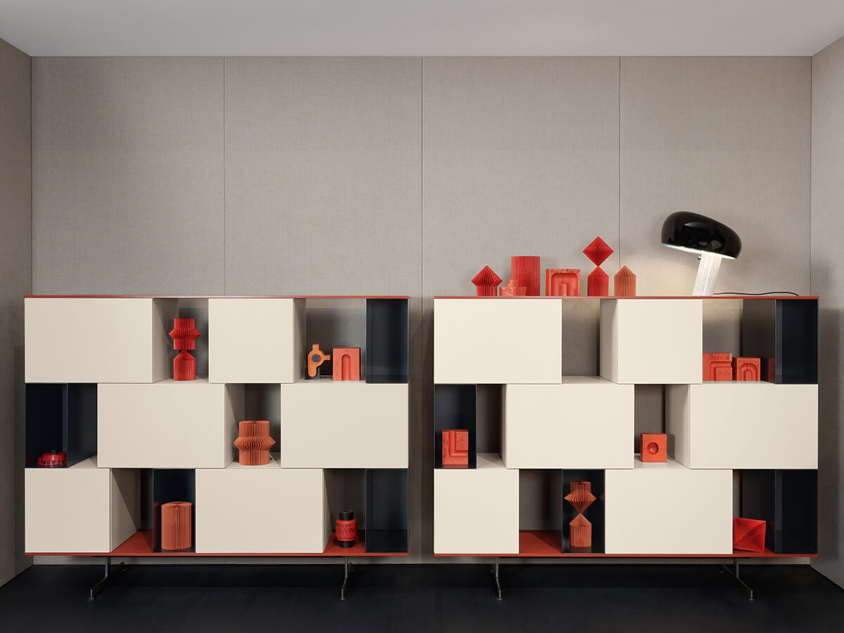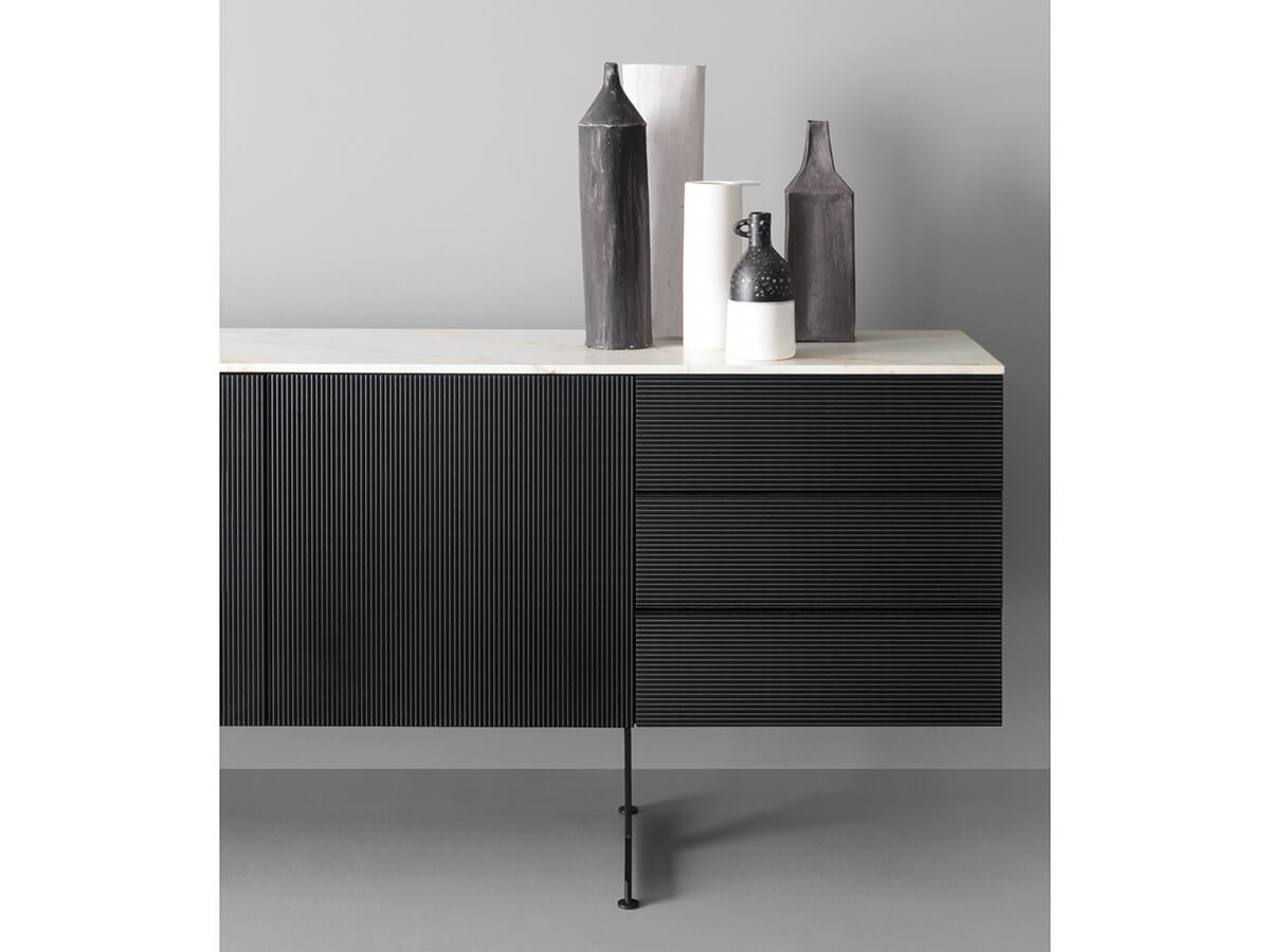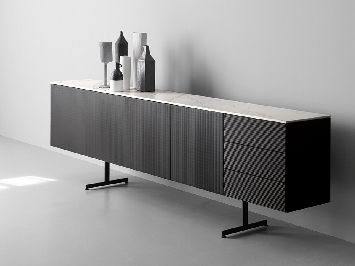 Modern is an innovative system of modular containers which is characterized by its extreme flexibility. The Modern sideboard, in particular, was designed by orro company to design spaces through clear and essential signs where the rigor of the shapes and the value of the choice applied to the finishes are clearly evident, synonyms of an extreme design quality. Modern was born from a particularly simple idea: the movement in space of a module with a pure geometric shape. This module measures 400 mm both vertically and horizontally. By connecting to itself and other parts, it manages to create unique compositions, perfect for any room in the house, from the more to the less formal.
