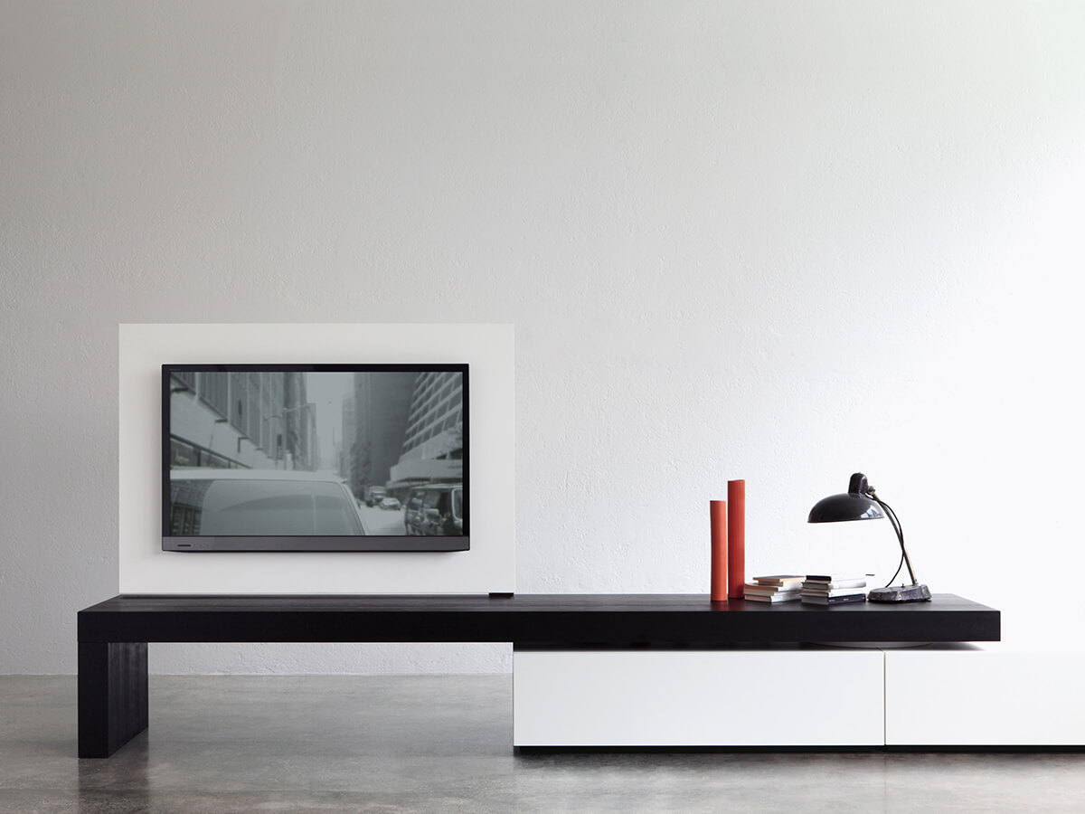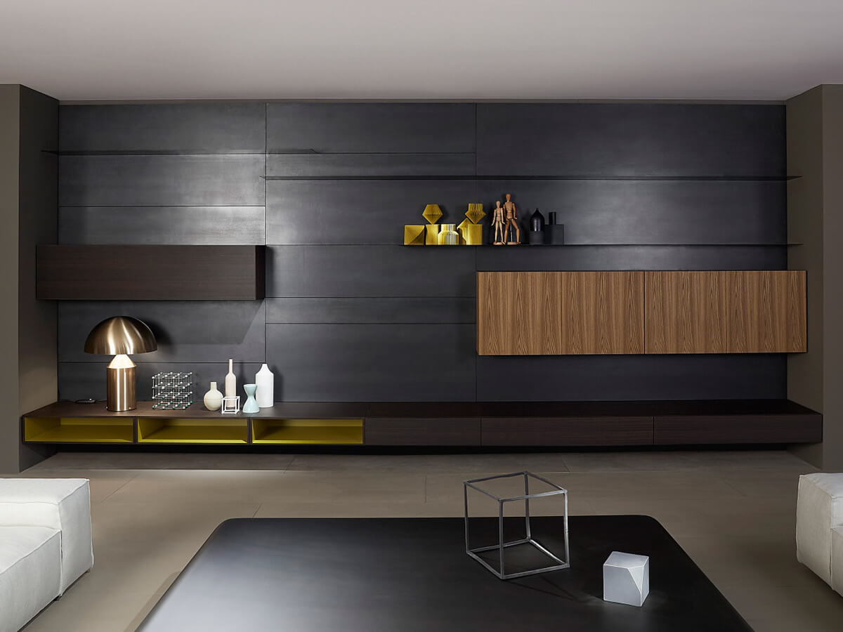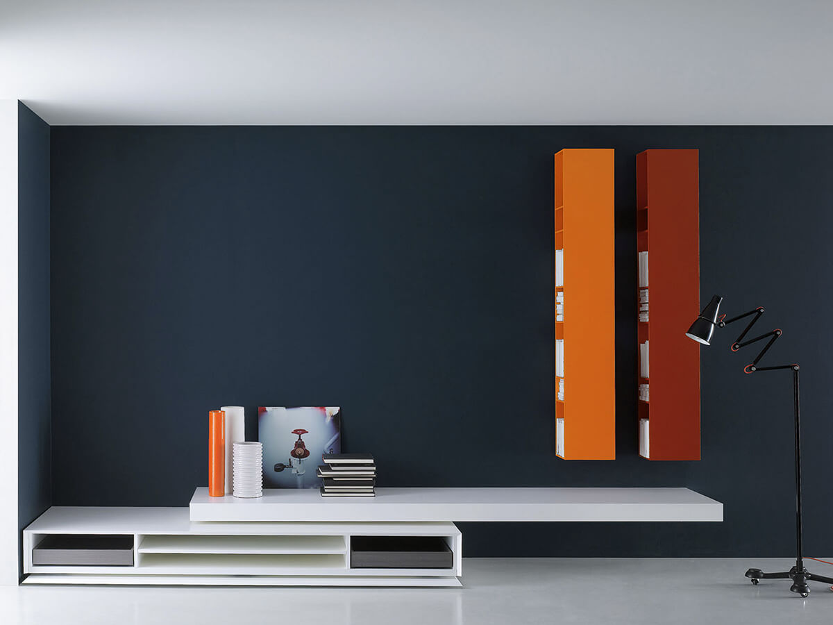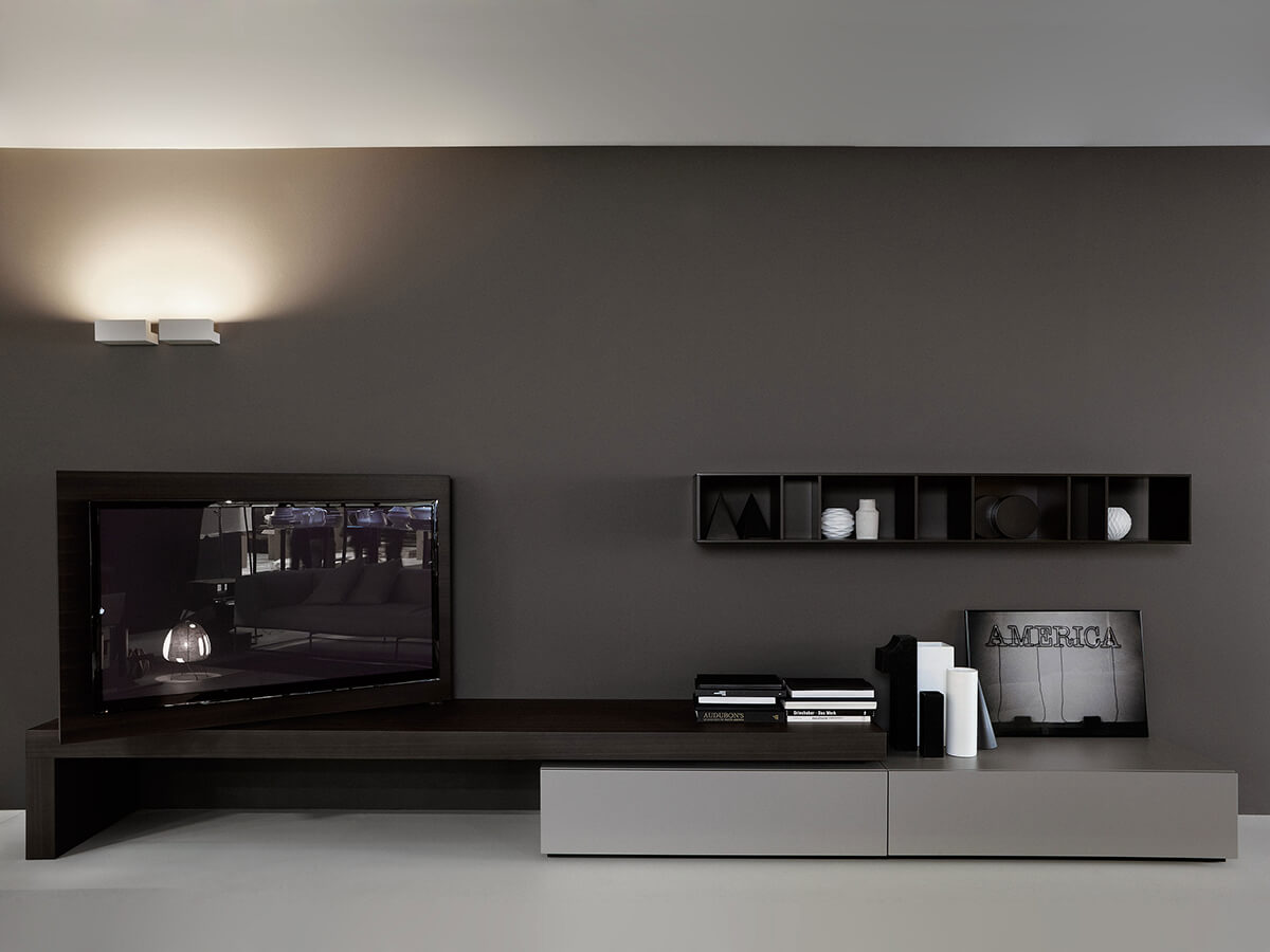 The Modern storage system, designed by Piero Lissoni for Porro, is characterized by its pure and essential shapes that give the spaces a solid geometric rigor. Its great versatility allows it to give life to TV units with a very different look: in fact, a lighter version can be presented, in which the container element is surmounted by a more contained vertical panel that acts as a backdrop for the TV and is anchored. at the base through an innovative 45 ° system, or combine with the shelves and boiserie of the Load-it collection to form larger and more scenographic compositions. Modern can also be reinterpreted in the “dining” version, where it takes the form of cupboards and storage units, and thanks to its clean and aseptic lines it is also perfect for work environments.