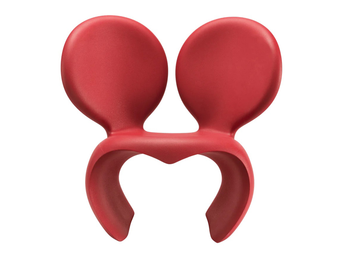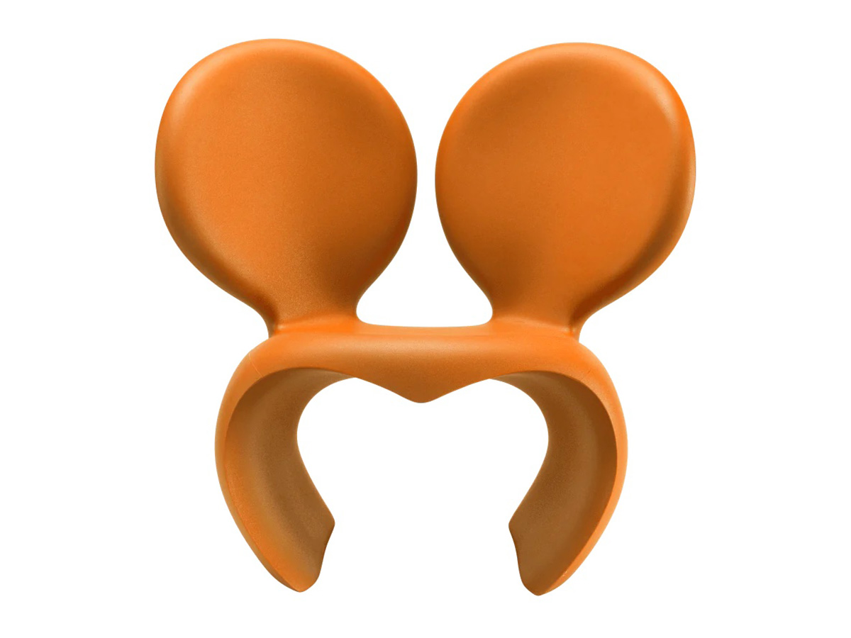 A tribute to the most famous mouse in the world, Don't F**K With the Mouse is one of designer Ron Arad's most iconic armchairs. Created in a limited edition, it has been re-proposed several times in different configurations to better adapt to the needs of its time and design trends. Now Qeeboo offers it in two main versions: one for the internal spaces in expanded polyurethane covered in fabric and the other for the external spaces in rotationally molded recyclable polyethylene. This armchair is available in numerous color variations, each unique so as to coordinate with its captivating and absolutely original design. The playful aspect makes it excellent for home environments, but it can still lend itself to more diversified uses if taken precisely for its antithetical vision of elegance and rigor.