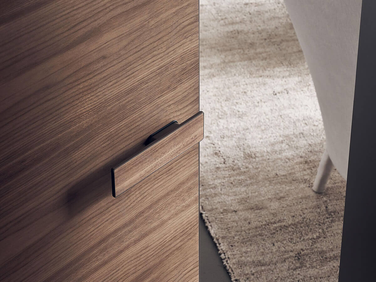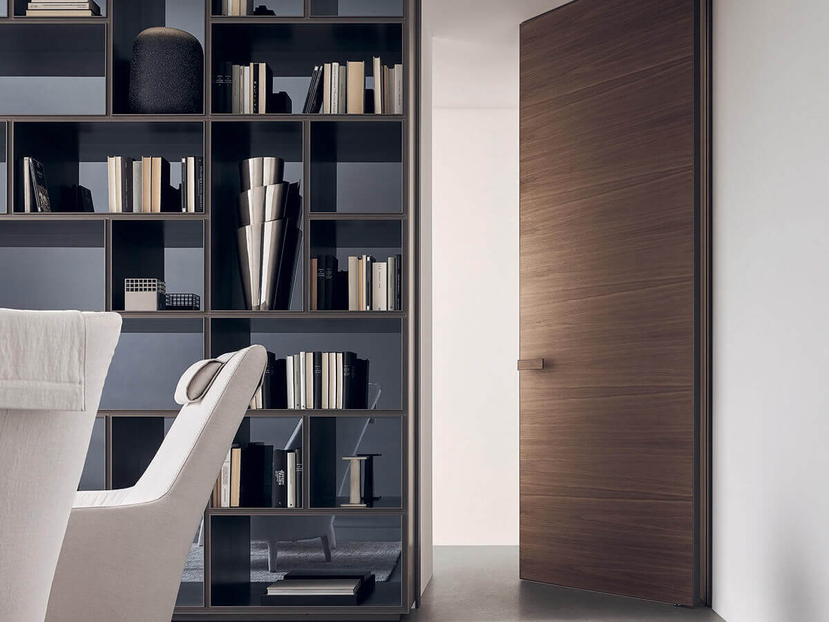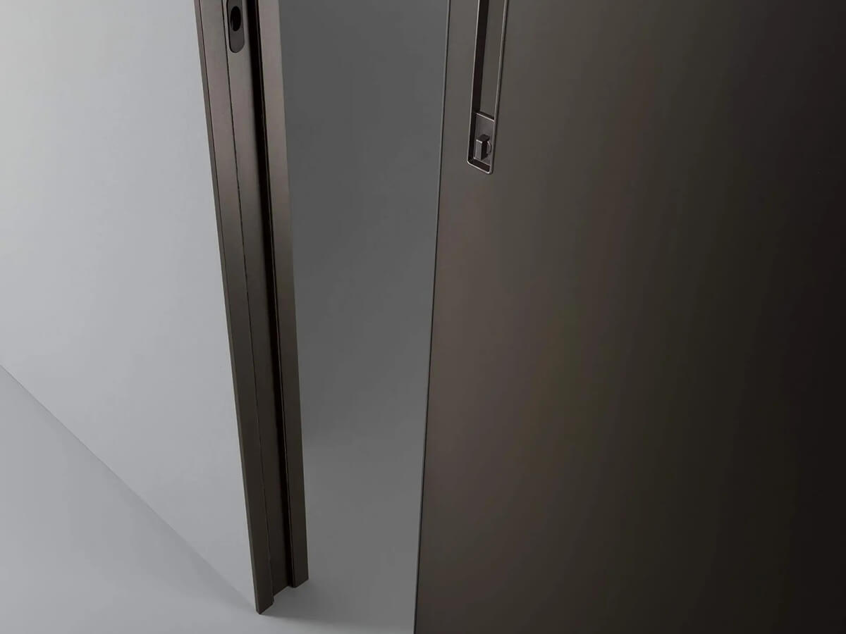 The Aura door by Rimadesio was born in the name of essentiality and minimalism. In fact, it provides for a reduction to the essential of the structural elements such as jambs and frames, emphasizing the innate elegance of the glass panel that makes up the door and letting it be framed only by a very thin perimeter jamb. The door panel is available in a wide choice of different finishes, from lacquered glass from Rimadesio's Ecolorsystem collection to fine woods such as walnut or oak. The opening, very light and silent, is bidirectional, while the closure is available both through an exclusive magnetic closure profile and with a more traditional magnetic lock. In addition to the classic hinged version, the Aura door is also available in a sliding configuration.