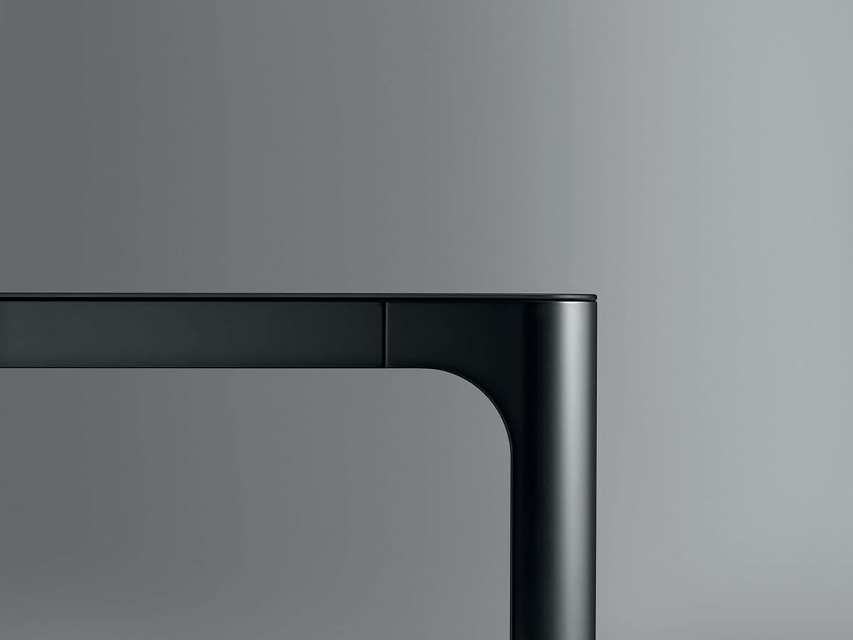 The Flat table by Rimadesio, sober in its shapes and versatile in its possibilities of use, is perfect for both domestic and professional use. The rigor of its lines is softened by the particular rounded design of the corners and legs, which also act as a distinctive stylistic element. It is completely demountable and has invisible joints which give its shape a monolithic appearance. The wide variety of finishes available allows the Flat line of tables to integrate perfectly with the rest of the Rimadesio collections, creating coordinated environments in a game of shapes and materials.* Technical features: the versions with glass top can be equipped with cable ducts