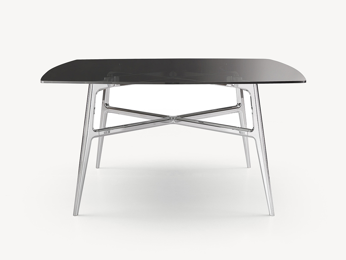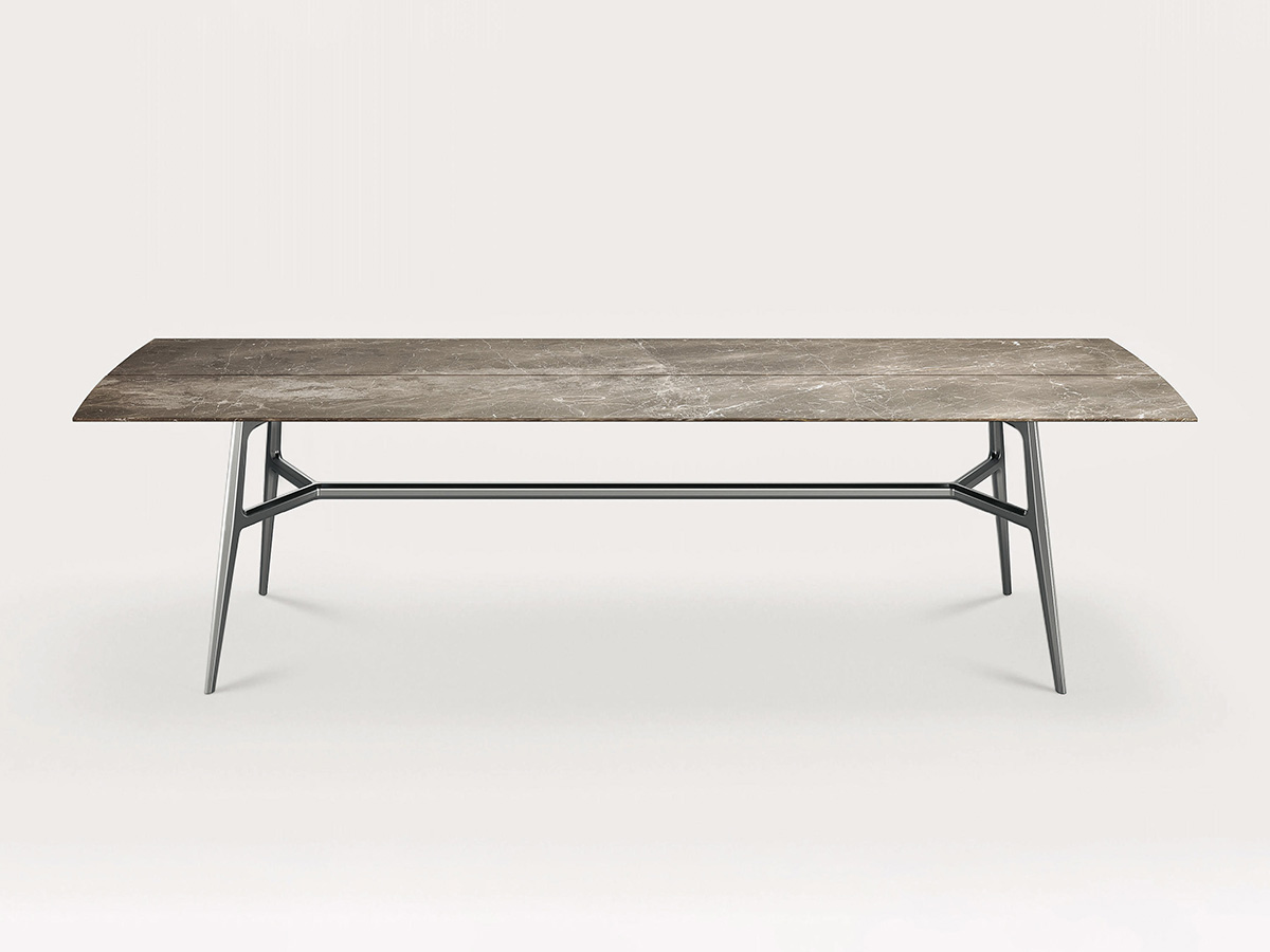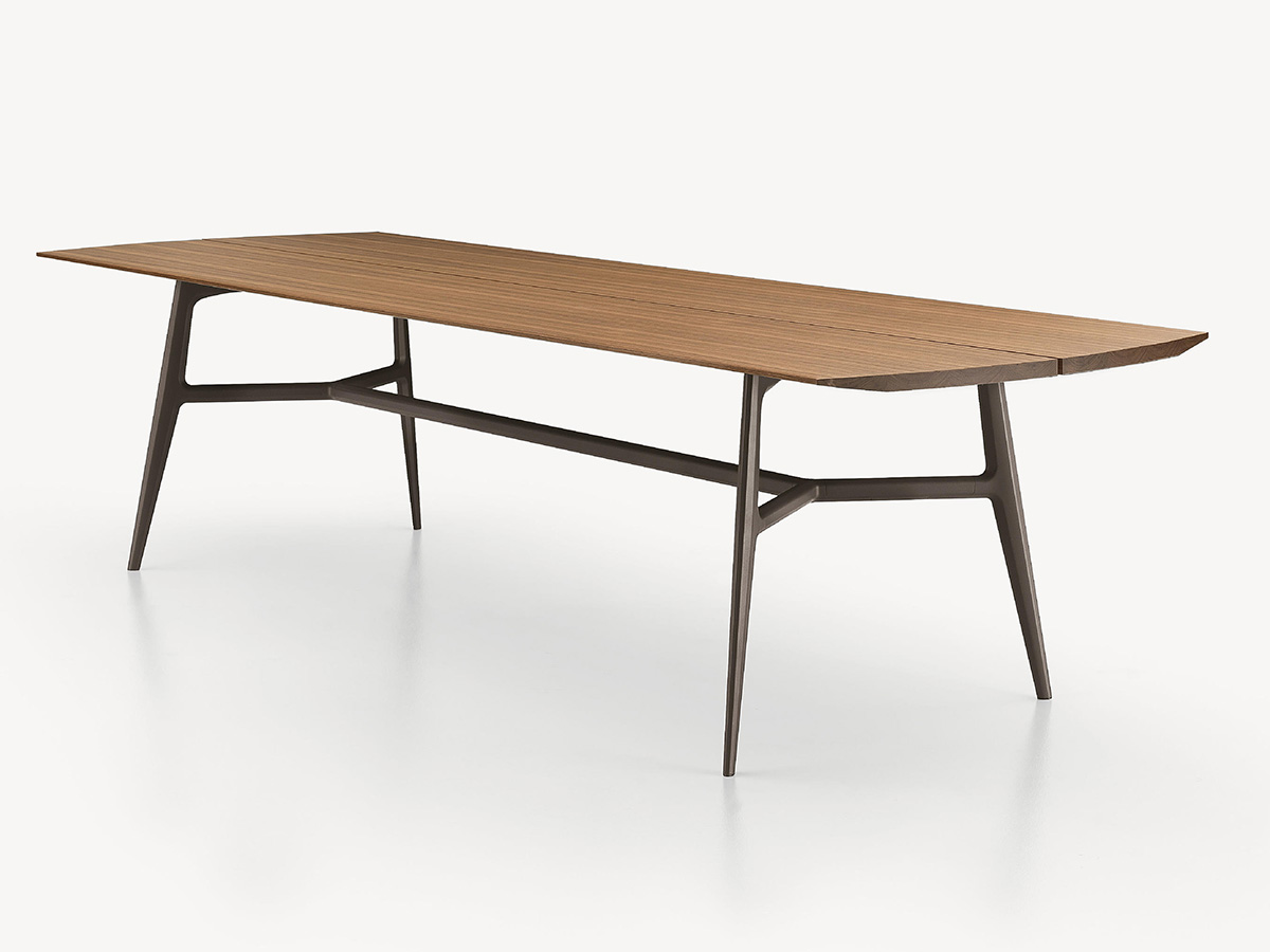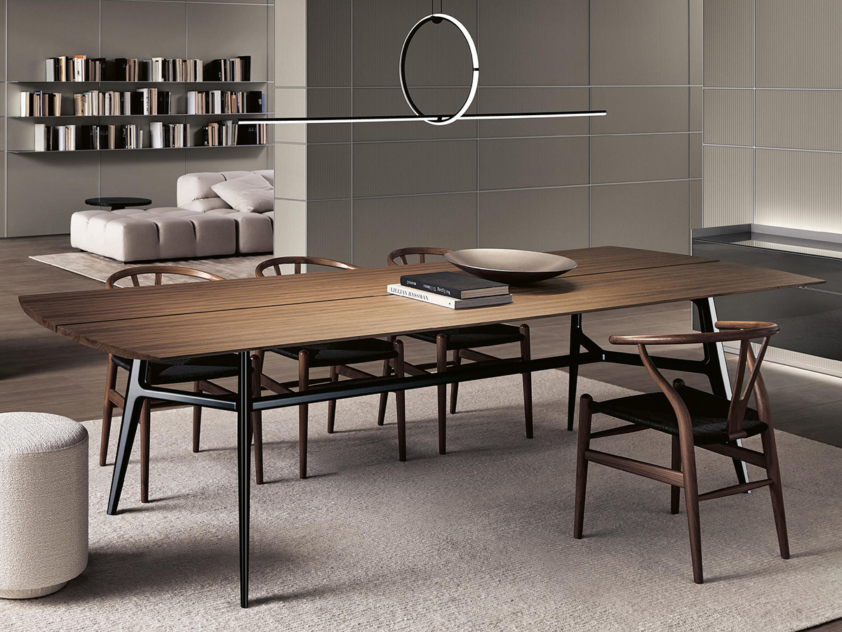 A contemporary furnishing element that seems to want to reinterpret and modernize the more classic refectory tables, large and firm for the convenience of more people. The structure is in die-cast aluminum with octagonal section legs and tie rod designed to guarantee stability in the different rectangular, round and square dimensions. The beauty of Francis arises precisely from the skilful use of wood and its essences, deliberately worked and modeled to bring out its most valuable and elegant part. The shapes and proportions of this object place it in living environments but above all in large dining rooms where a good number of seats is required.