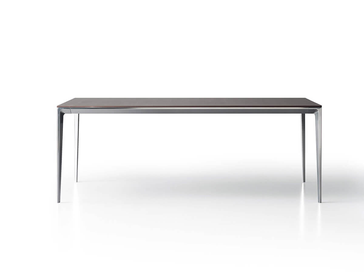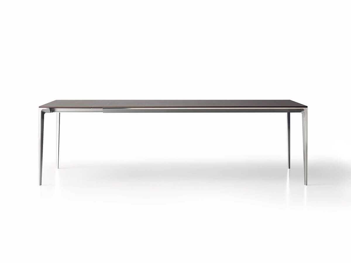 Long Island is a minimalist but at the same time technically refined table, in line with the traditional Rimadesio philosophy that combines cold and essential shapes with complex and highly valuable constructive solutions. Its clean lines are strongly inspired by the school of Rationalism and see their fulcrum in the four very thin legs in die-cast aluminum, on which rests a top that can be customized in a variety of finishes. In addition to the fixed version, Long Island is also available as an extendable table, guided by an invisible and sophisticated mechanism.* Technical features: the versions with lacquered glass top can be equipped with cable ducts