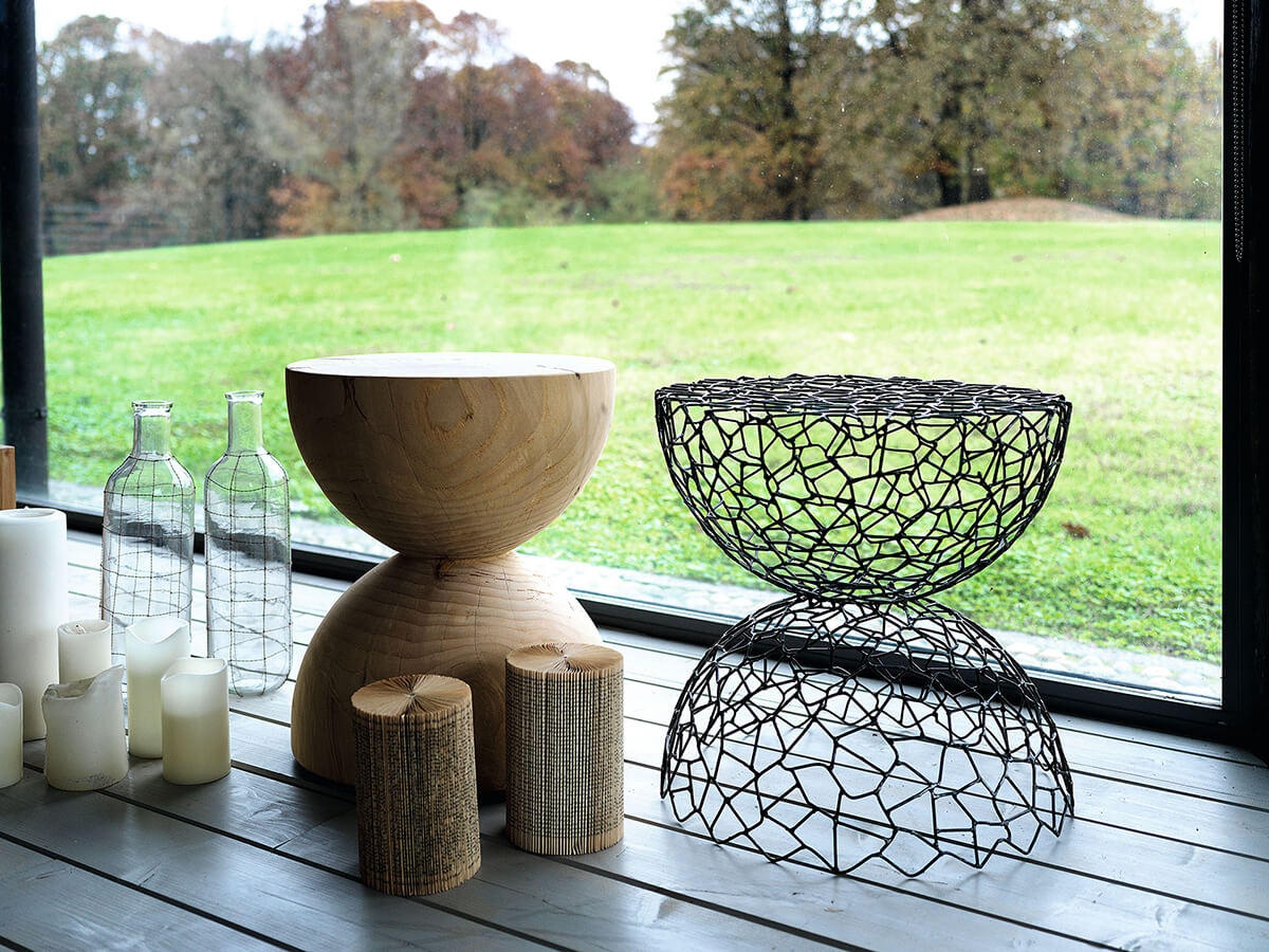 Riva 1920 was born as a company specialized in creating wooden furniture, ideal for those who love a different and highly distinctive style, capable of exploiting the naturalness of wood to create unique objects destined to last over time. Clessidra is a highly versatile element, which is well suited to different environments and contexts thanks to its shape and to the small dimensions that allow it to be placed in any context. Clessidra is made of solid scented cedar wood and worked from a single block, which is characterized by two hemispheres placed one above the other to form a real hourglass.
