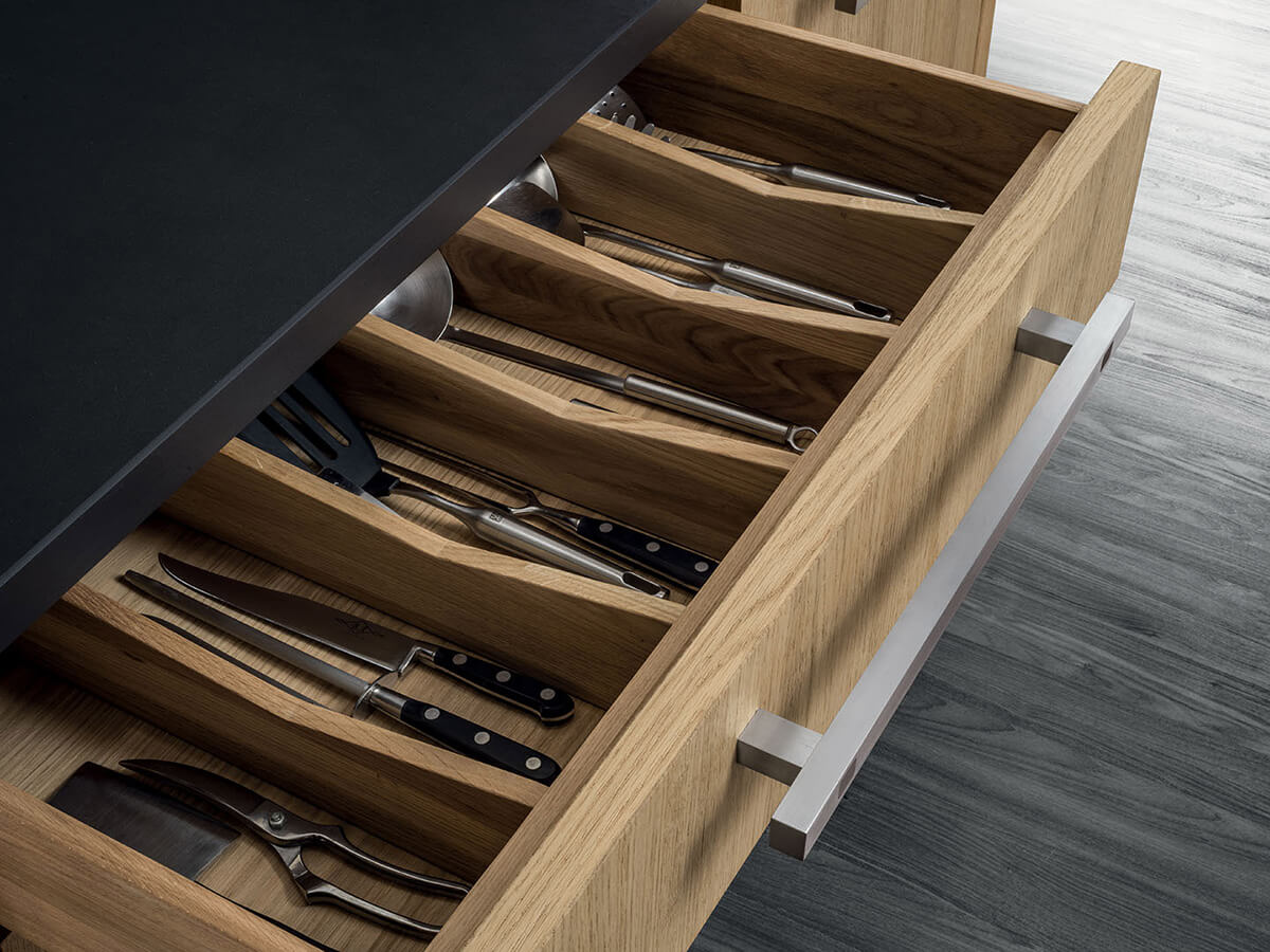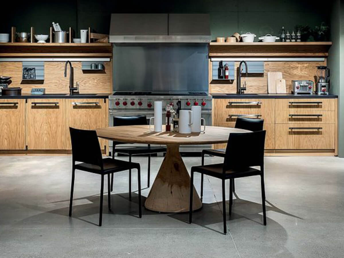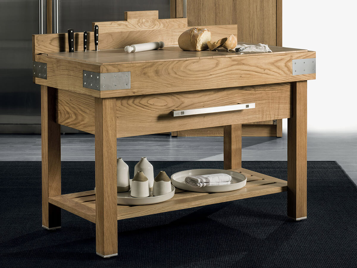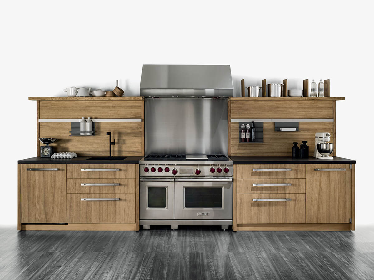 The Grangusto kitchen by Riva 1920, signed by the famous French designer Marc Sadler, is a large semi-professional kitchen equipped with the best appliances available on the market. From an aesthetic point of view, it is characterized by the contrast between the sparkling steel of the more technical elements and the handles and the warmth of the wood that covers the doors and the rest of the kitchen surface, in a vivid game of contrasts between modernity and tradition. Grangusto is the perfect kitchen for those looking for a balance between the great Italian tradition of high carpentry and the most professional performances for cooking.