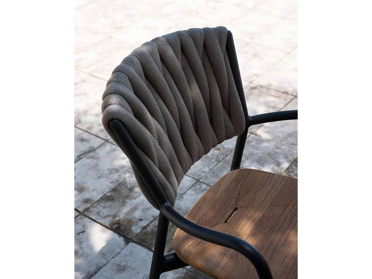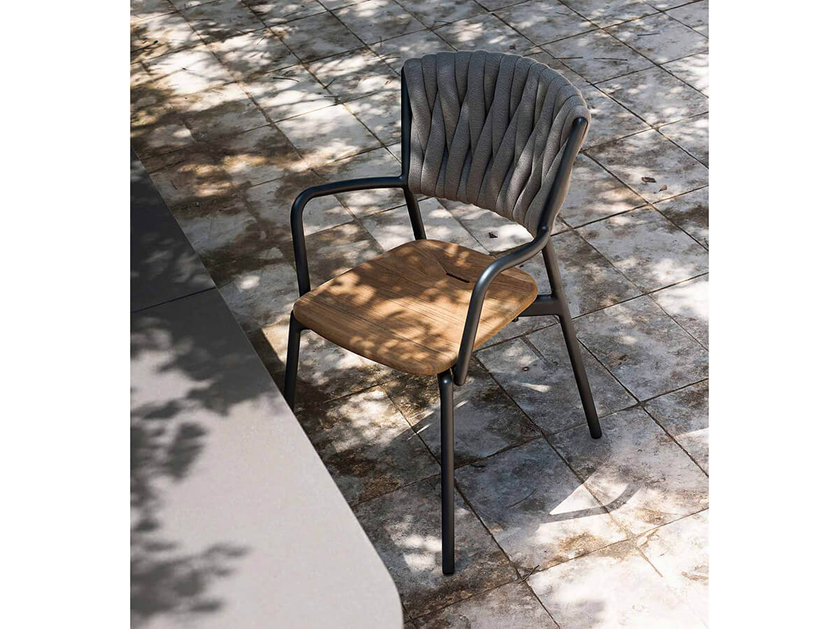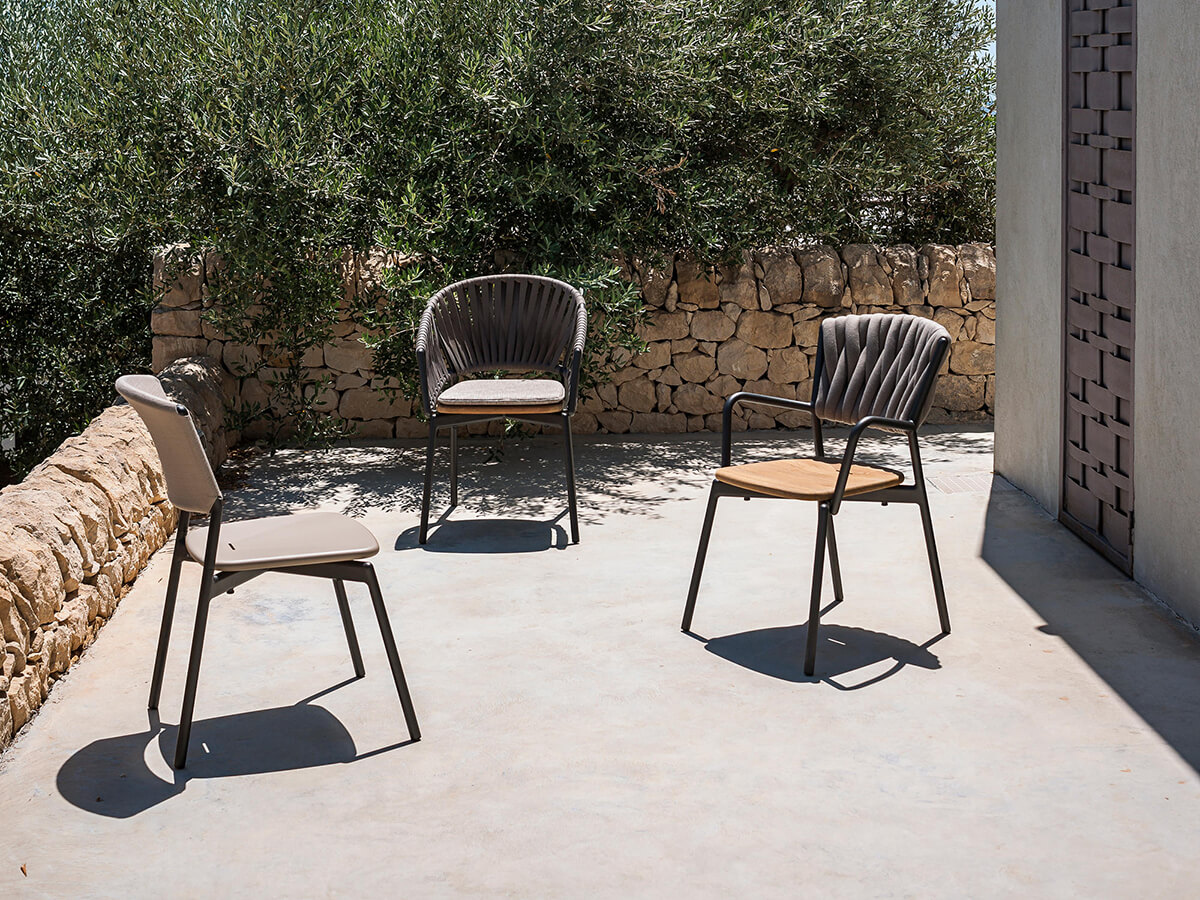 The Piper series includes numerous proposals for garden furniture, including sofas, chairs, armchairs, sun loungers, stools, tables and coffee tables. Combined together, the different Piper accessories give life to extremely fascinating compositions, where Roda's attention is strongly perceived in creating spaces of great intimacy, animated by a fabulous design. The Piper chair is stackable and can be presented with or without armrests, depending on the use to be made of it. The materials used are numerous: the structure is in tubular aluminum, the seats are in teak, softer or in polyurethane resin. Each seat has a matching cushion, ideal for welcoming the body and offering more pleasant sensations.