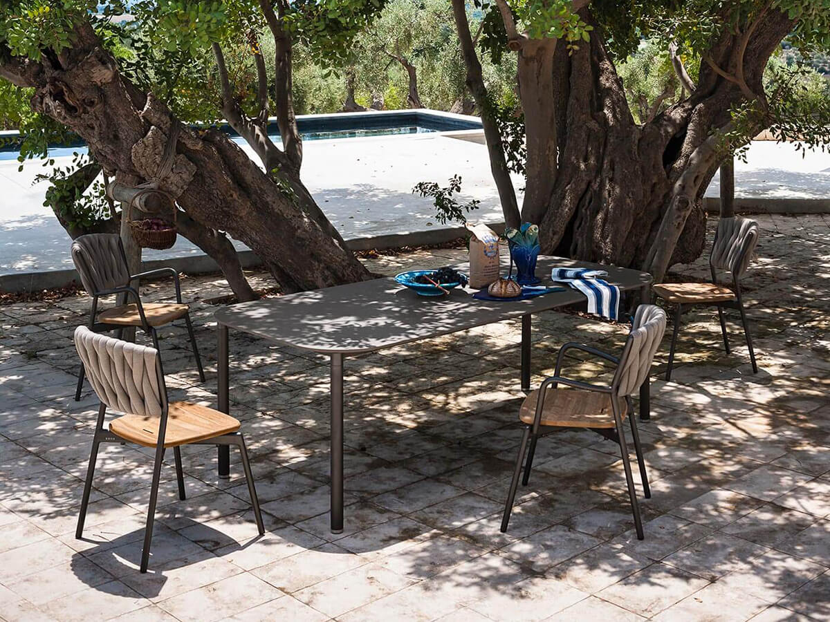 Since the early years, RODA was in fact the first company in the furnishings field beginning to think of designing collections that have the same cultural matrix of the interior, so close to the outdoor furnishings, to be able to interface harmonically with them.