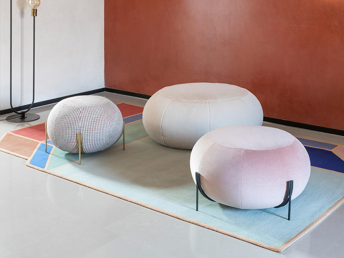 Geo is a piece of furniture that fits ideally into any residential and contract context without ever clashing but rather enhancing the furniture with a touch of uniqueness and sophisticated elegance. A passe-partout element capable of communicating wherever it is placed, also thanks to the wide choice of textiles with which the company has been able to associate it. Geo is a colorful pouf with unique, simple and deeply iconic shapes. The metal structure on which it rests embellishes the project, also ensuring greater cleanliness of the project in general. Last detail, the cover is removable.