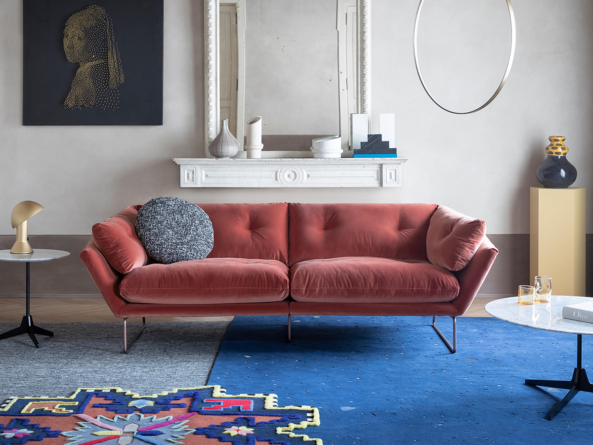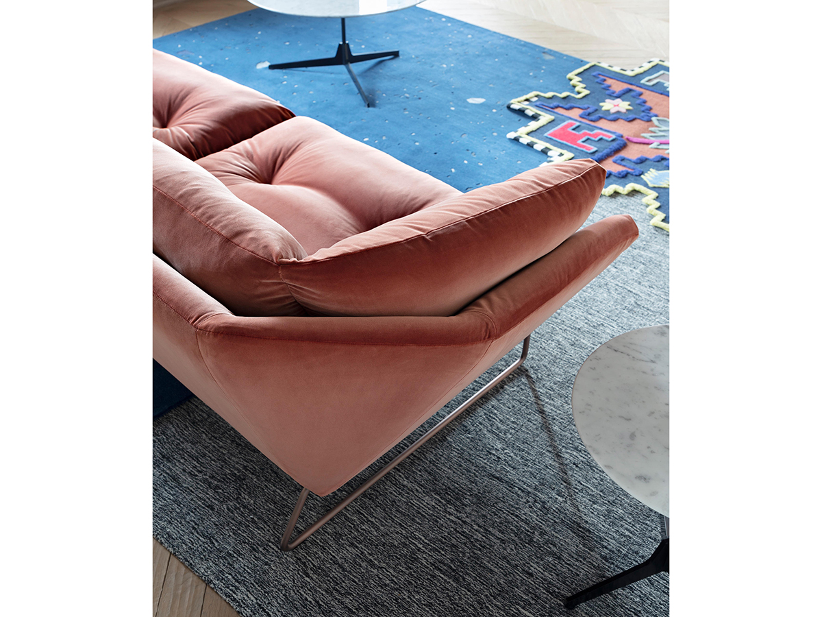 From the Saba collection of the same name comes New York Suite, a sofa with classic yet innovative shapes, capable of making fans of the sector dream and stimulate emotions and great fascination for high-end design. The collection is signed by Sergio Bicego and presents a contemporary soul filled with a timeless spirit. The quilting of the cushions reminds of a retro elegance and gives in to the temptation of nostalgia in the exquisitely pastel colors and padding. The hexagonal shape of the structure presents a strong comfort, embellished by thin feet in steel rod, ideal for resistance and solidity. The numerous variants of the collection also feature a lounge chair and a 155 cm sofa that softly accommodates two persons.