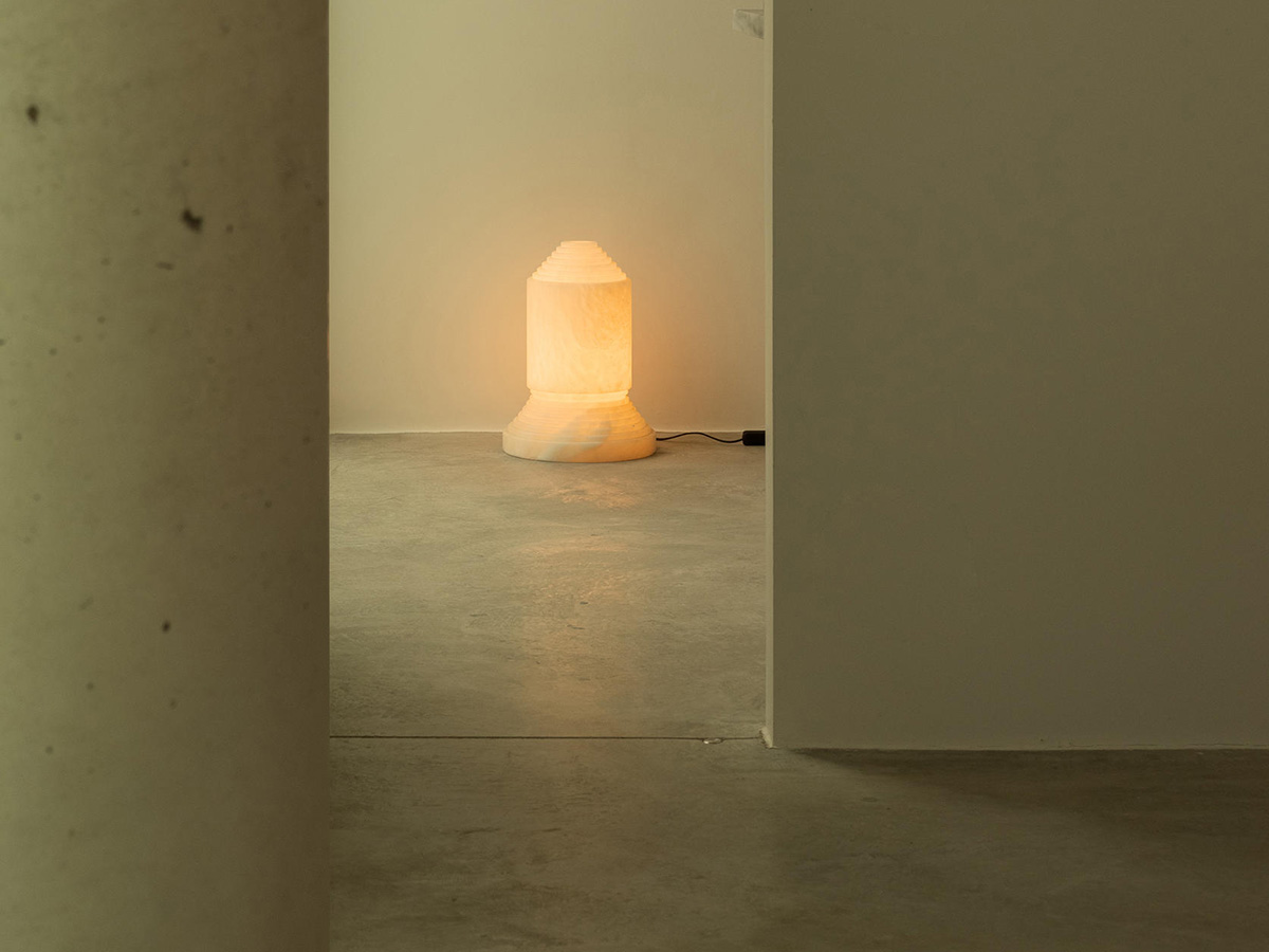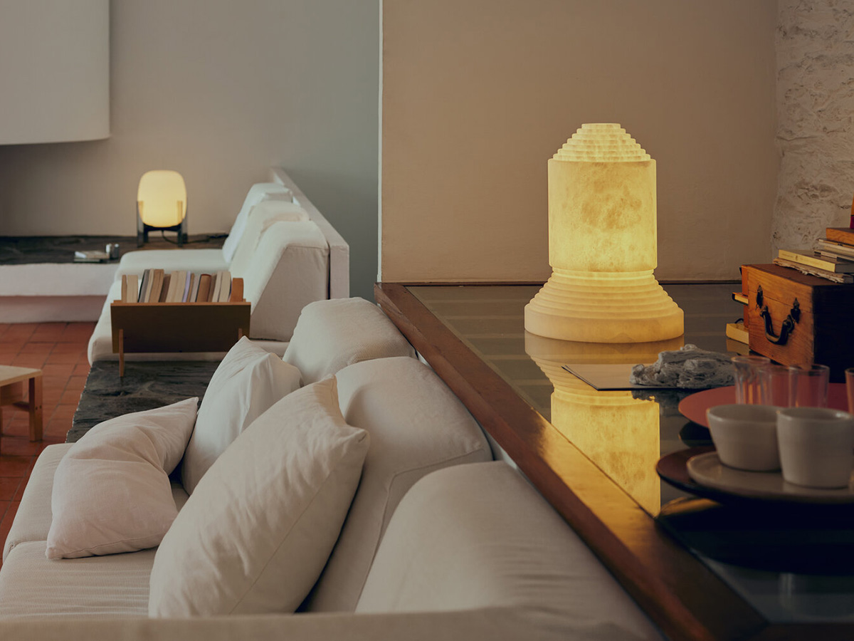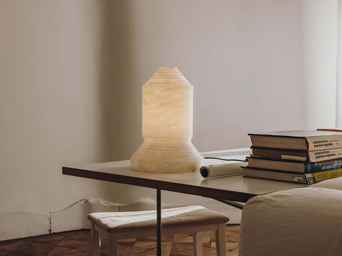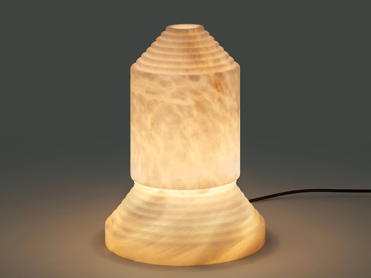 The Babel table lamp by Santa & Cole can be considered a true luminous sculpture that focuses entirely on the charm of a rare and precious material such as alabaster. The shape conceived by designer Àngel Jové recalls some ancestral stylistic features of a small tower. The base is made of solid alabaster, while the diffuser is hollow and contains the light, which filtering through the stone walls gives life to an intimate and suffused atmosphere, imbued with magic. A surprising and very difficult material to work with, alabaster makes each Babel lamp a unique piece, with different veins and plays of light.