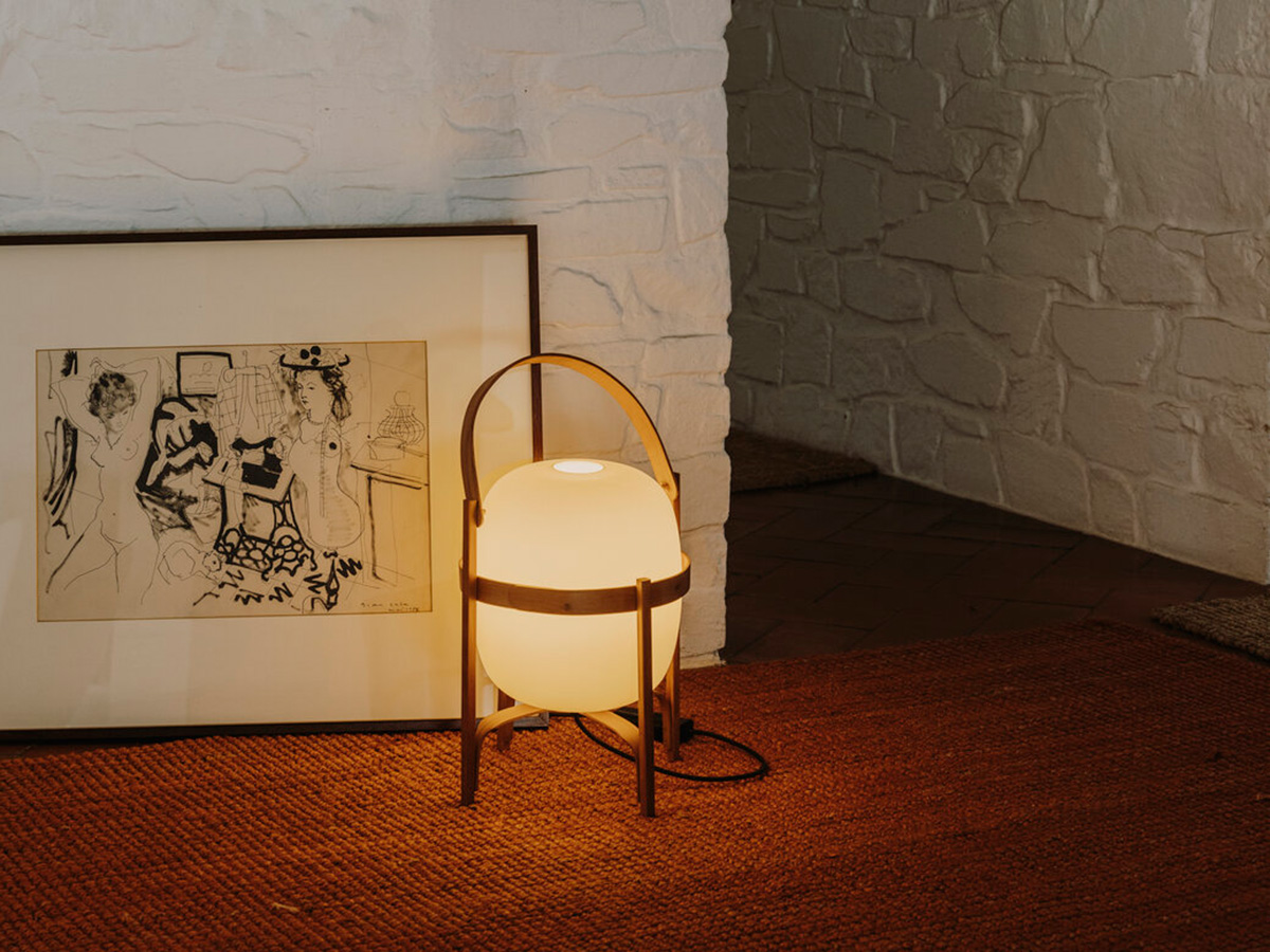 The Cesta table lamp by Santa & Cole is probably the most famous product in the brand's entire catalog and, probably, the most known lamp in the entire history of Spanish design. Conceived by the Catalan designer Miguel Milá in 1962, the story of its birth is curious and fascinating: Milá in fact drew inspiration from an opaline globe found by chance outside a glass factory during a walk in Barcelona and decided to take it home to give it a new life. He then inserted it into a bentwood harness, similar to the one still in use today, and made it into a table lamp. Practical and easy to move thanks to the large handle above it, Cesta later began to be mass-produced by Santa & Cole, also giving rise to a large family of lamps characterized by different finishes.