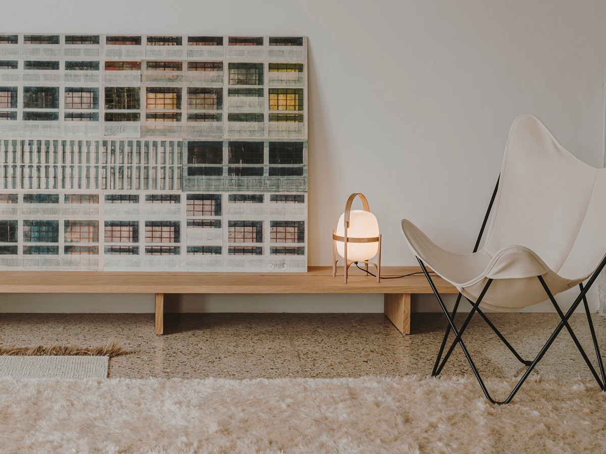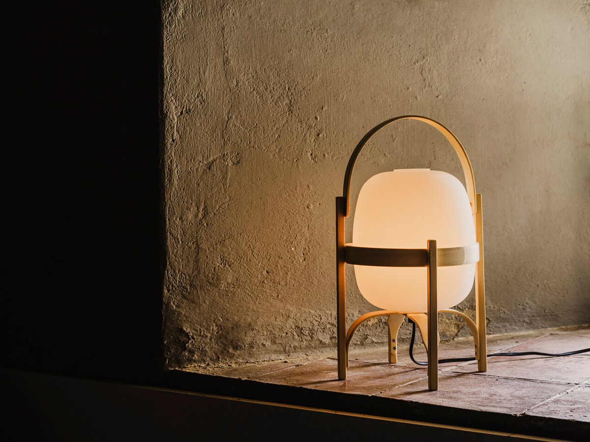 The Cesta table lamp by Santa & Cole is probably the most famous product in the brand's entire catalog and, probably, the most known lamp in the entire history of Spanish design. Conceived by the Catalan designer Miguel Milá in 1962, the story of its birth is curious and fascinating: Milá in fact drew inspiration from an opaline globe found by chance outside a glass factory during a walk in Barcelona and decided to take it home to give it a new life. He then inserted it into a bentwood harness, similar to the one still in use today, and made it into a table lamp. Practical and easy to move thanks to the large handle above it, Cesta later began to be mass-produced by Santa & Cole, also giving rise to a large family of lamps characterized by different finishes.