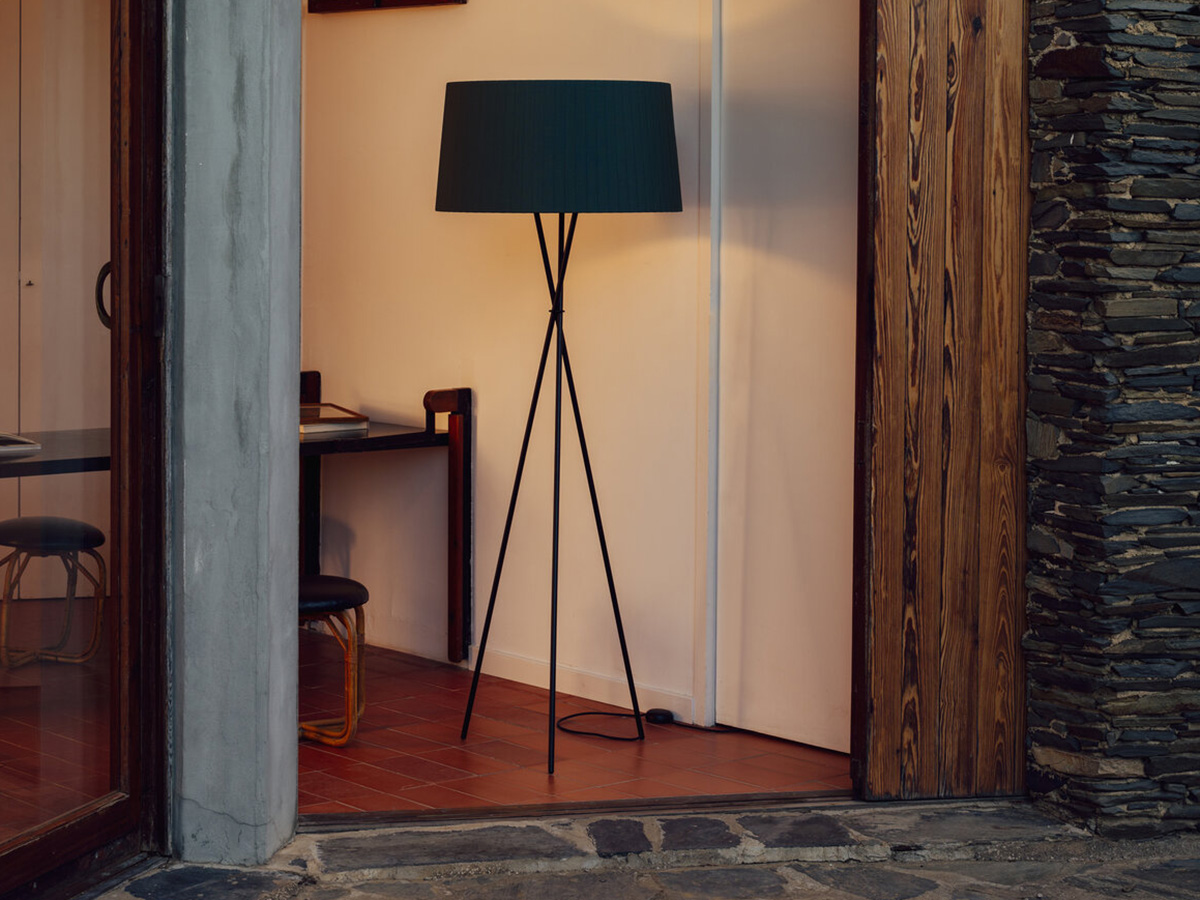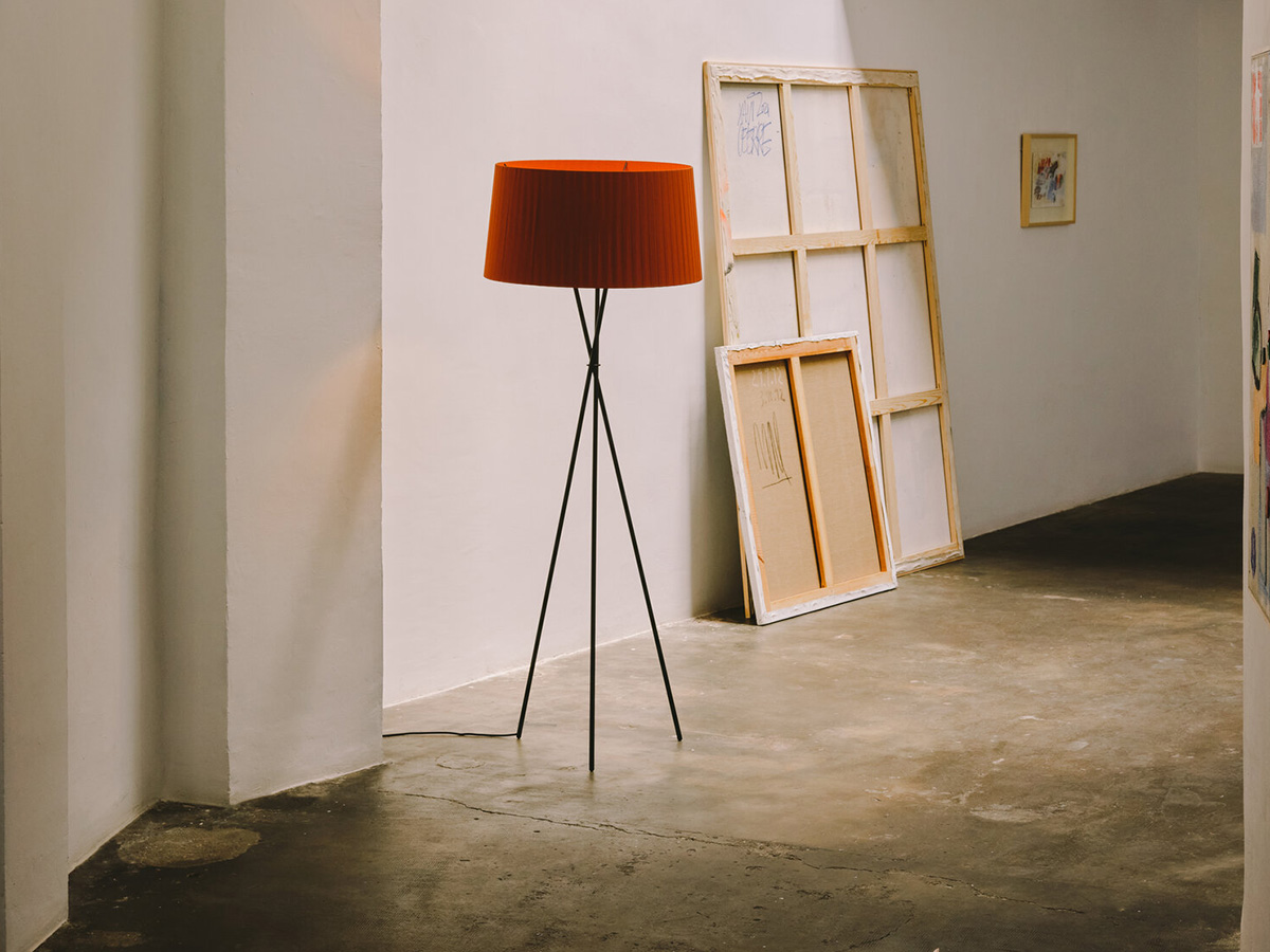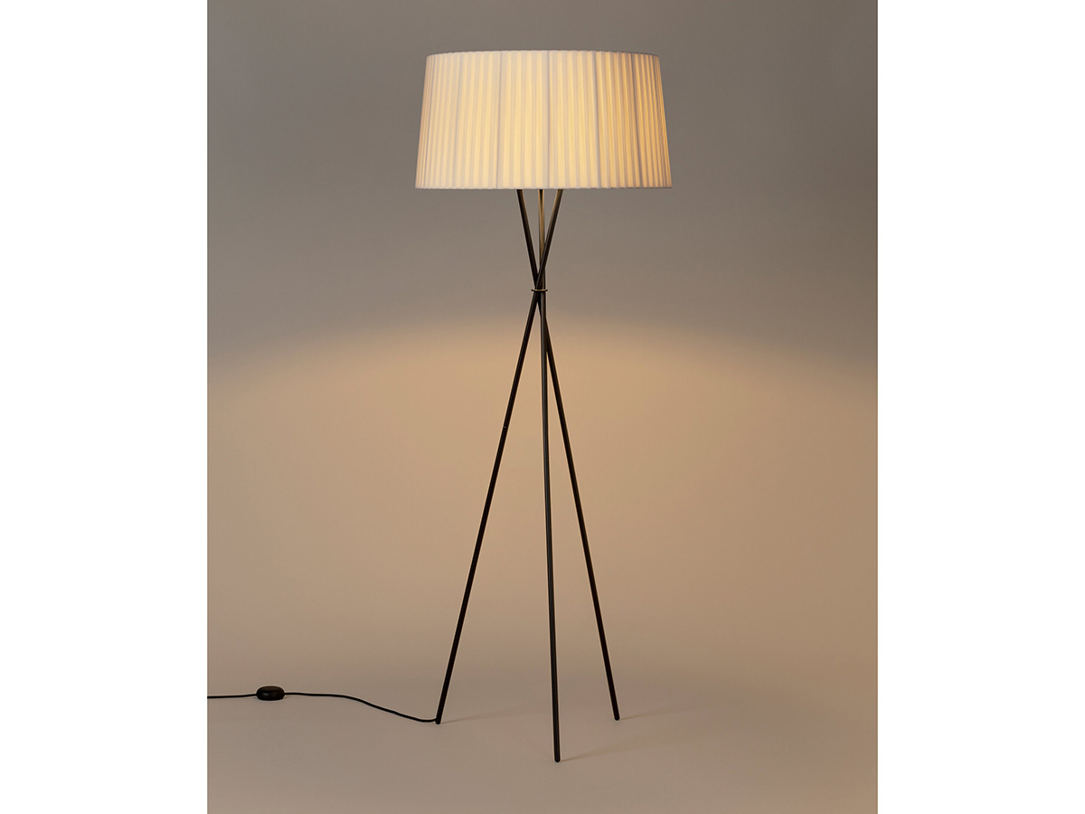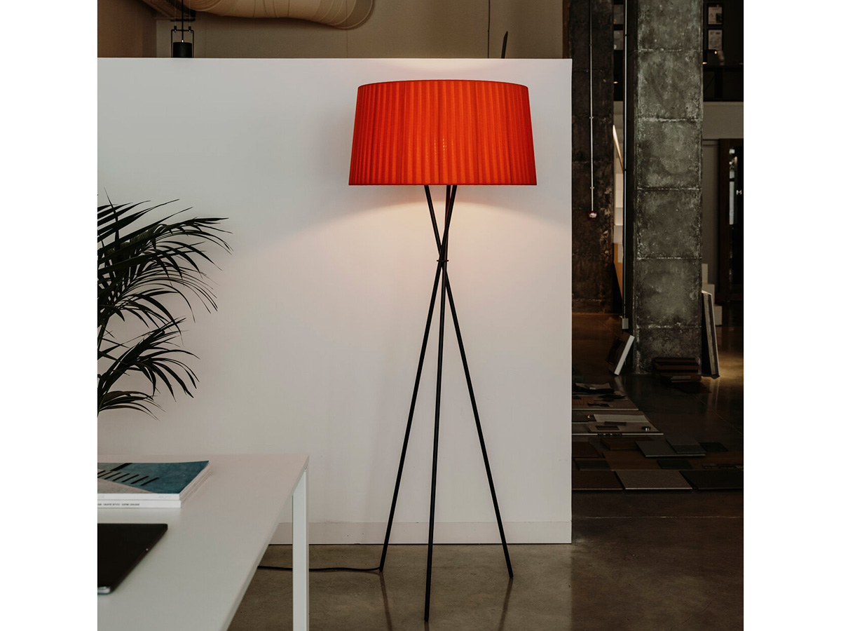 The Trípode floor lamp by Santa & Cole embodies the charm of essentiality. It is a purely traditional lamp, in which a tripod of thin black metal rods supports a hand-pleated textile lampshade. The different colors in which the lampshade is available give those who want it an extra touch in addition to the simple functionality that characterizes Trípode: it is available in white, black, brick red, green and many other finishes, including the exclusive patterns with vertical bands designed by designer Júlia Esqué.