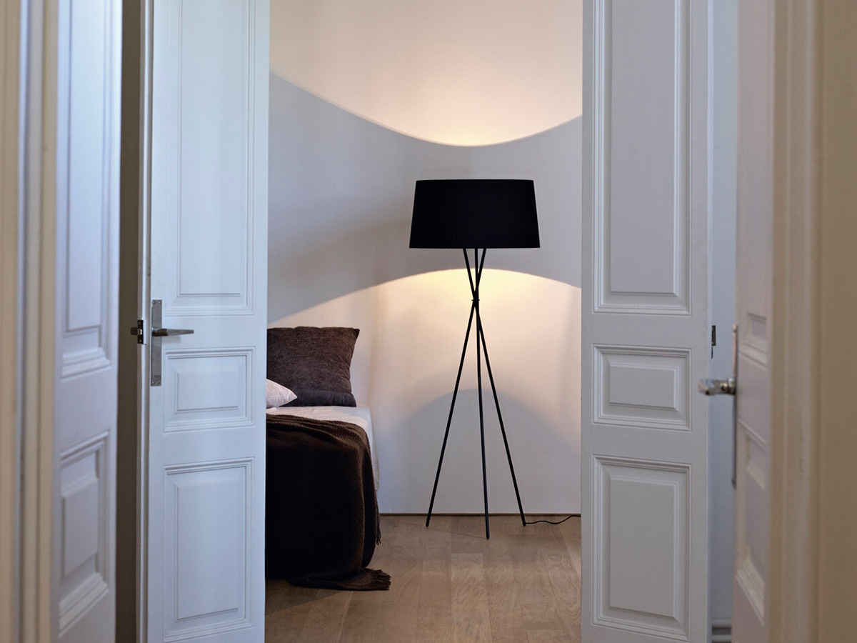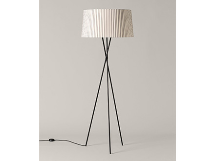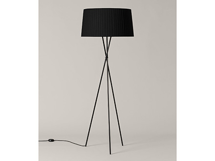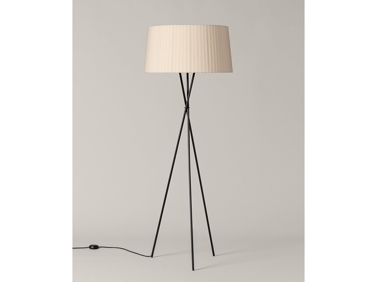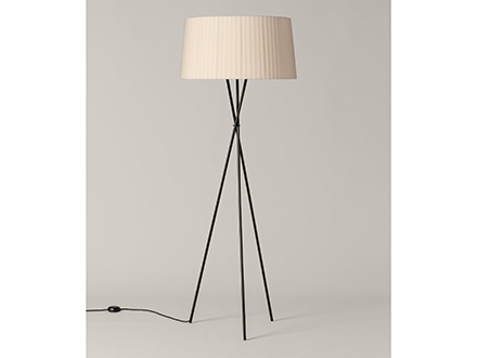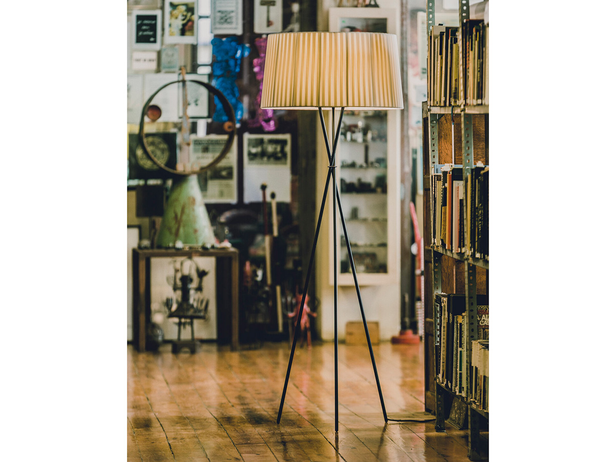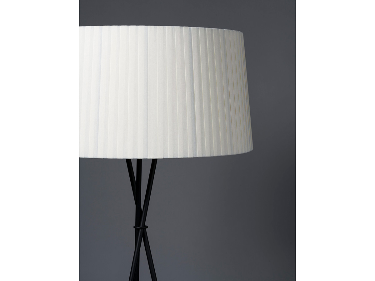The Trípode floor lamp by Santa & Cole embodies the charm of essentiality. It is a purely traditional lamp, in which a tripod of thin black metal rods supports a hand-pleated textile lampshade. The different colors in which the lampshade is available give those who want it an extra touch in addition to the simple functionality that characterizes Trípode: it is available in white, black, brick red, green and many other finishes, including the exclusive patterns with vertical bands designed by designer Júlia Esqué.