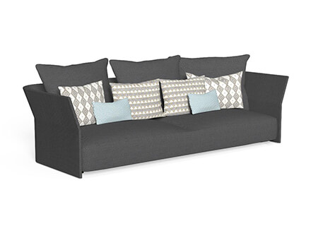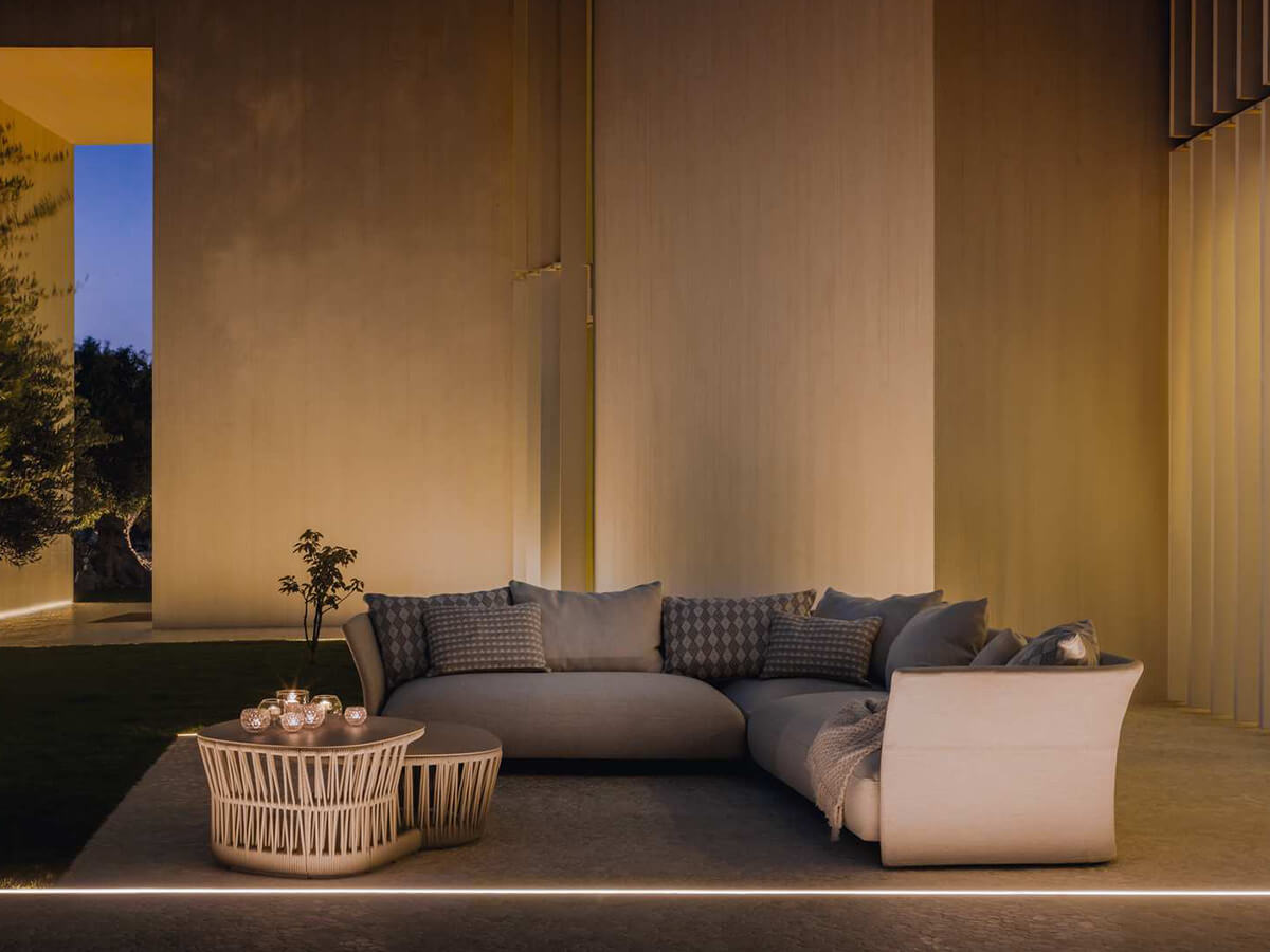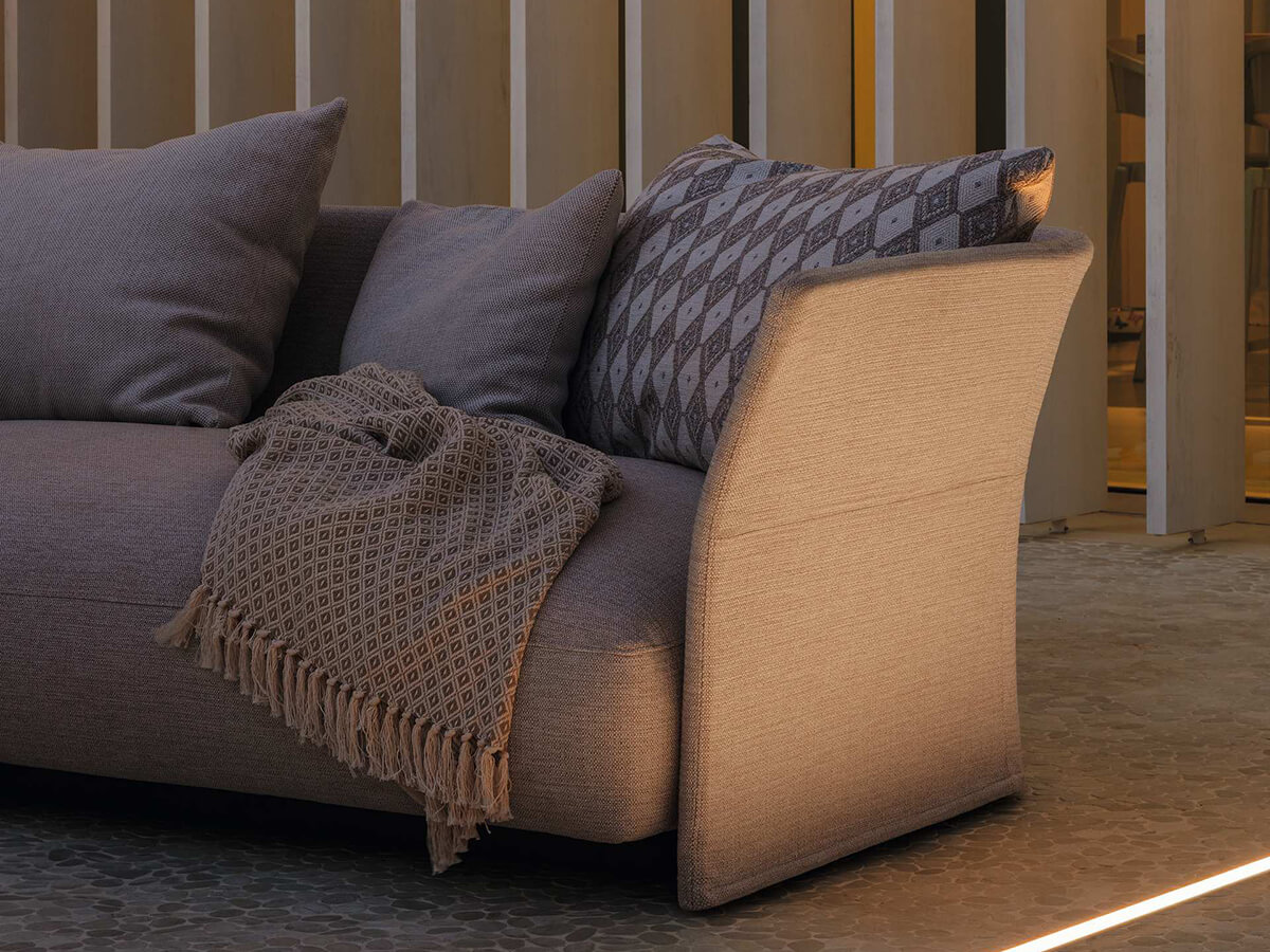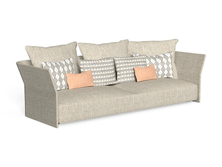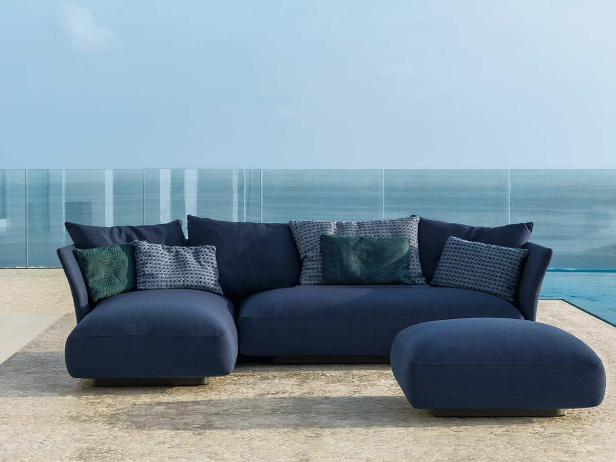 Cliff is a modular sofa belonging to the homonymous collection by Talenti. There are numerous combinations and shapes that can be adopted for this upholstery in order to create the composition that best matches the taste and needs of the environment in which it will be placed. There are also numerous materials of this sofa, aimed at increasing the customization of each piece. The modules in the woven rope version have a metal tubular structure, painted in the same color as the fabric of the cushions and rope. In the fabric elements, the aluminum-based structure is instead hidden.