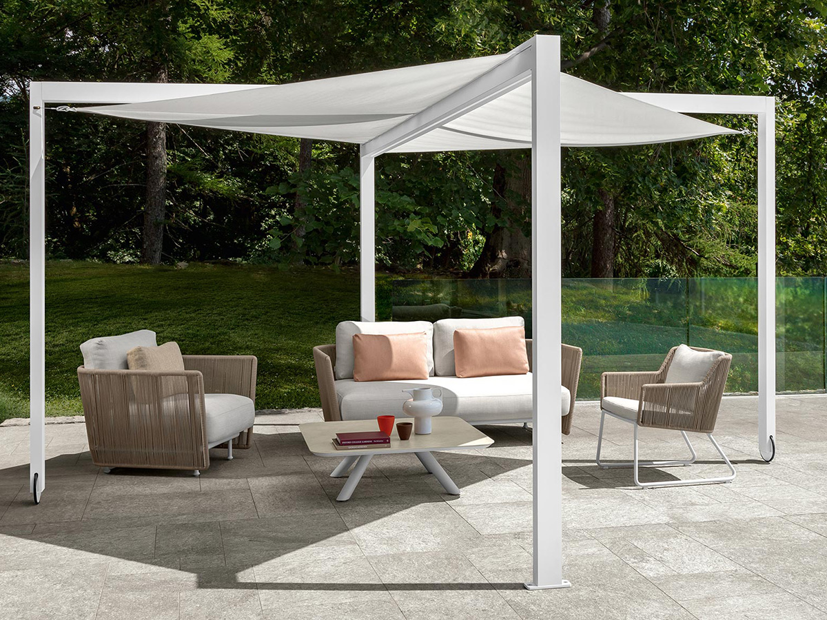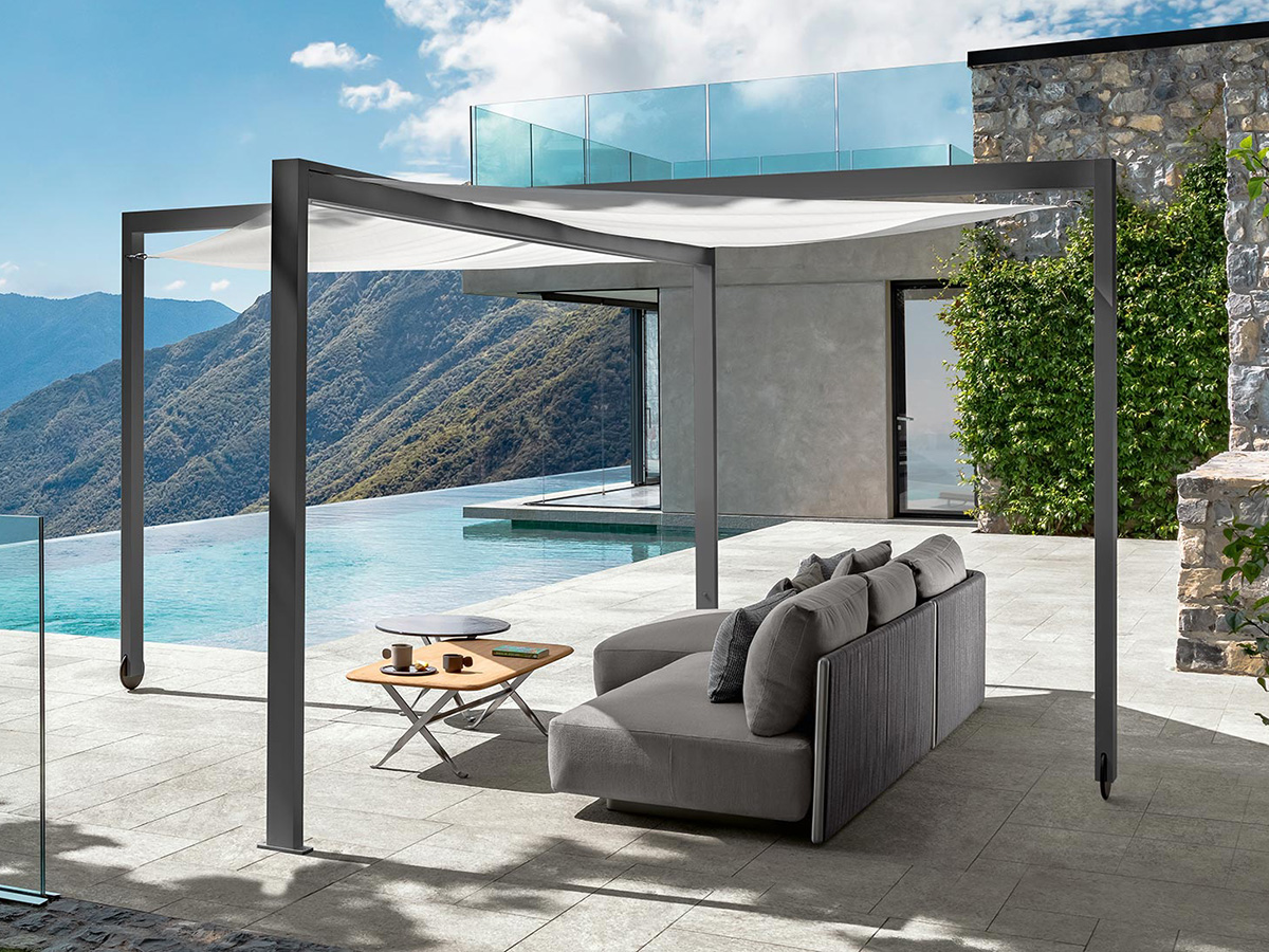 From the talent of Marco Acerbis comes MrX, an innovative idea for shading your living room with a space-saving element and a unique project in Talenti style. The nature of MrX seems to come from the classic design of pergolas used to cool where nature did not create natural resting places, but with an innovative and modern touch thanks to the use of aluminum in different colours. The result is new and lively, elegant but at the same time perfect for different environments, even regardless of the context. Ideal for outdoor spaces, when closed it takes up relatively little space.