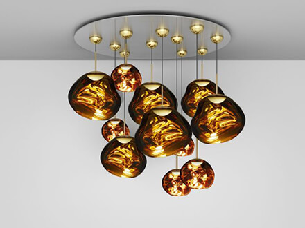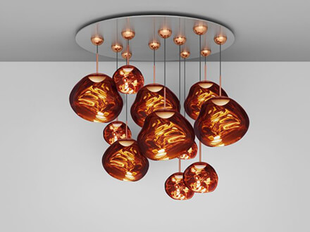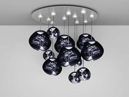 Tom Dixon can be considered a leading company in the production of light fixtures. Since its foundation, it has been able to create wonderful objects, designed to fill the rooms of the house with the particular creative power that only light can have. Among the many works by Tom Dixon we mention Melt, a beautifully distorted suspension lamp whose finishes are modern and current, perfect for marrying contemporary taste. Melt emits a slightly hallucinogenic light thanks to the blown glass ceiling shade. When turned on, Melt takes on warm and sensual shades, while when turned off it almost becomes a mirror.