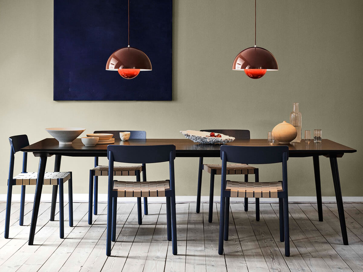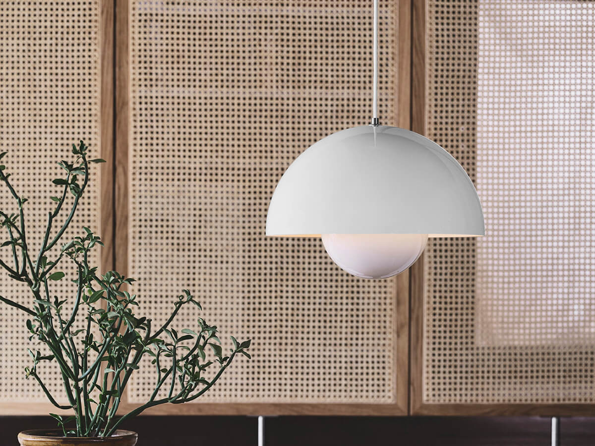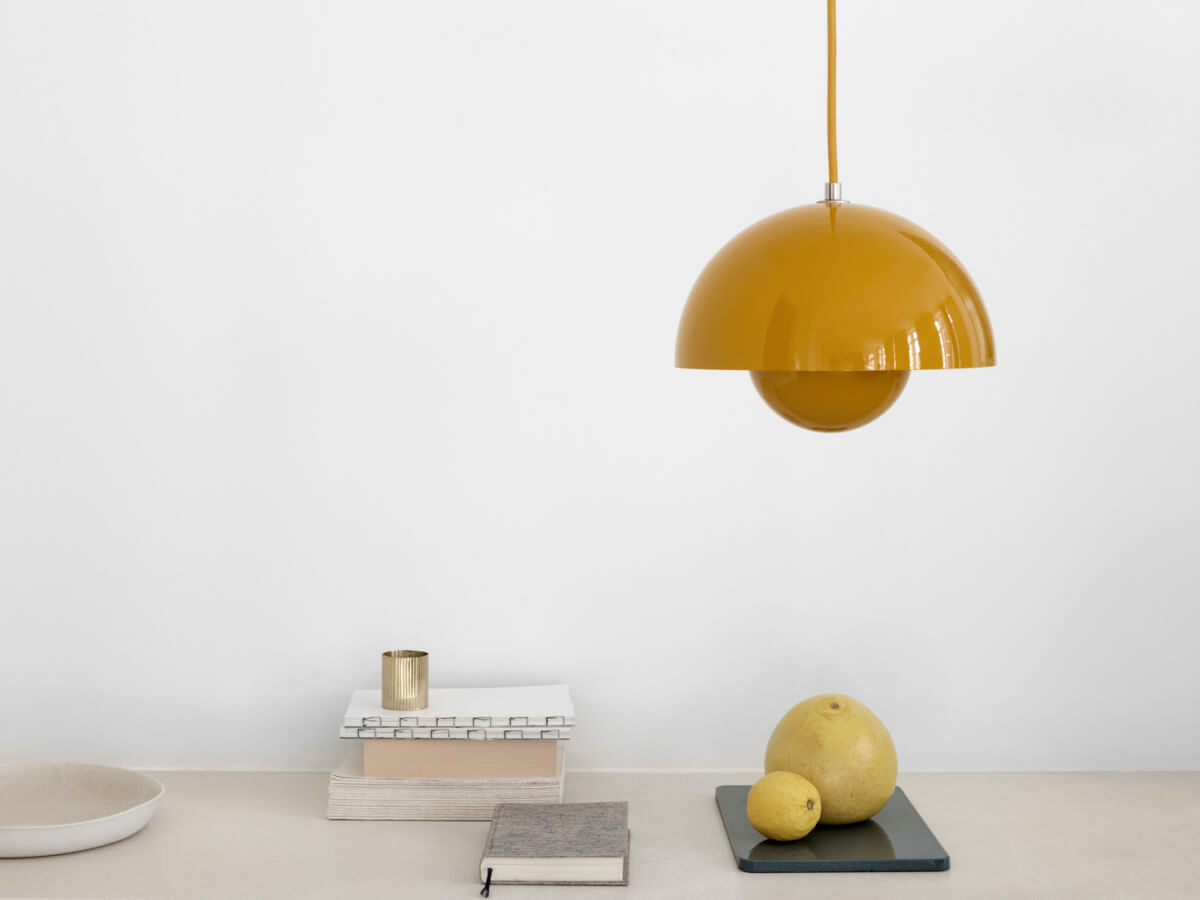 Verner Panton's Flowerpot pendant lamp is one of the most iconic and recognizable products of the & Tradition collection. Its design is inspired by the '60s, the period of "flower power", to which the lamp also owes its name: the ideals of peace and harmony that inspired the youth of the time are reflected in its balanced shapes played on juxtaposition of two hemispheres with different diameters. Colorful and minute, in its suspension version the Flowerpot lamp can be used both individually and with different units positioned side by side in larger and more scenographic compositions. Flowerpot is made of lacquered aluminum and stainless steel and is available in a wide range of different shades.