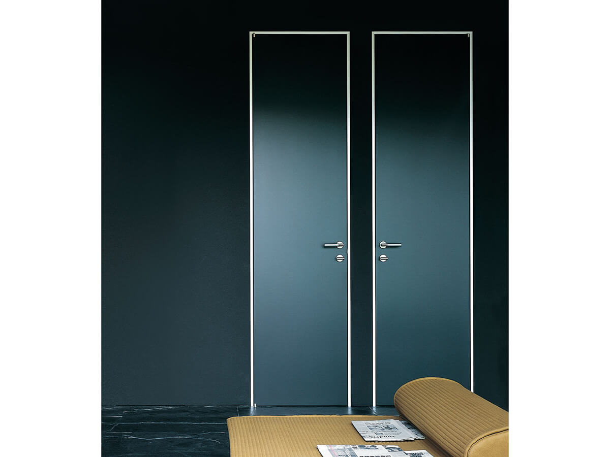 The Planus swing door by TREP + was designed by Antonio Citterio as an extension of his famous Pavilion sliding system, to which it can be fully integrated. It is in turn declined in countless variations, with a coordinated but also considerably divergent aesthetic: ranging from the cold and technical look of Planus Uno, with its large aluminum casing, to the more discreet Planus Due, with a thin slightly protruding telescopic jamb , up to the back to wall versions Planus Quattro and Planus Cinque, and much more. Planus thus delineates a very rich collection that can be widely customized also in terms of finishes, in which it is always possible to find the suitable variant for each project.