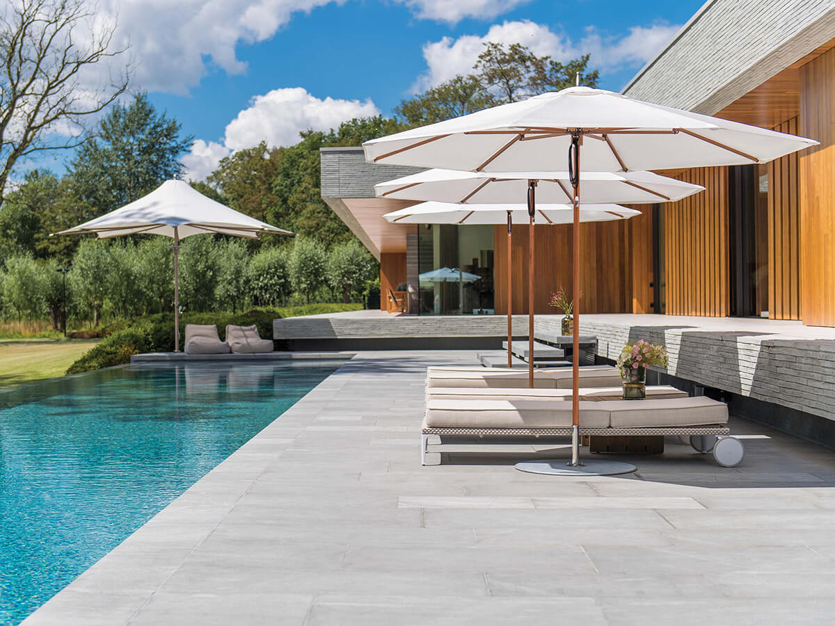 An extremely useful element for those who love to spend many hours outdoors in the company of a book, a cocktail, or simply napping. Ocean Master is an umbrella by Alberto Zecchini, characterized by a solid chromed stainless steel structure and a canvas parasol that closes easily. Ocean Master is available in different sizes to better adapt to gardens, terraces, balconies or poolside. There are also numerous colors available, designed to adapt to other Tuuci products.