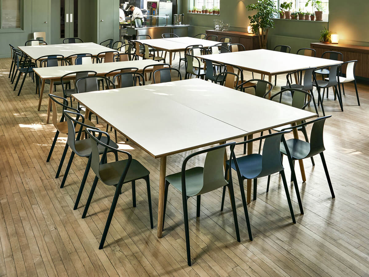 Belleville is the name of the French quarter where the studio of Ronan & Erwan Bourellec, creators of Vitra's iconic Belleville chair, resides. The peculiarity of this seat consists in the union of two distinct parts, frame and shell, both characterized by soft and sinuous lines designed to satisfy the body. The first, made of molded polyamide, guarantees strength and flexibility, while the second is in curved plywood. The beauty of this model has allowed the birth of numerous variants over the years, including the Belleville Wood chair and the Belleville Armchair Wood and Fabric, denoted by the presence of wider and more visible arms to lean on. Nevertheless, we mention the outdoor version of this piece of furniture, more resistant to the elements thanks to the exclusive use of plastics for the outdoor.