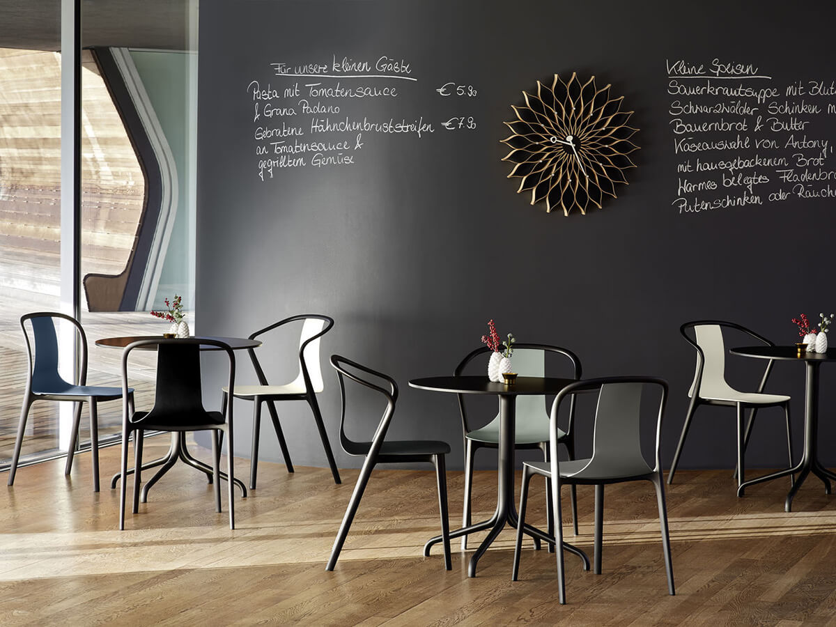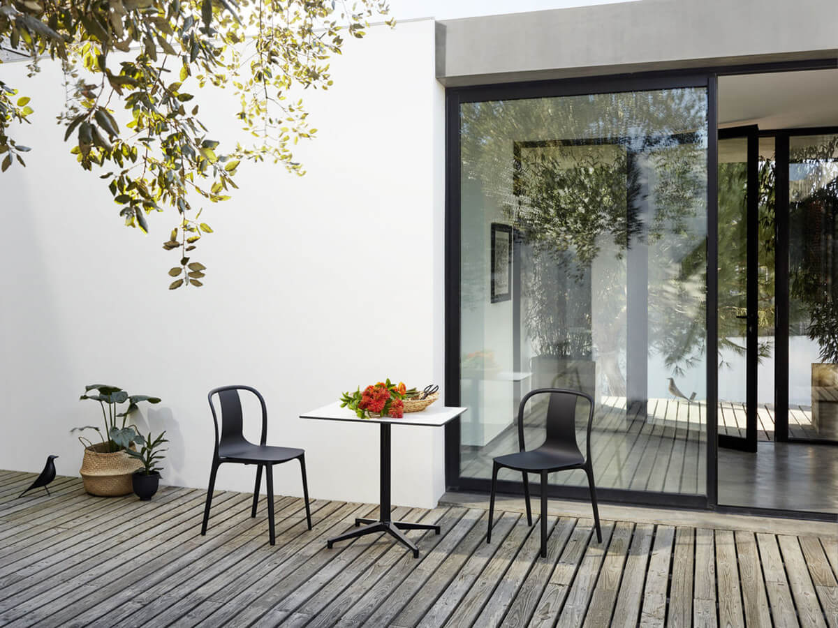 Belleville is the name of the French quarter where the studio of Ronan & Erwan Bourellec, creators of Vitra's iconic Belleville chair, resides. The peculiarity of this seat consists in the union of two distinct parts, frame and shell, both characterized by soft and sinuous lines designed to satisfy the body. The first, made of molded polyamide, guarantees strength and flexibility, while the second is in curved plywood. The beauty of this model has allowed the birth of numerous variants over the years, including the Belleville Wood chair and the Belleville Armchair Wood and Fabric, denoted by the presence of wider and more visible arms to lean on. Nevertheless, we mention the outdoor version of this piece of furniture, more resistant to the elements thanks to the exclusive use of plastics for the outdoor.