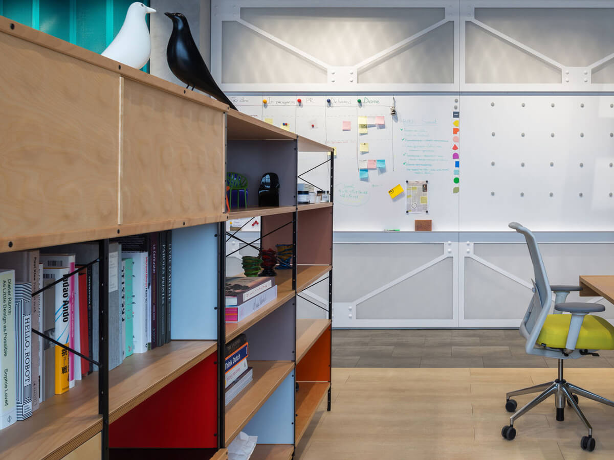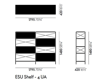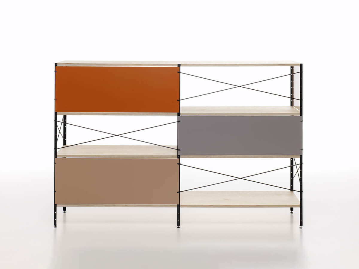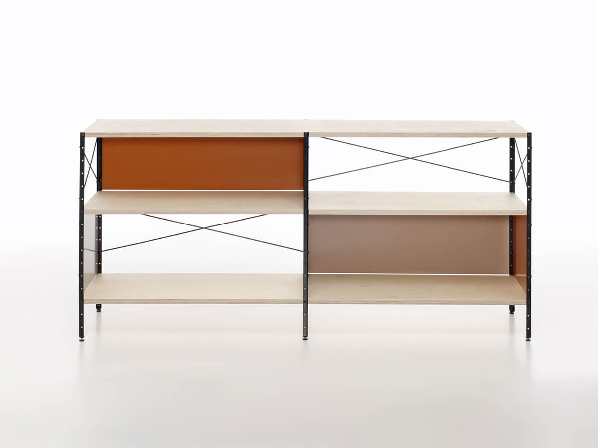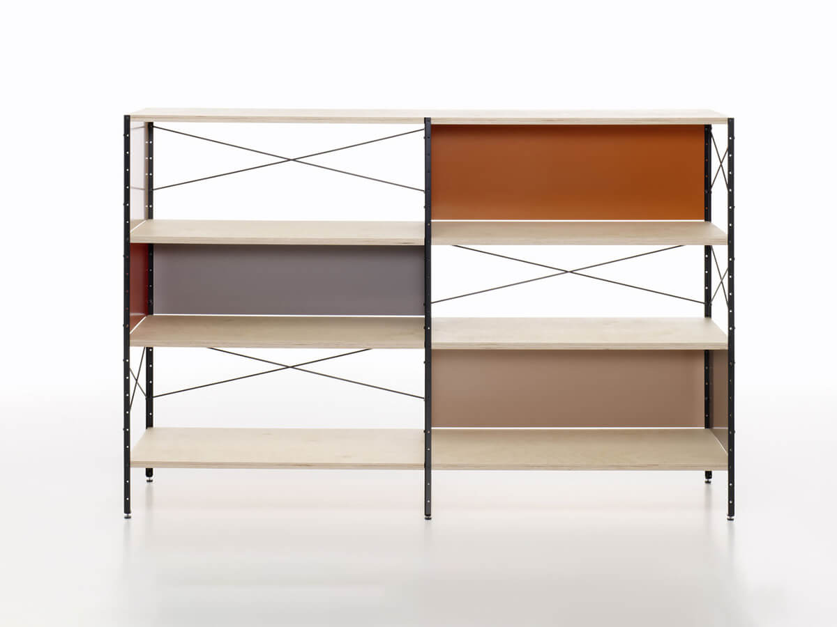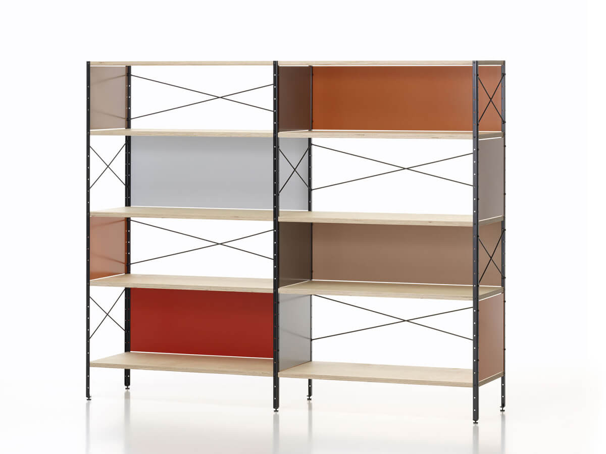 The Eames Storage Unit is part of an innovative system of independent multi-function shelves and desks created by Charles & Ray Eames for offices and home offices. The powder coated metal frame supports a series of maple plywood shelves with birch surface veneer and clear lacquer finish. The dividing panels for dividing into compartments are in powder-coated aluminium. Overall, this bookcase promises to be a new design element, which despite its relative age (it was designed in 1949) does not lose its luster and expressive beauty. Ideal for offices, however, it can adapt to more heterogeneous environments according to taste.