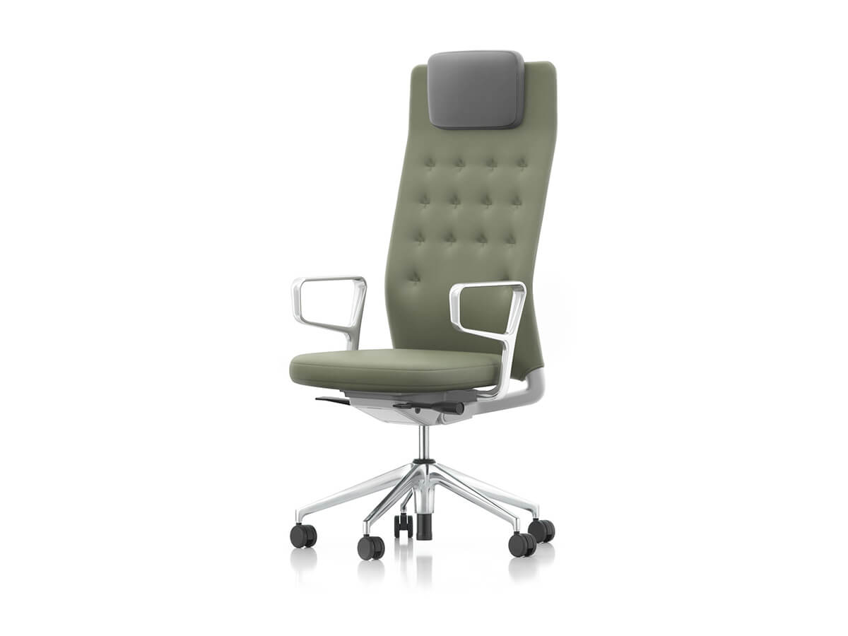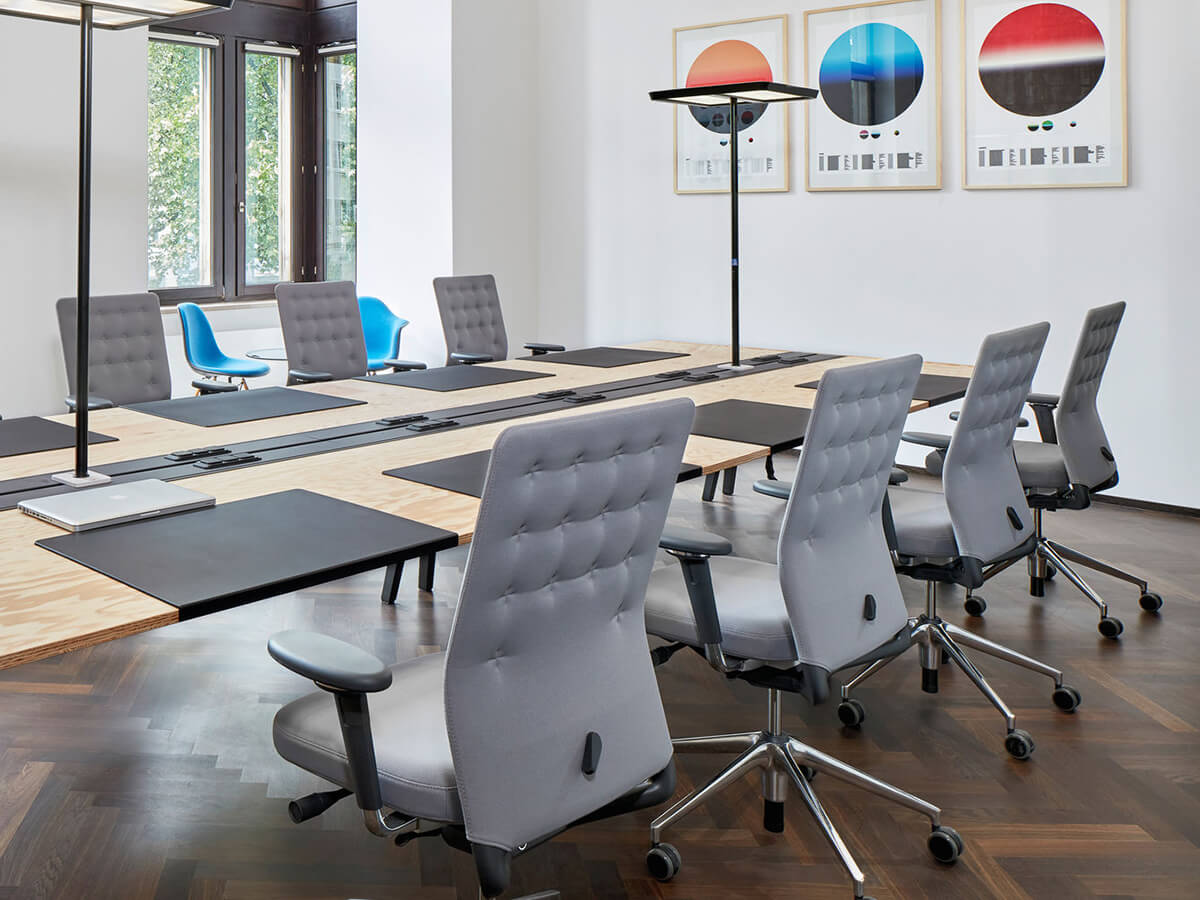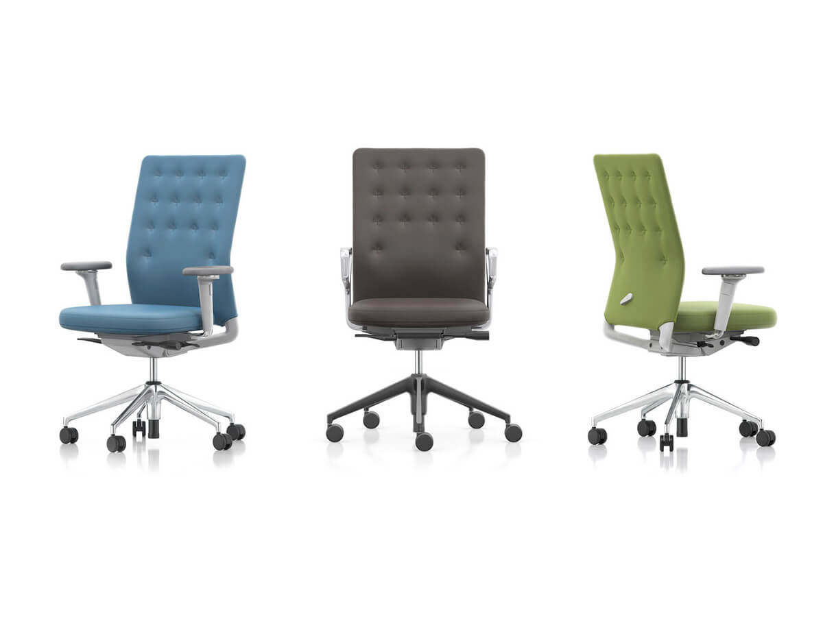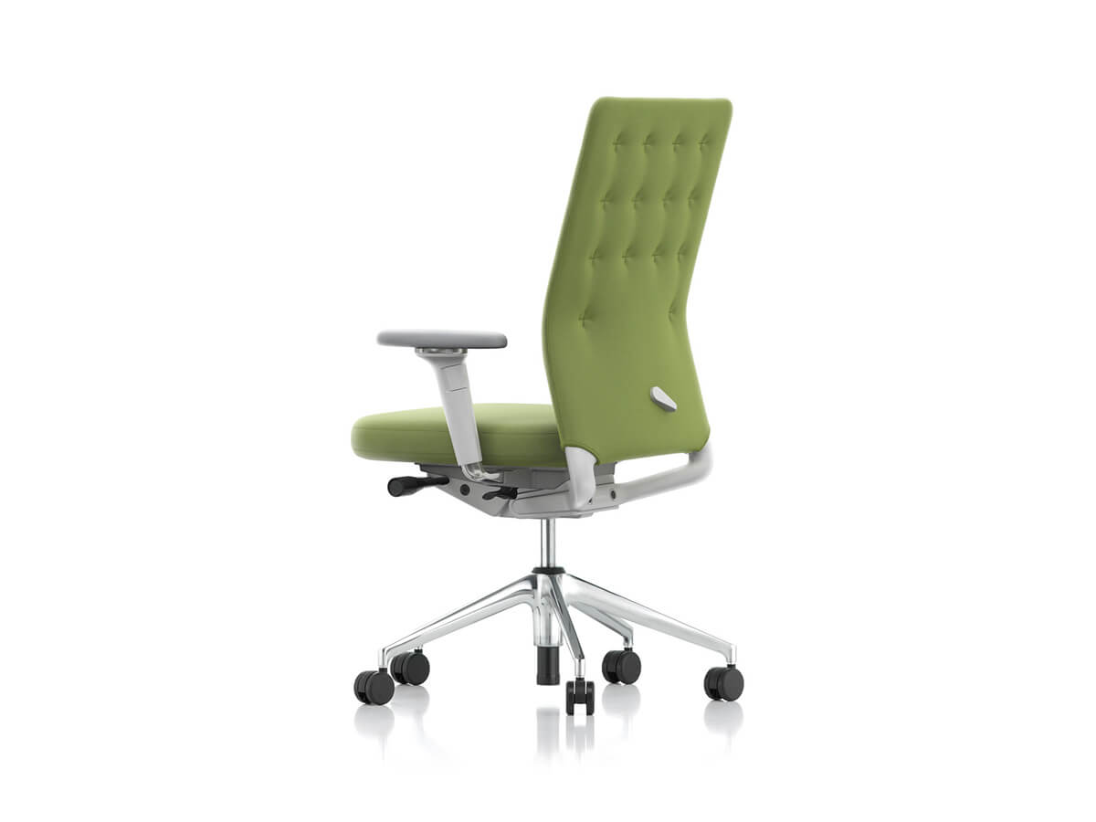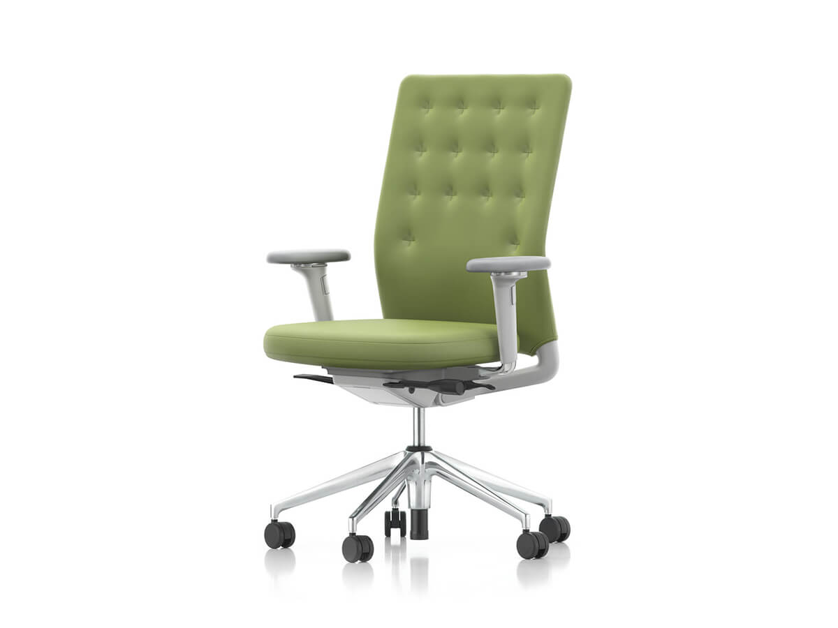 Within the ID Chair Concept, Vitra offers a wide range of extremely professional office chairs, capable of satisfying not only taste needs but also extreme comfort. ID Trim conveys a sense of classic elegance and hard-to-replicate craftsmanship, where a strong swivel base engages a structure with integrated lumbar support with FlowMotion mechanism. The backrest has a polyamide frame, perfect for adapting to the natural curve of the back thanks to the height-adjustable lumbar support. The available upholstery, leather and fabric, offer maximum customization to each armchair. The armrests in 2D or 3D have variable height and width with 360 ° swivel movement.